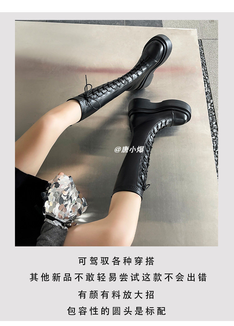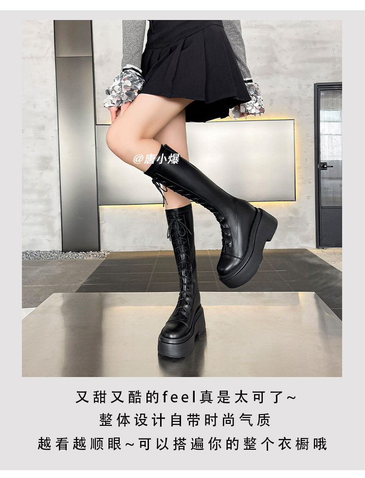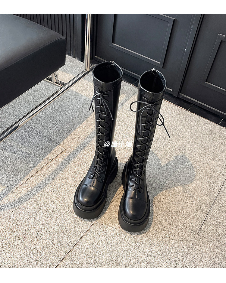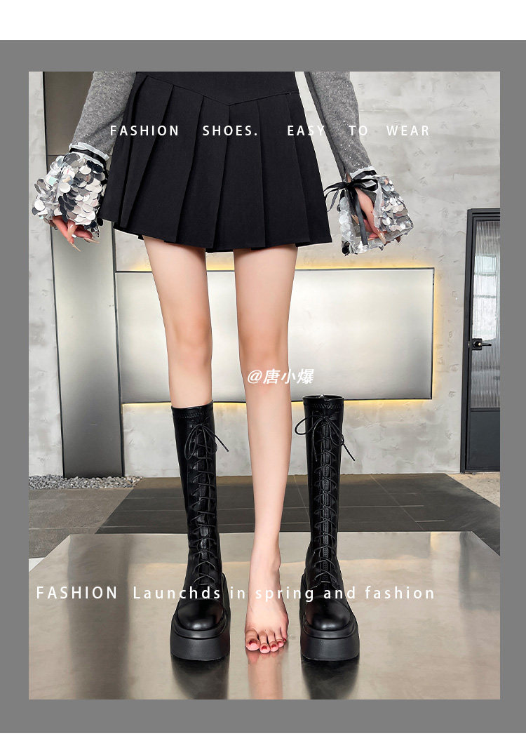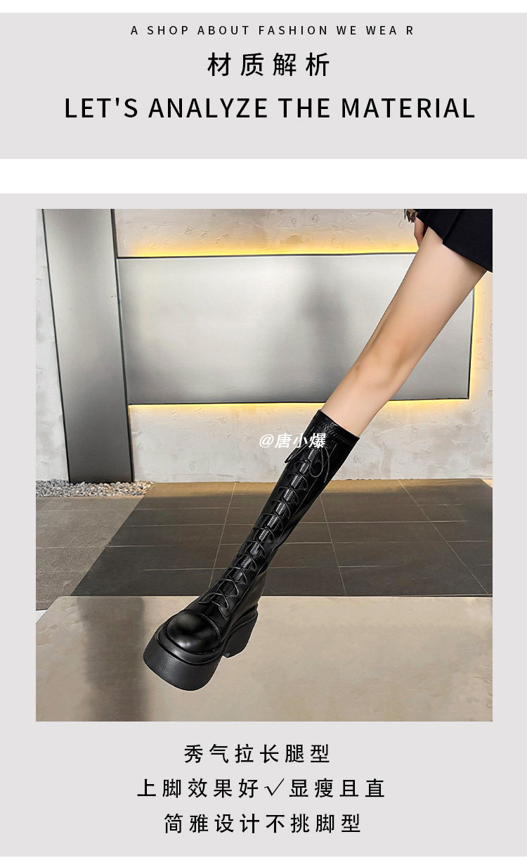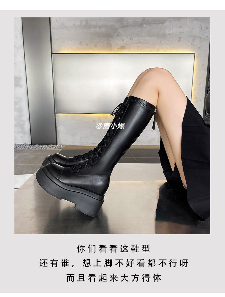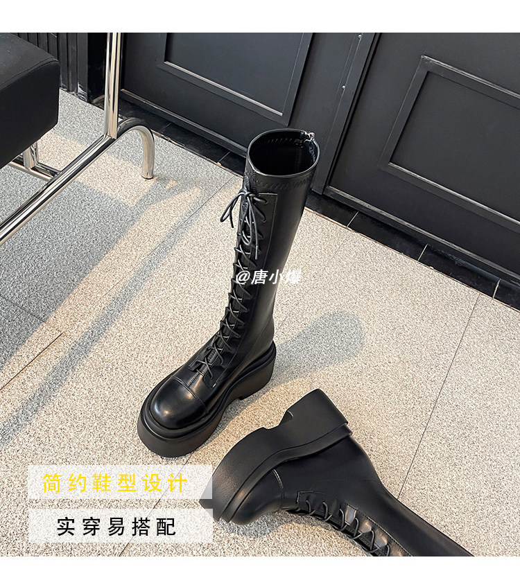 松糕厚底12cm長筒靴女小個子2025爆款不過膝白色瘦瘦靴長靴內增高