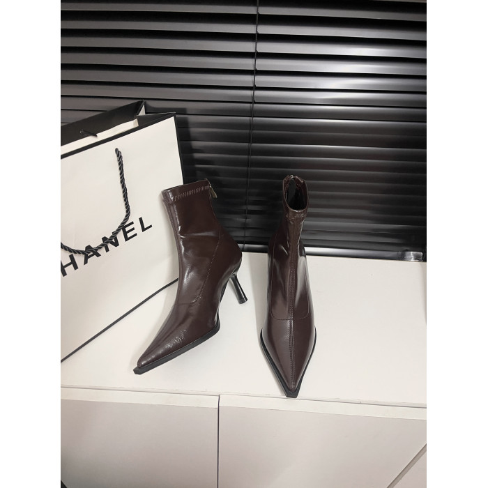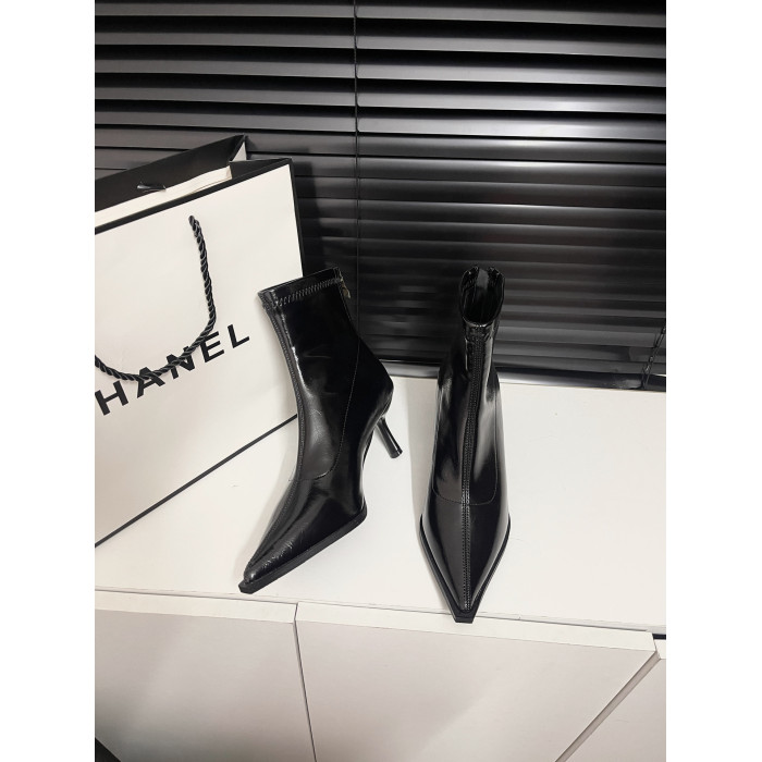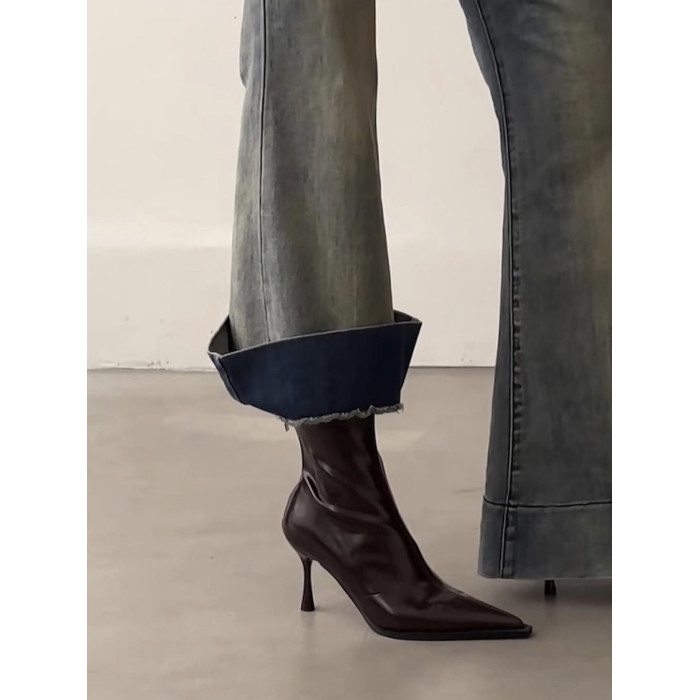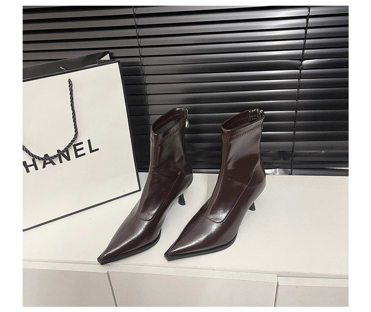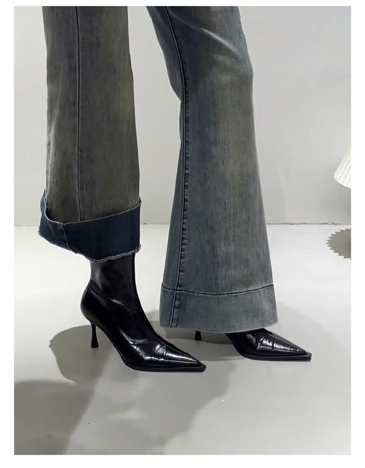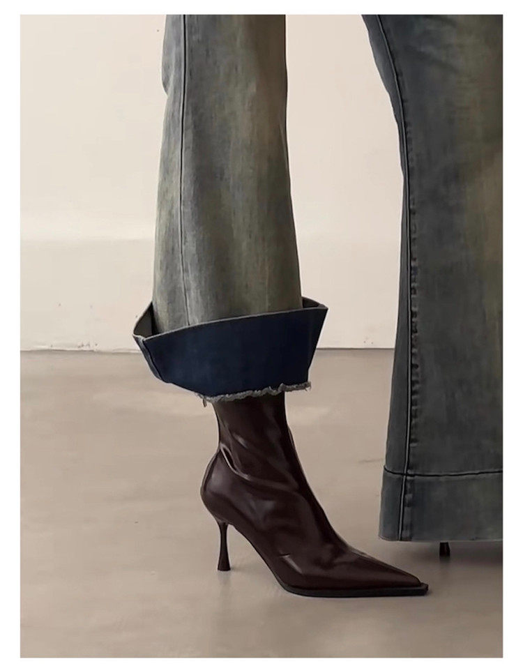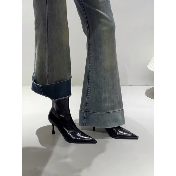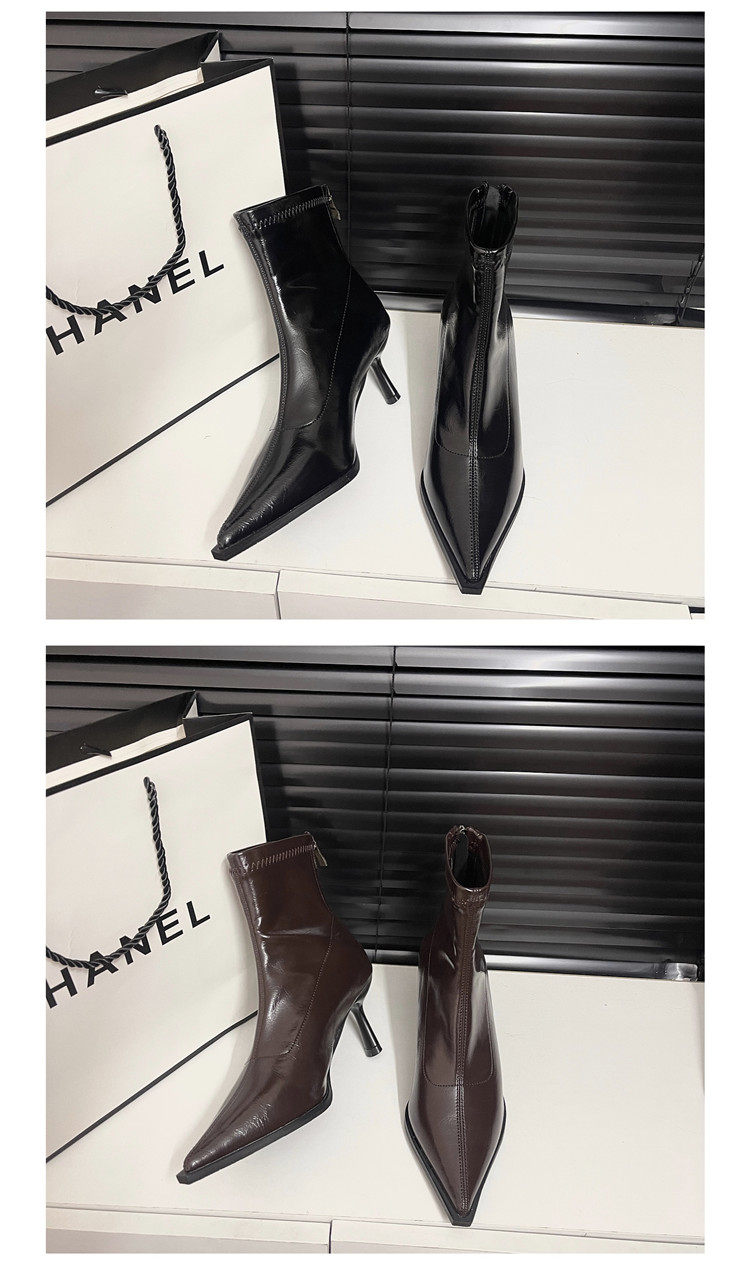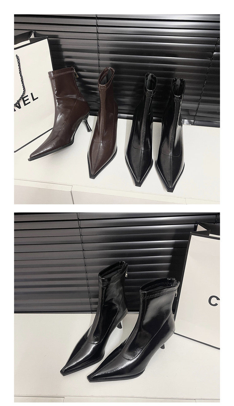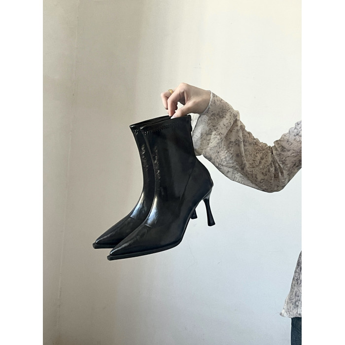 黑色尖頭高跟短靴女2025秋冬新款法式細跟彈力瘦瘦靴氣質小踝靴子