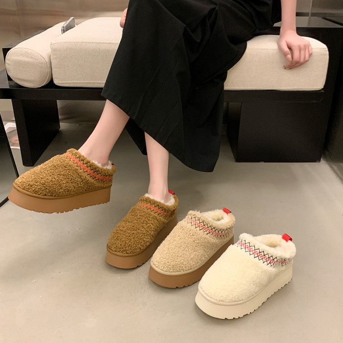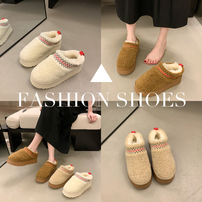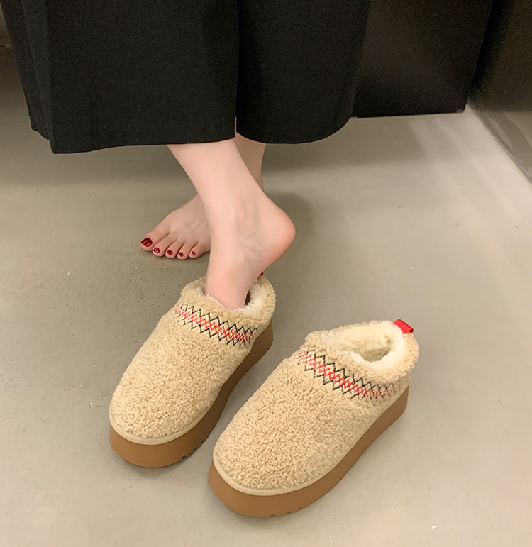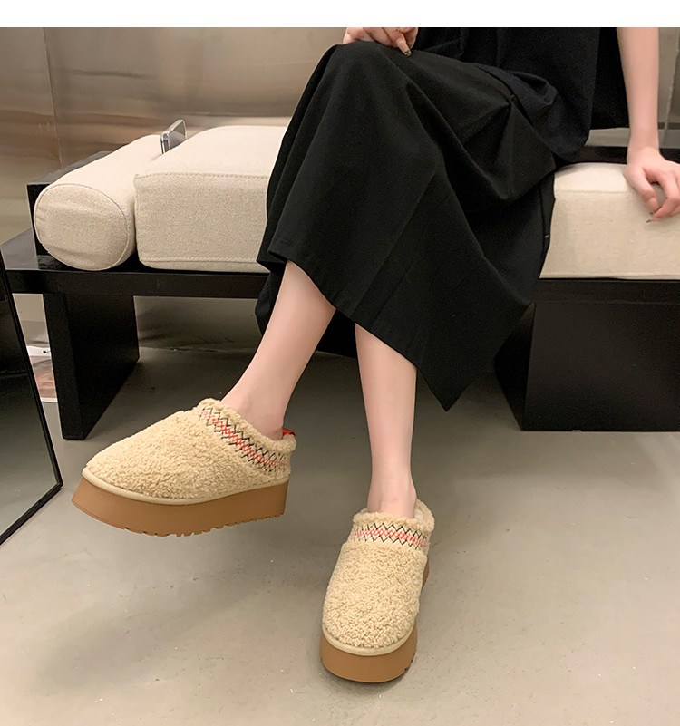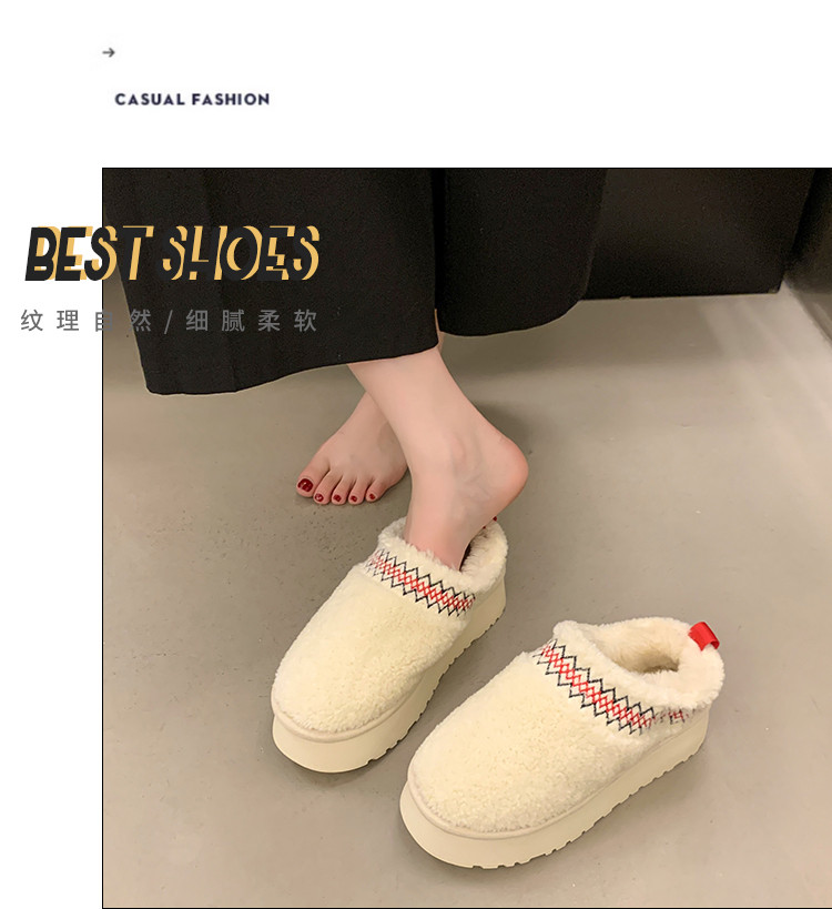 松糕厚底包頭毛毛拖鞋女外穿2025新款秋冬加絨保暖居家室內棉拖鞋
