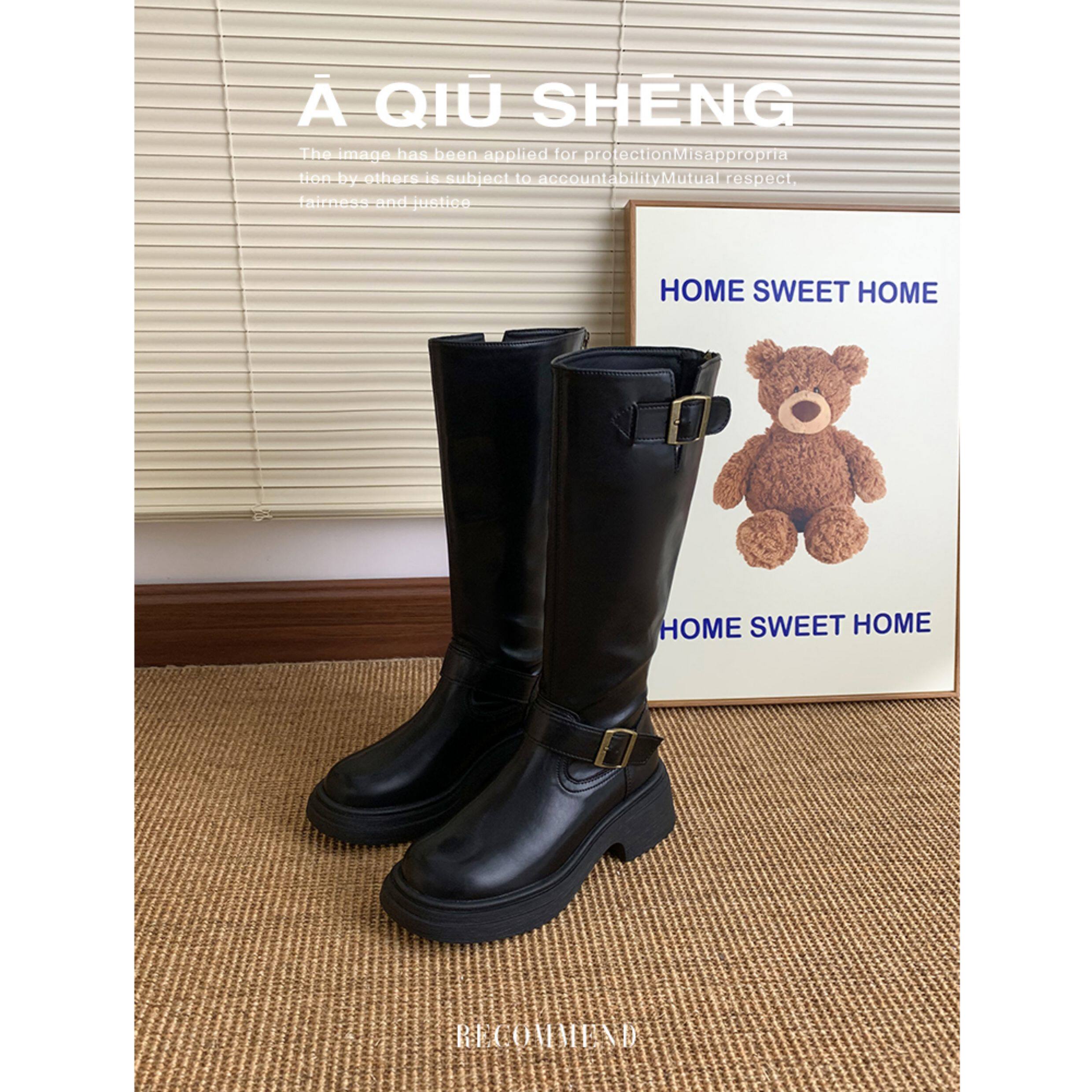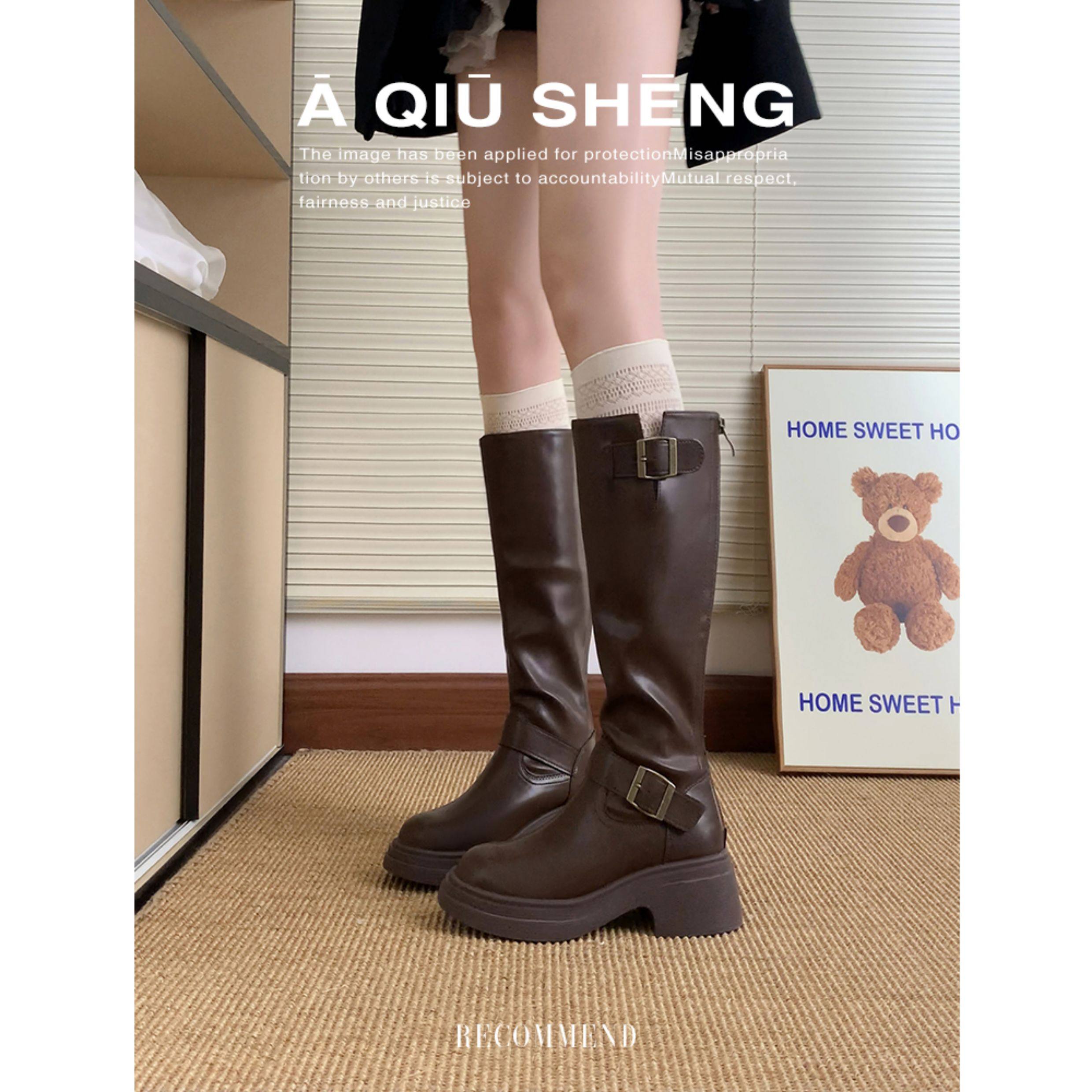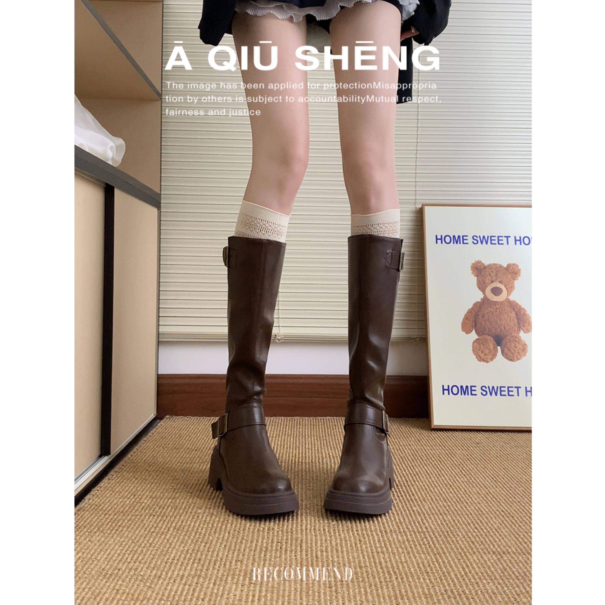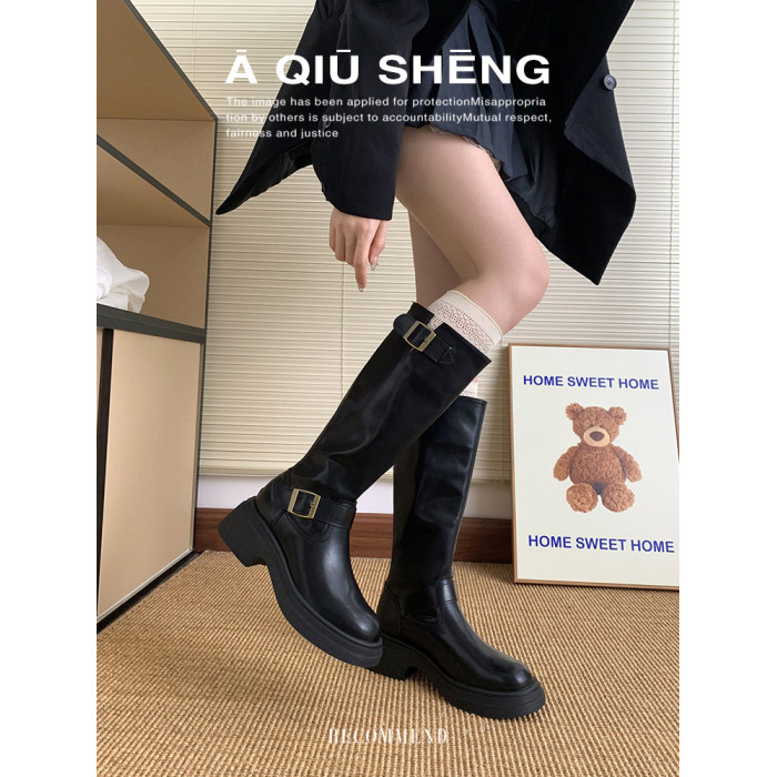 羊皮版~棕色長筒靴女2025年秋冬新款英倫風不過膝長靴厚底騎士靴