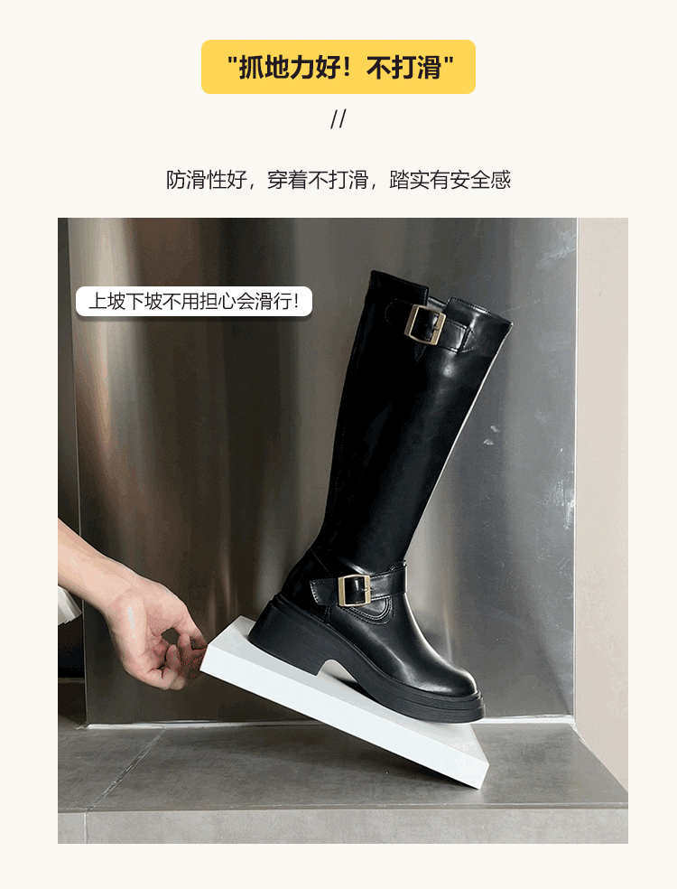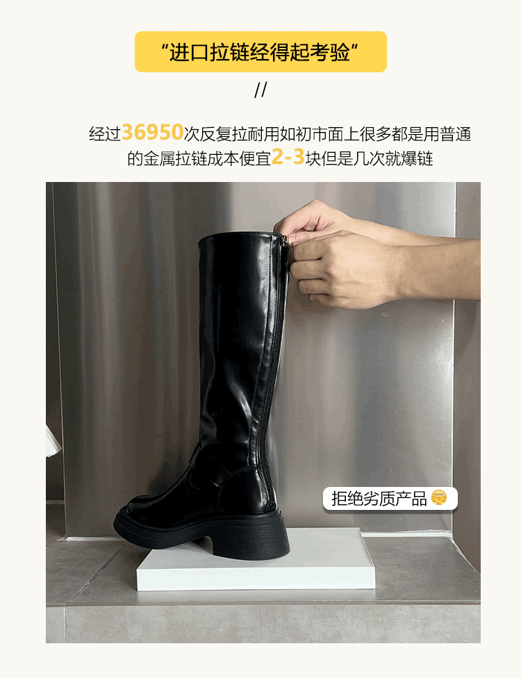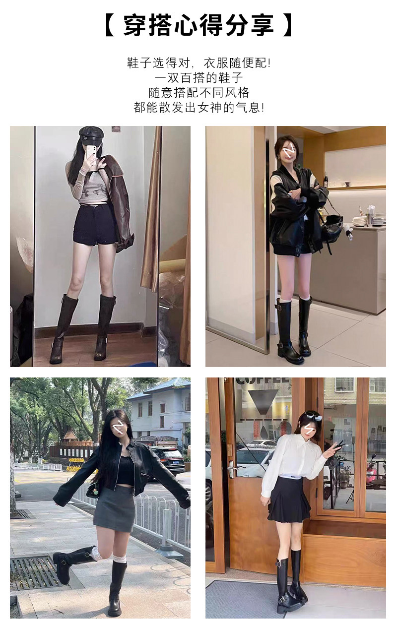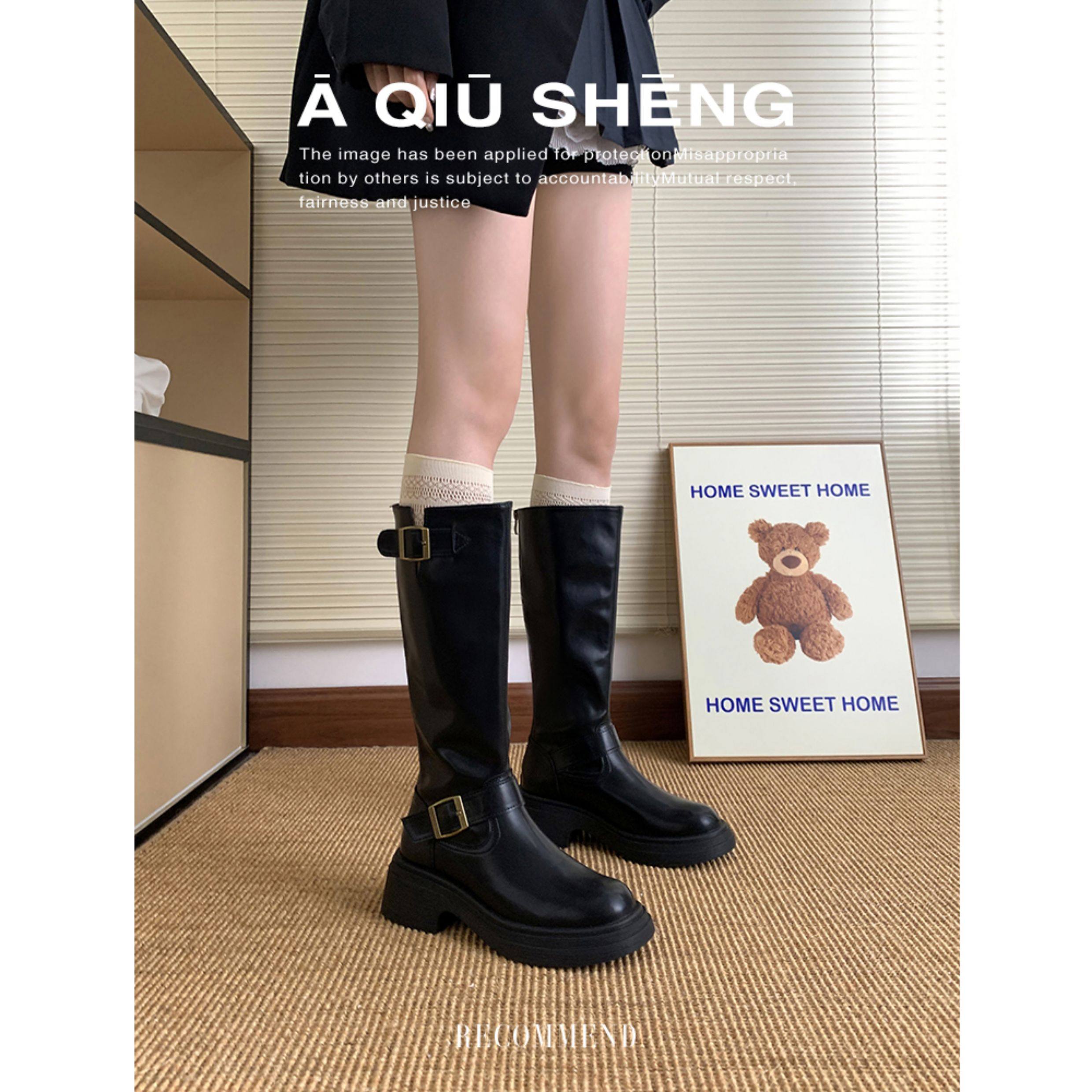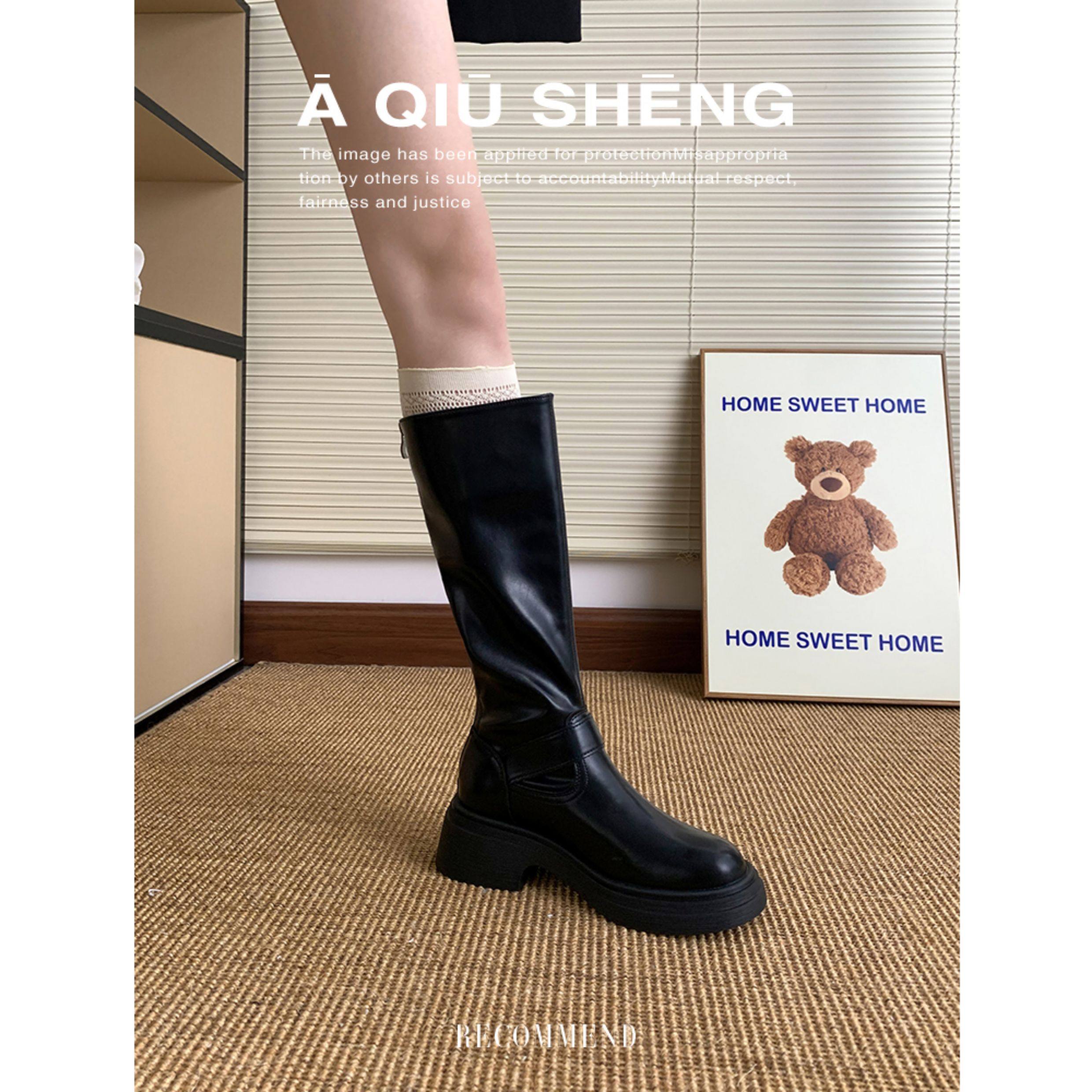 羊皮版~棕色長筒靴女2025年秋冬新款英倫風不過膝長靴厚底騎士靴