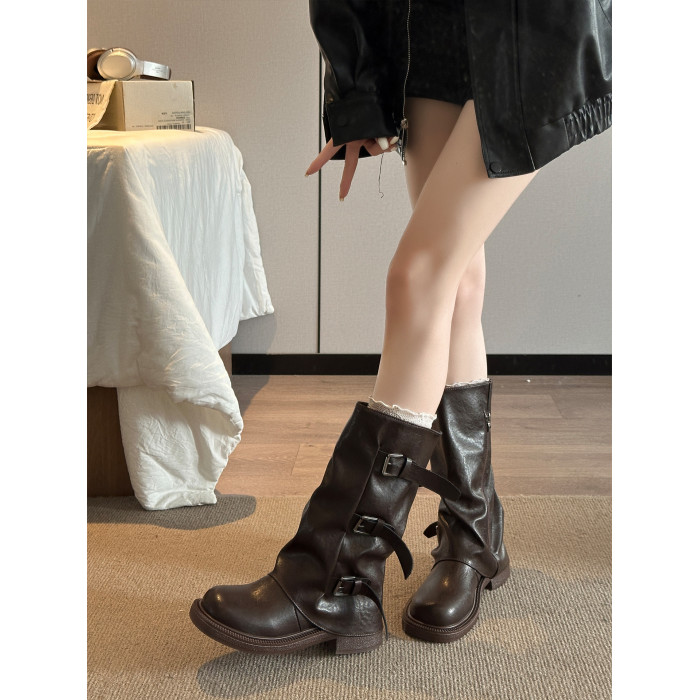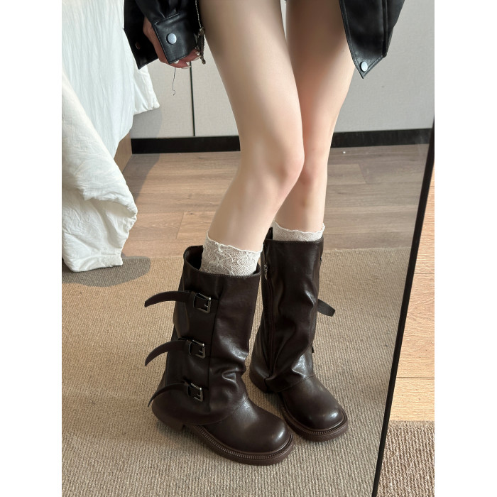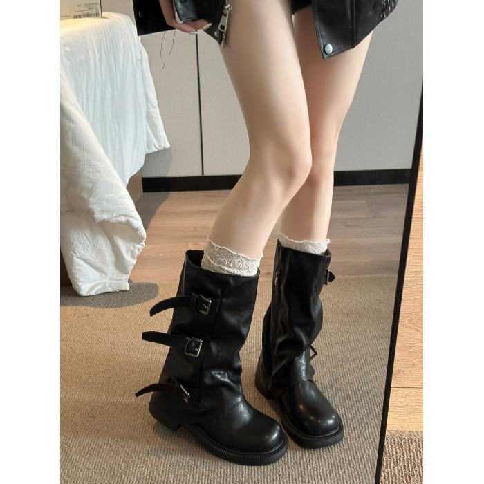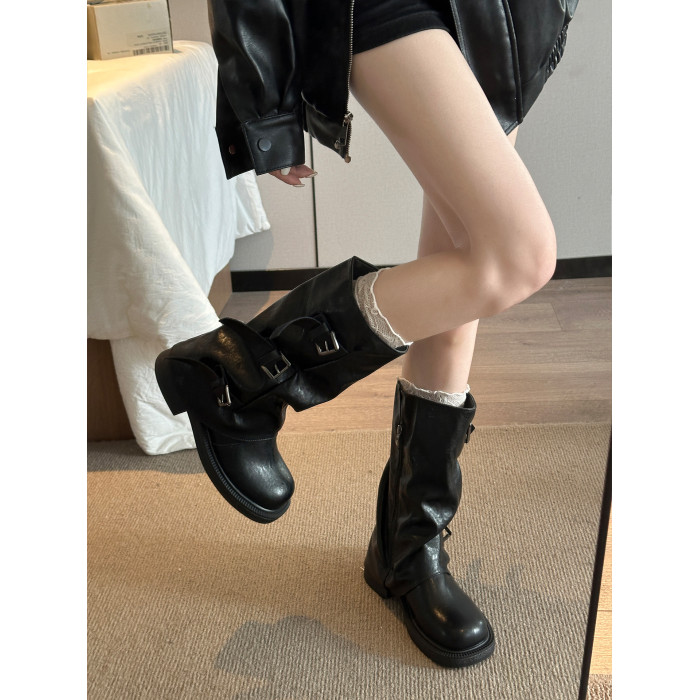 復古褲琯靴長筒靴女2025冬季新款高筒堆堆靴辣妹英倫風中筒騎士靴