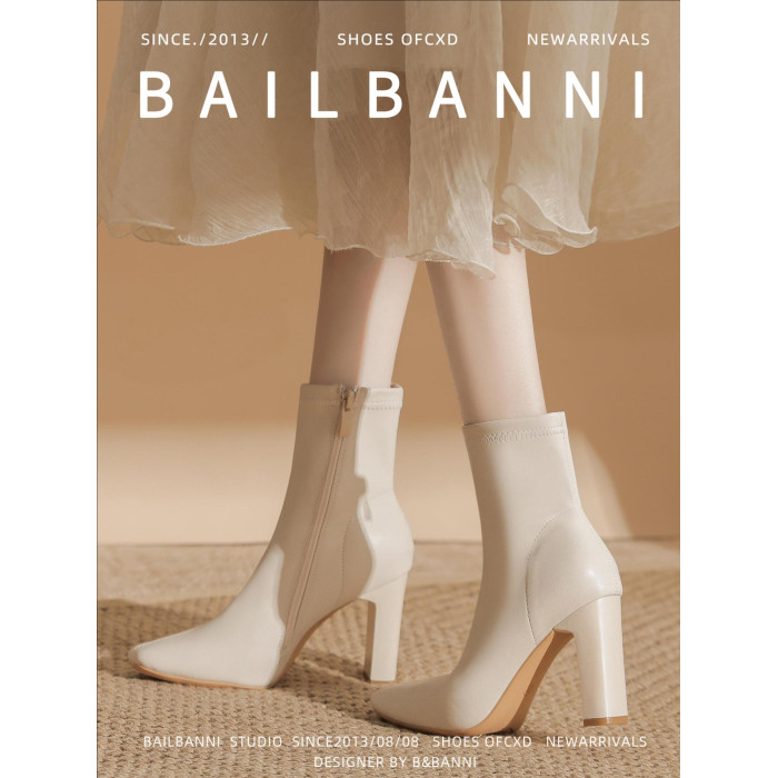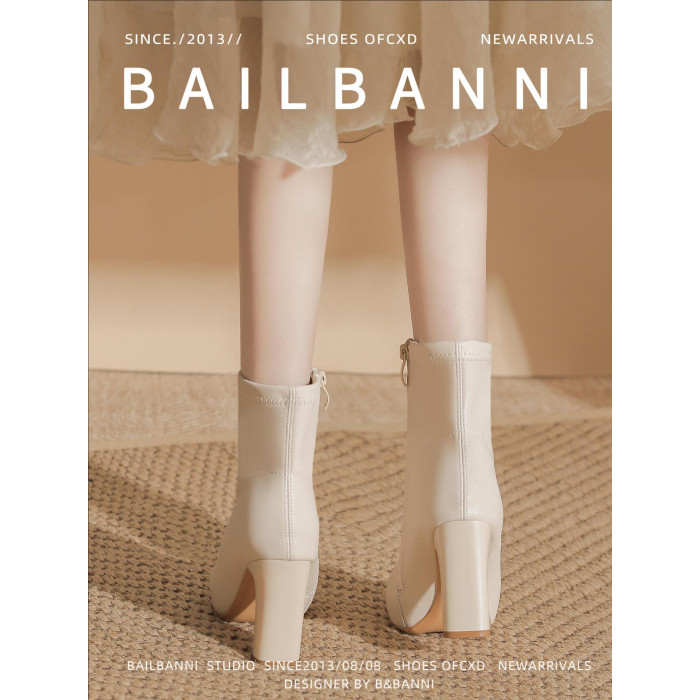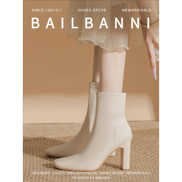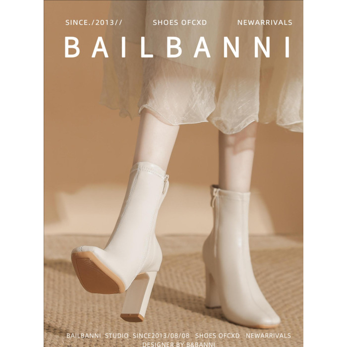 超軟真皮法式高跟小短靴女2025年秋冬方頭皮靴瘦瘦靴小個子單靴子