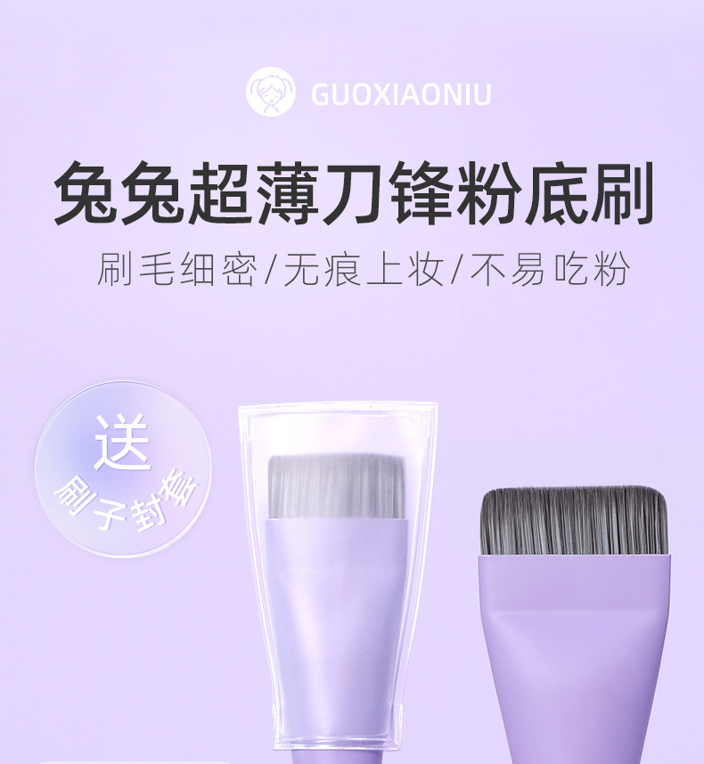 郭小妞兔兔平頭粉底刷刷扁平頭超薄一字型無痕化妝刷化妝師專用