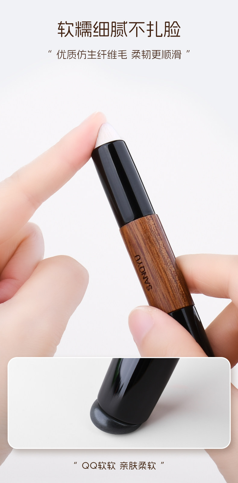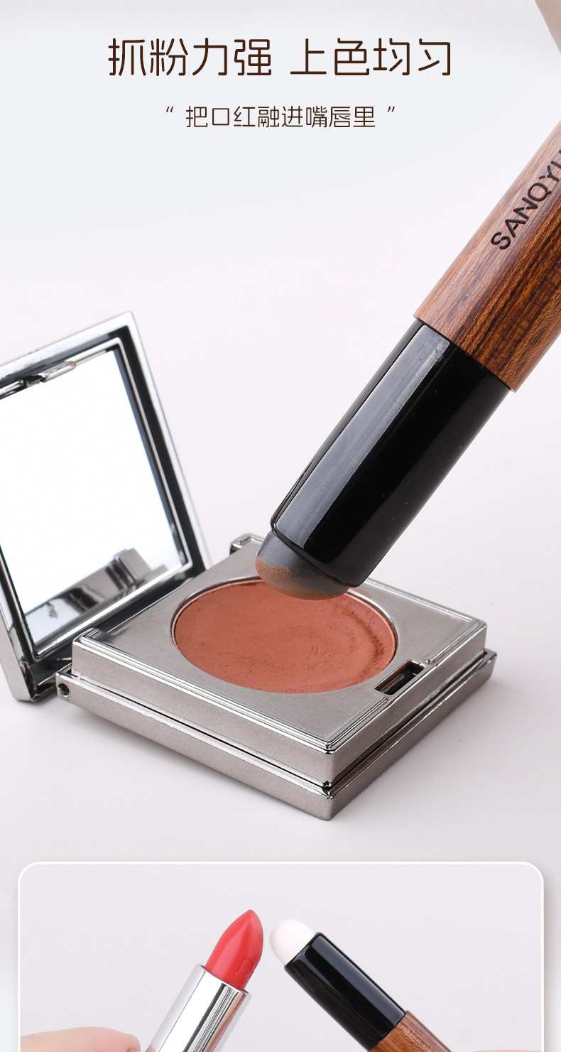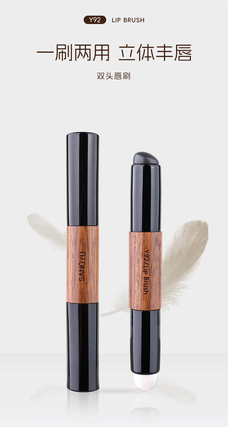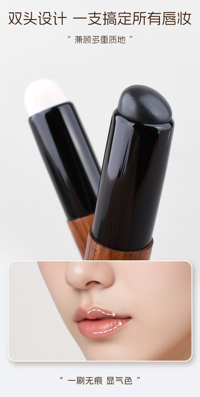 三千羽Y92雙頭脣刷口紅刷暈染自然柔軟矽膠帶蓋迷你可攜式化妝刷子