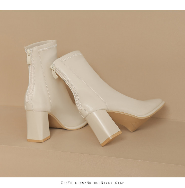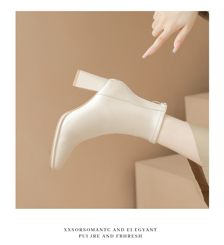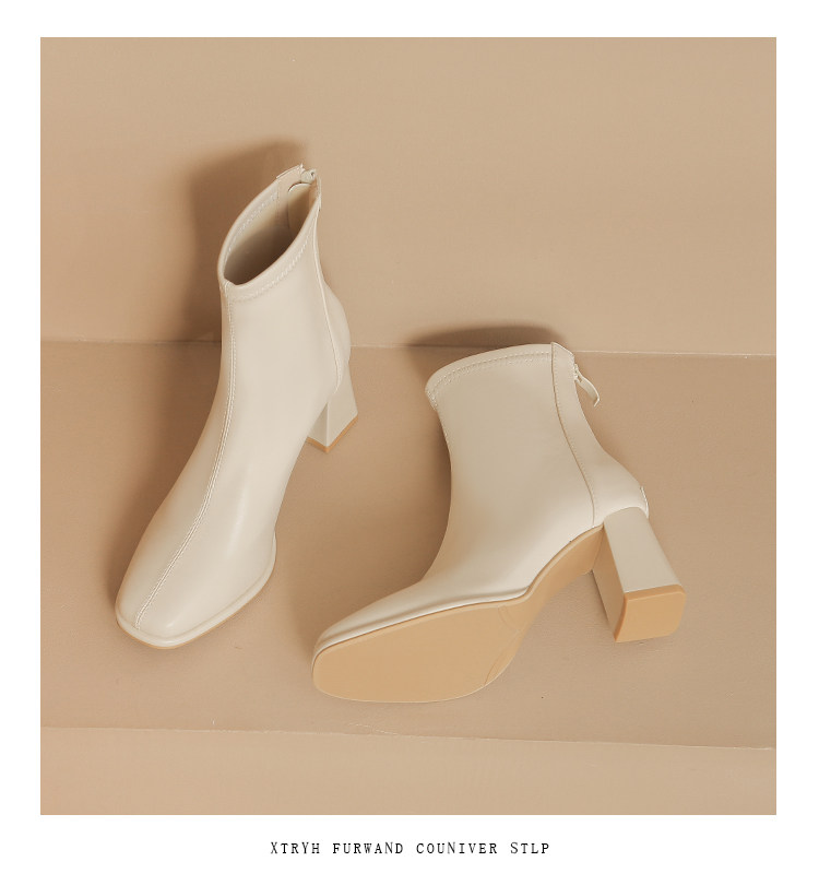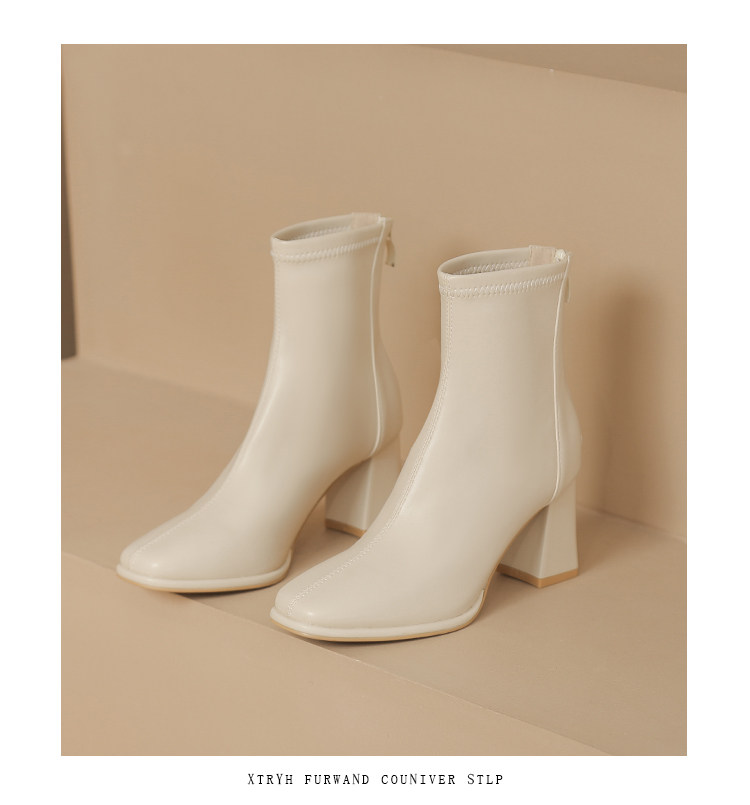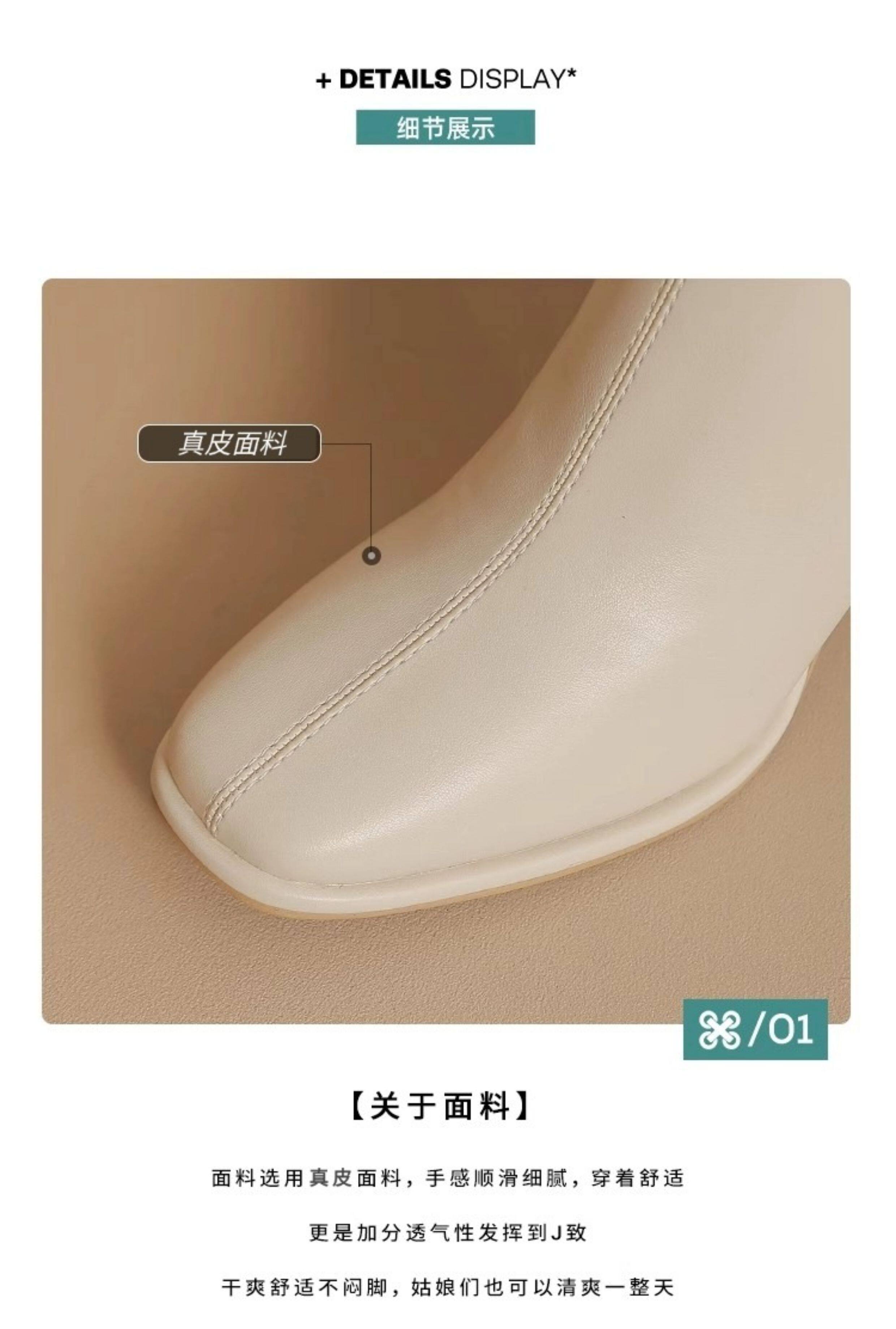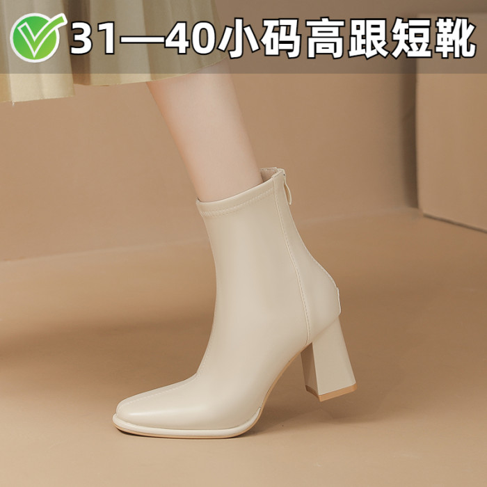 秋冬爆款真皮白色法式高跟短靴女粗跟馬丁靴瘦瘦靴子小碼鞋313233