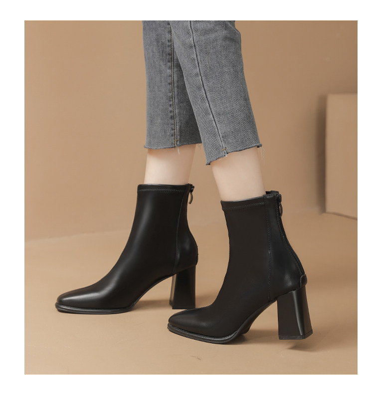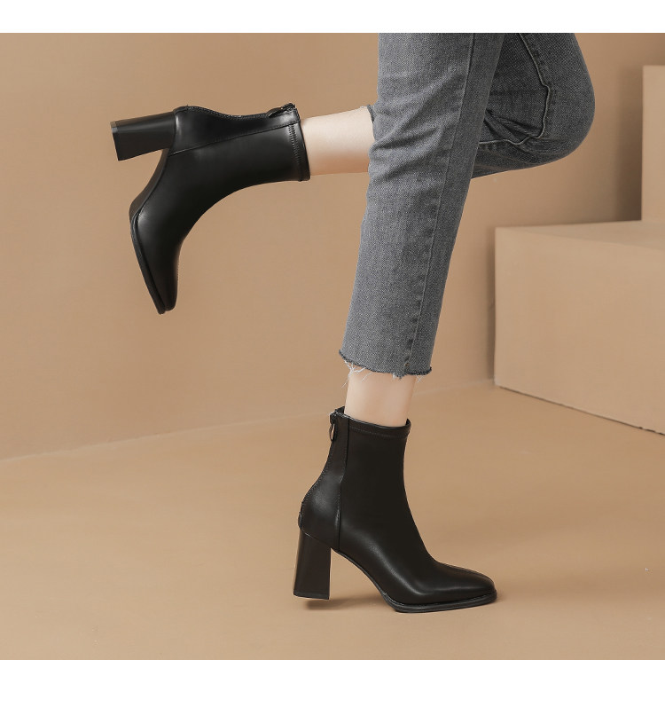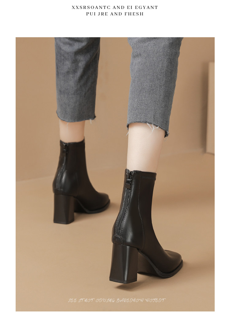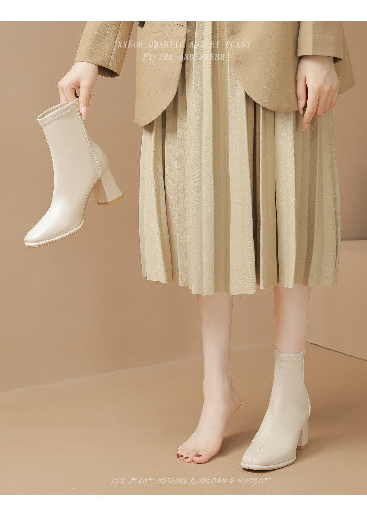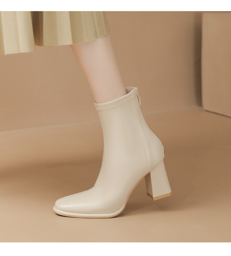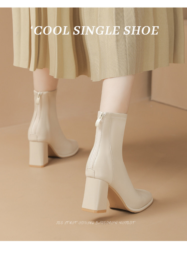 秋冬爆款真皮白色法式高跟短靴女粗跟馬丁靴瘦瘦靴子小碼鞋313233