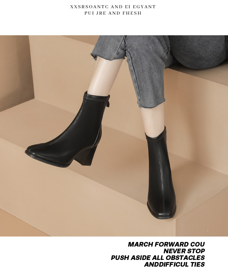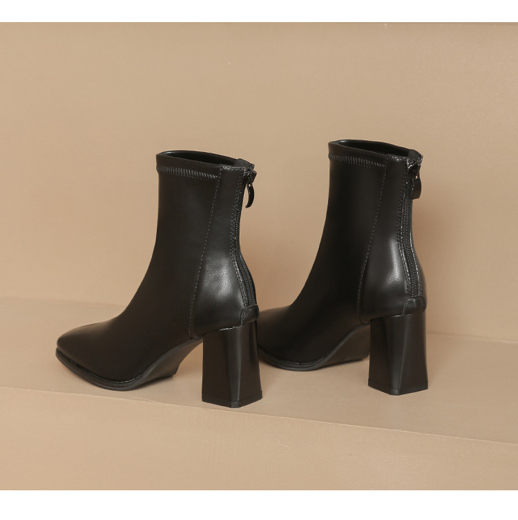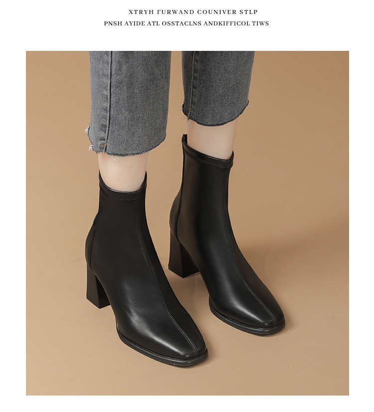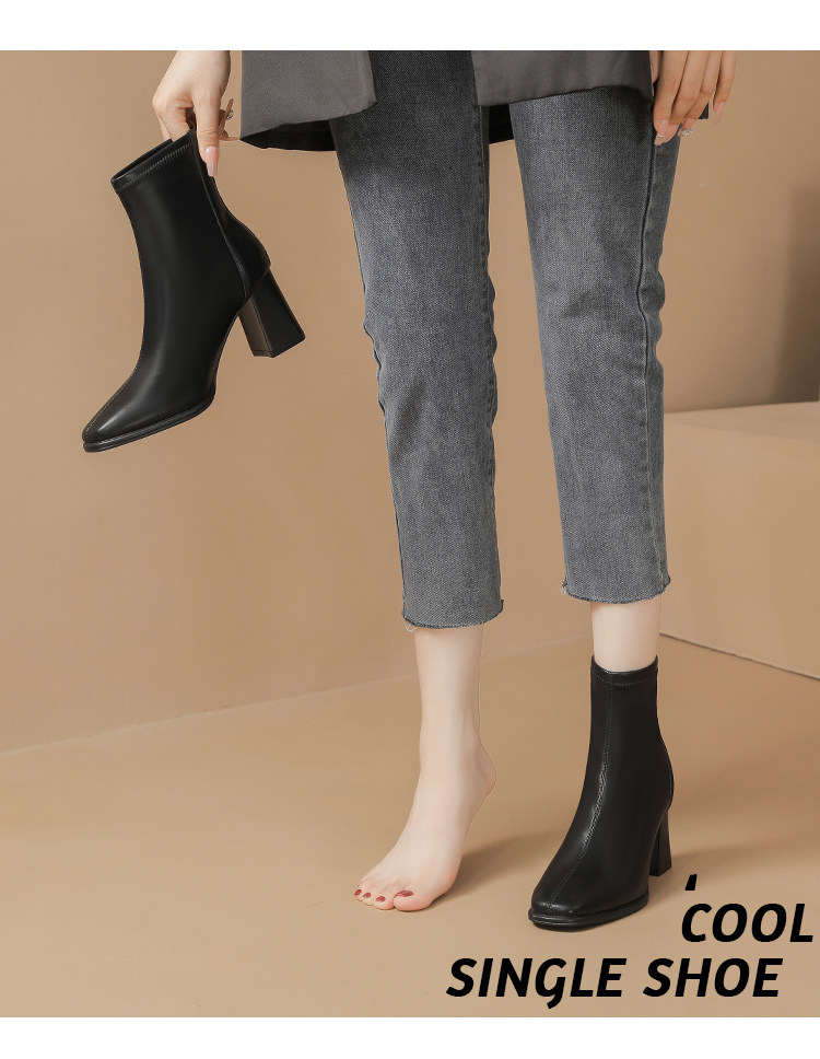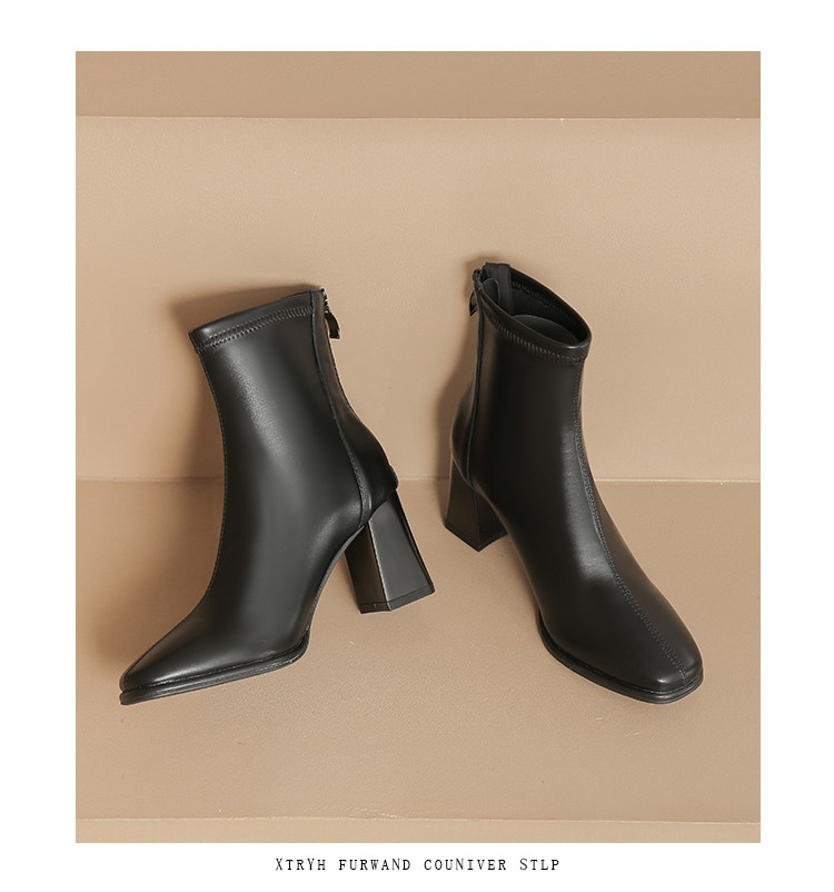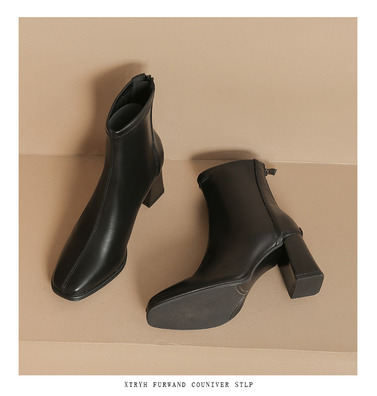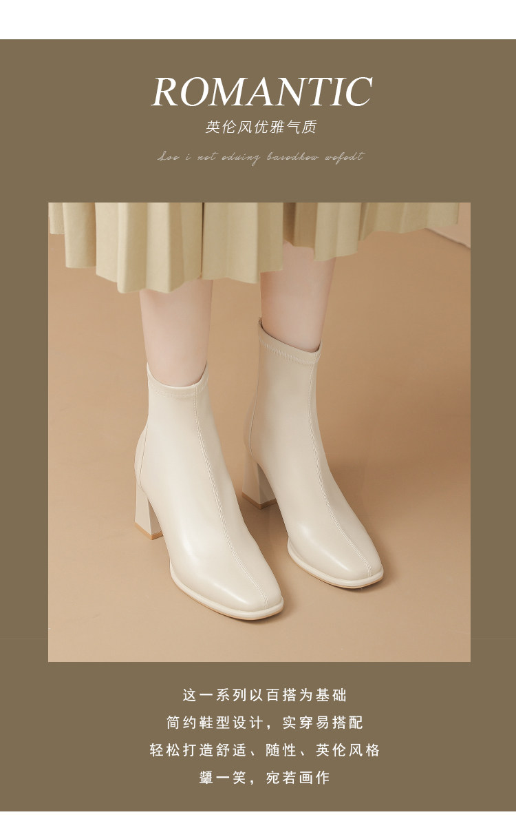 秋冬爆款真皮白色法式高跟短靴女粗跟馬丁靴瘦瘦靴子小碼鞋313233