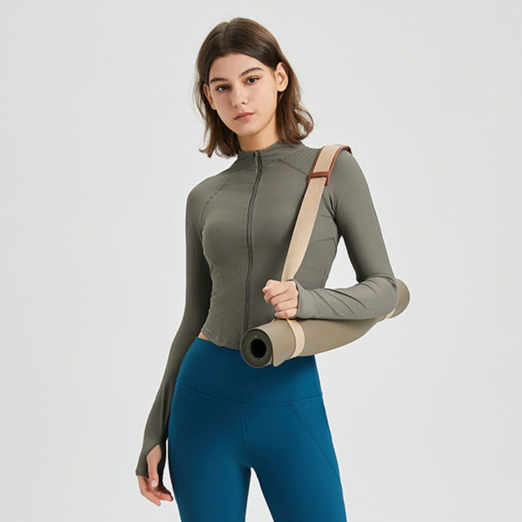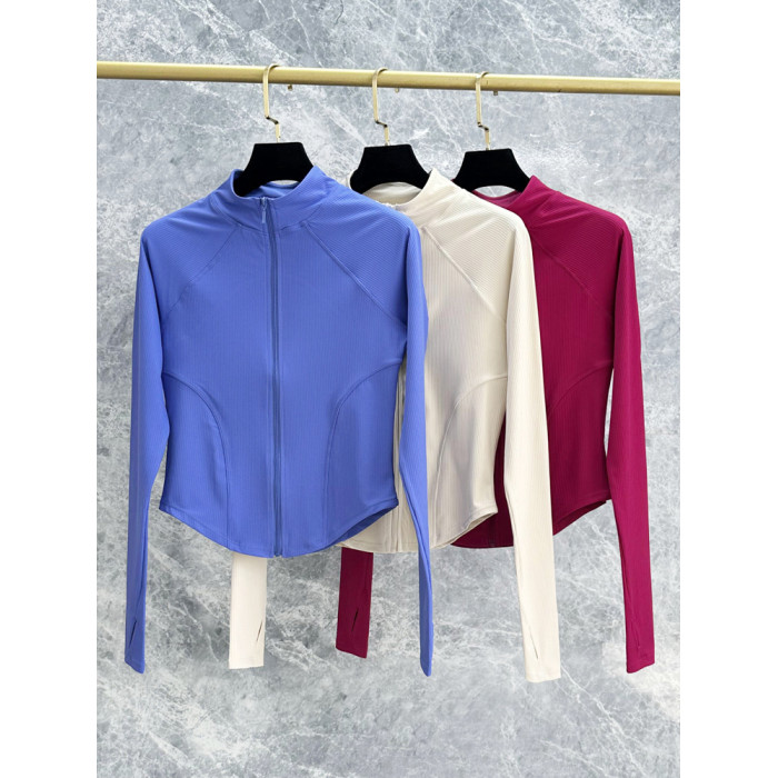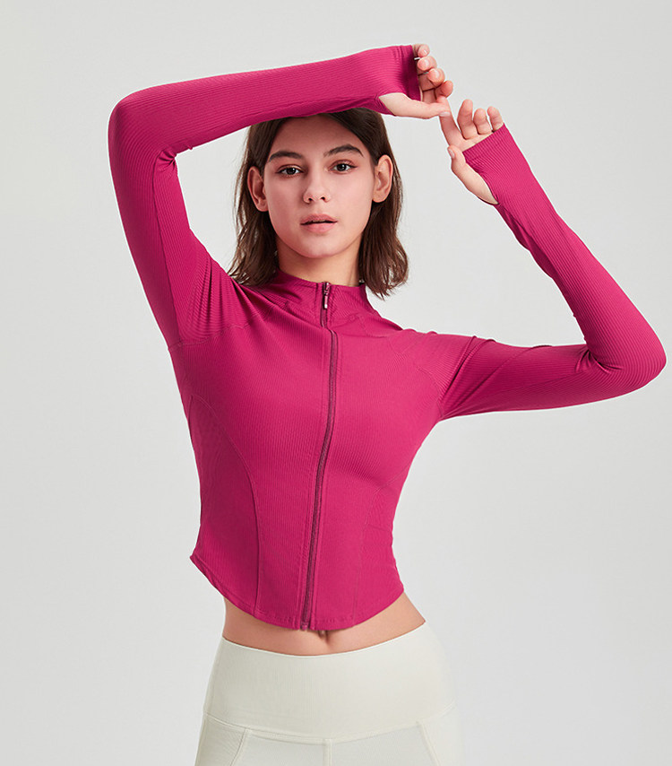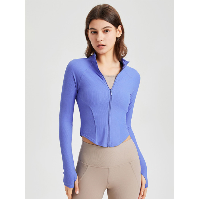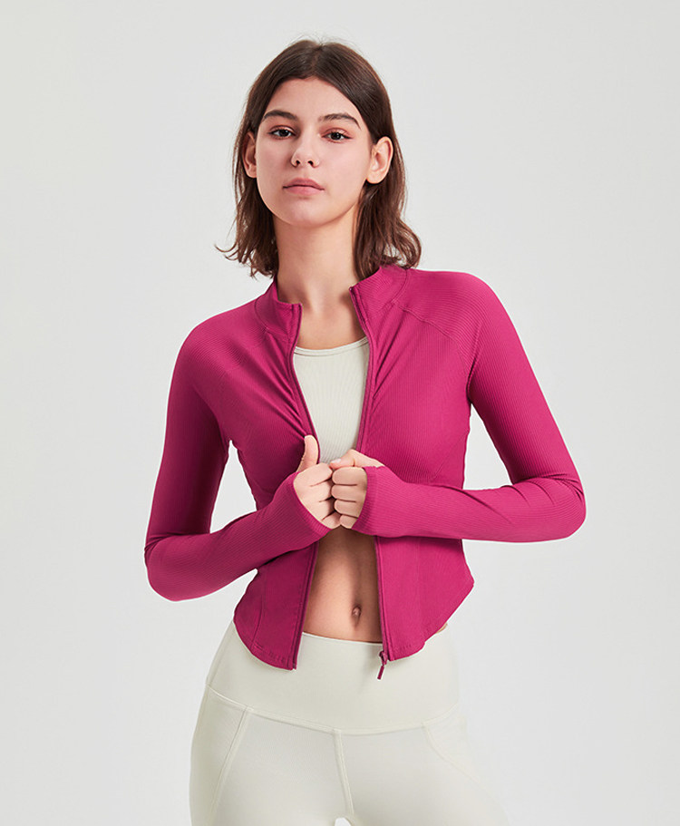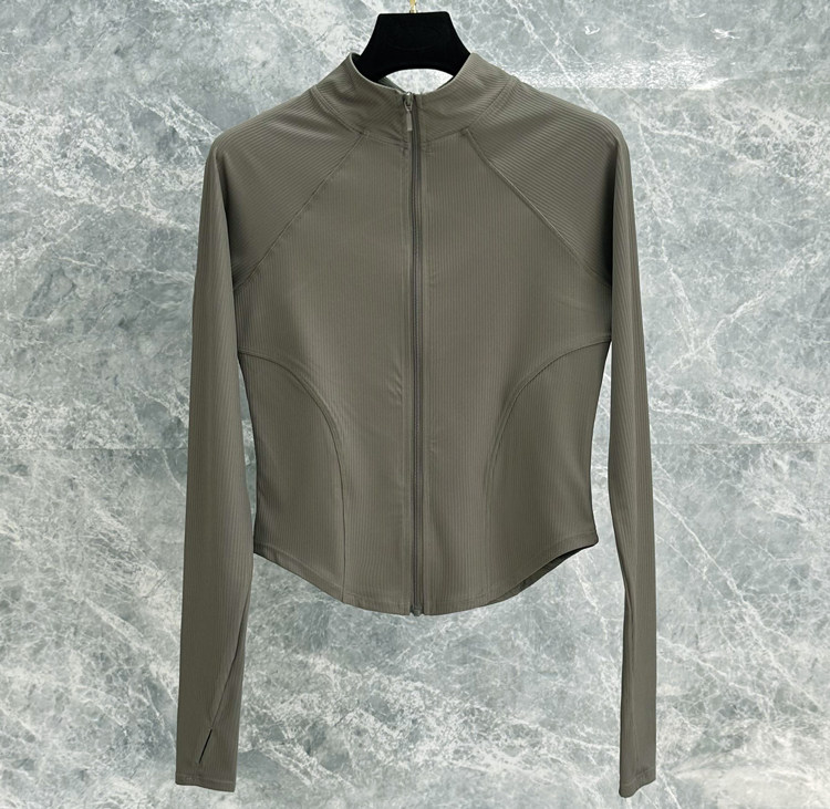 春新款健身外套女緊身顯瘦收腰百搭立領開衫跑步速乾長袖運動上衣
