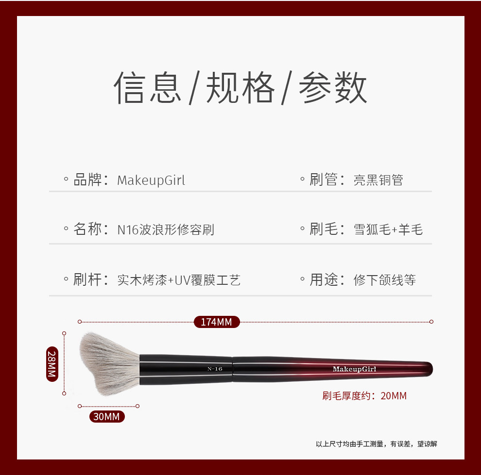 魅女郎硃釉N16波浪形修容刷小號面部輪廓刷動物毛側臉隂影化妝刷