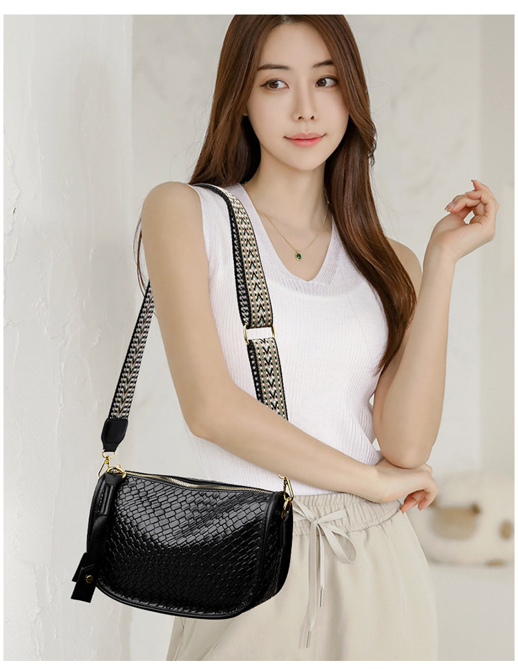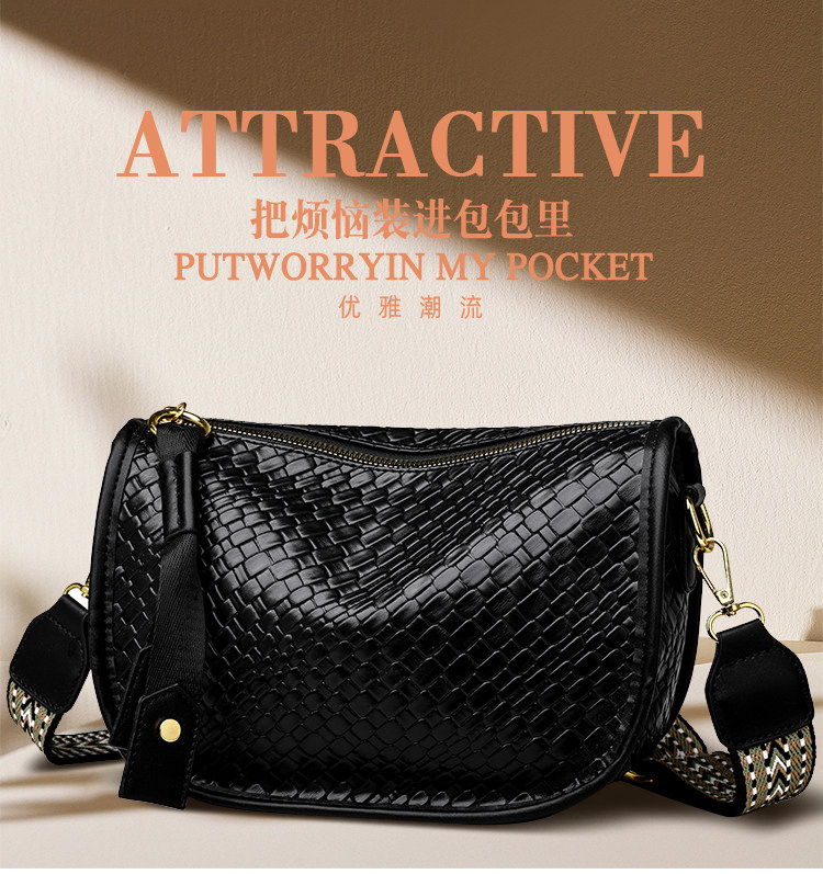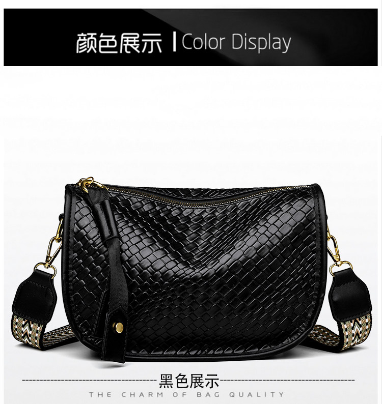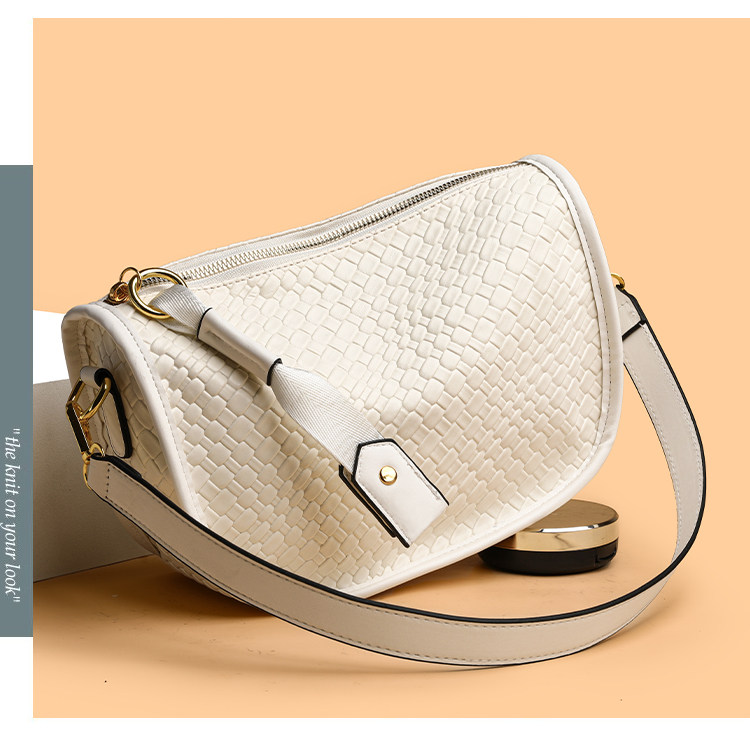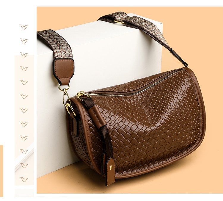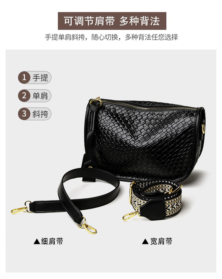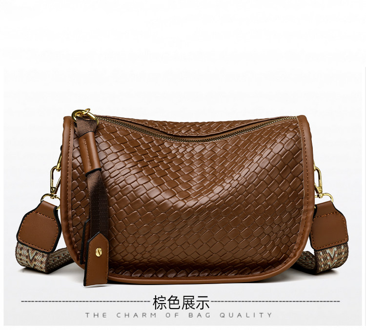 女包2025新款時尚百搭單肩斜後後背包包女高級感小衆編織大容量馬鞍包