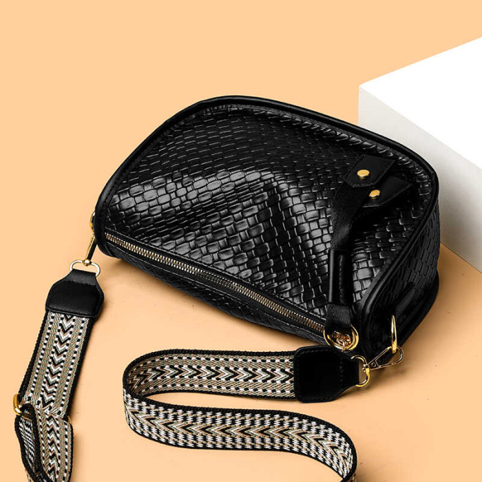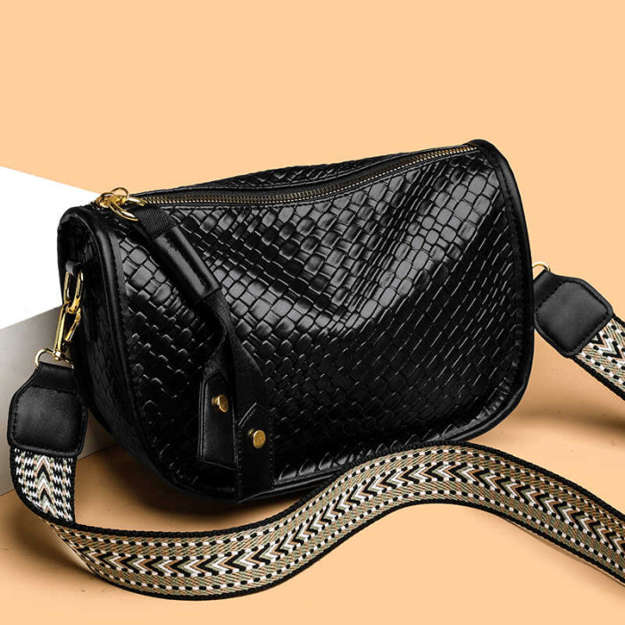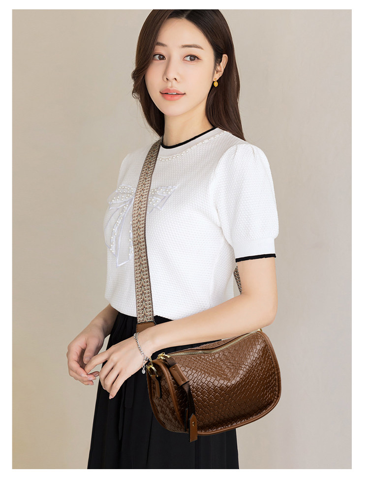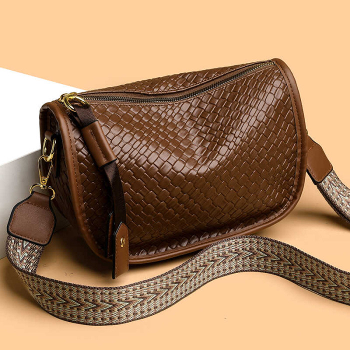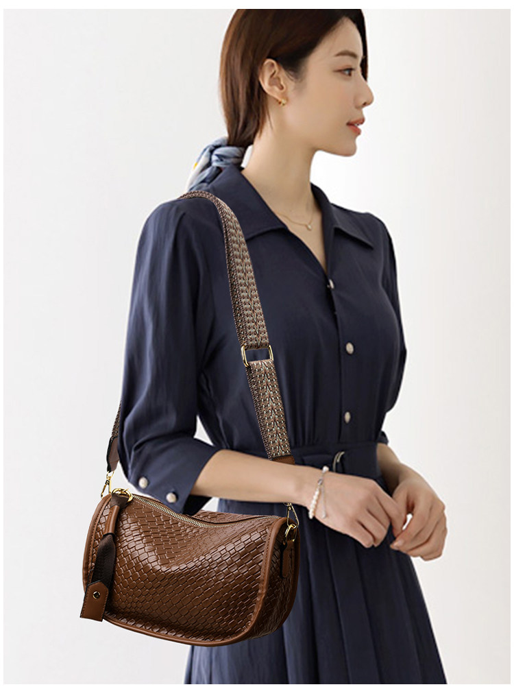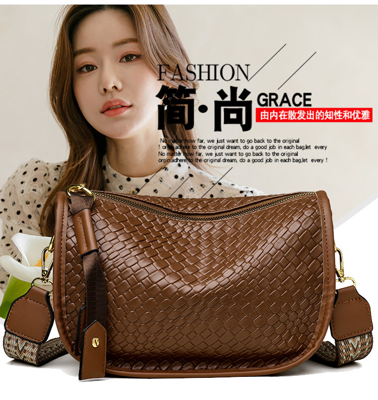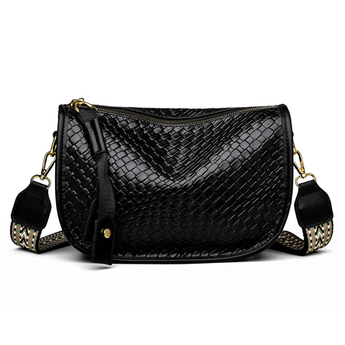 女包2025新款時尚百搭單肩斜後後背包包女高級感小衆編織大容量馬鞍包
