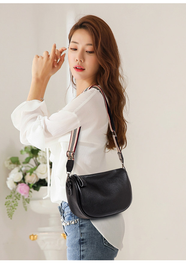 真皮包包2025新款潮寬帶馬鞍包歐洲站胸包牛皮女包軟皮單肩斜後後背包