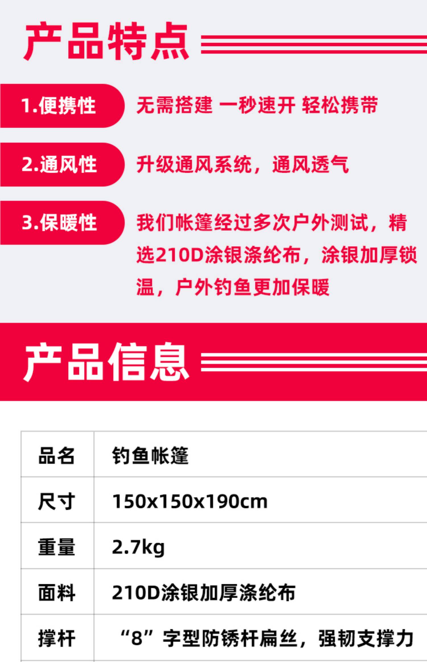外帳材質 190D滌綸塗銀布