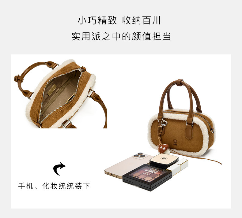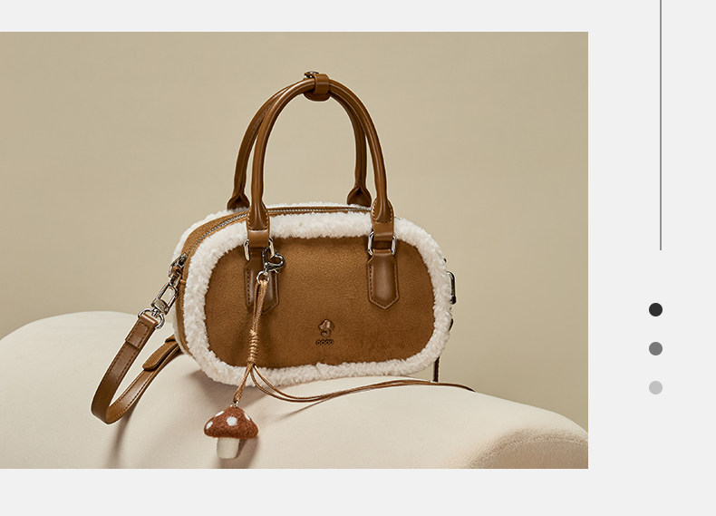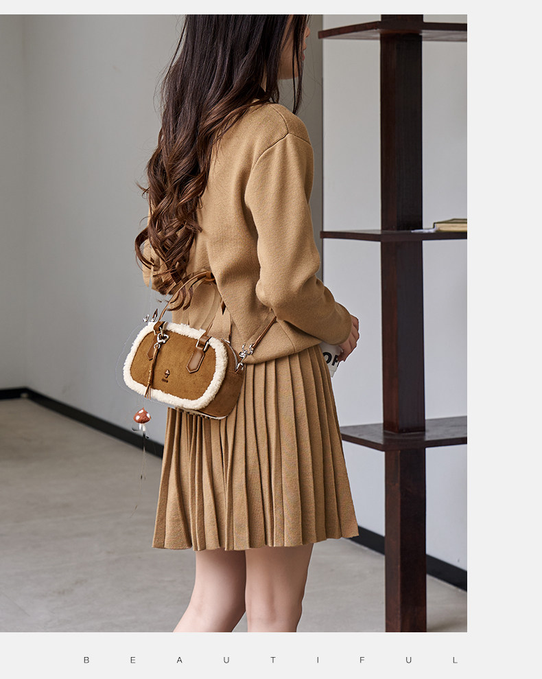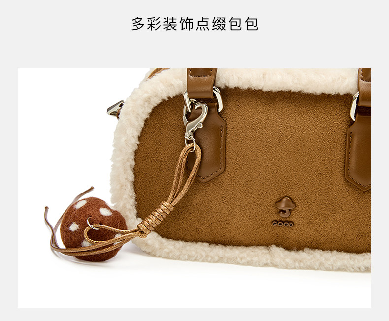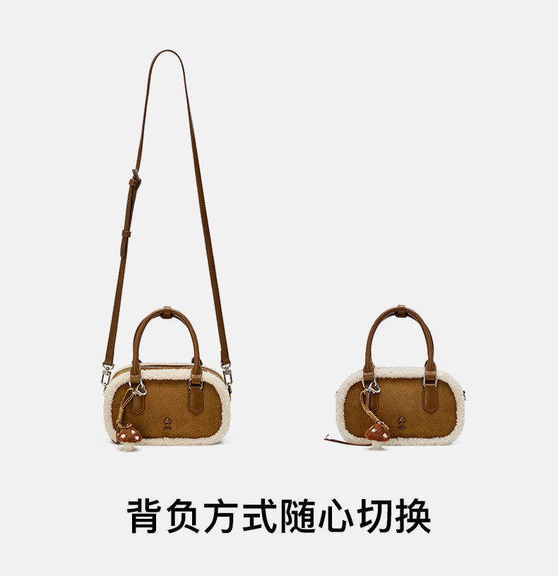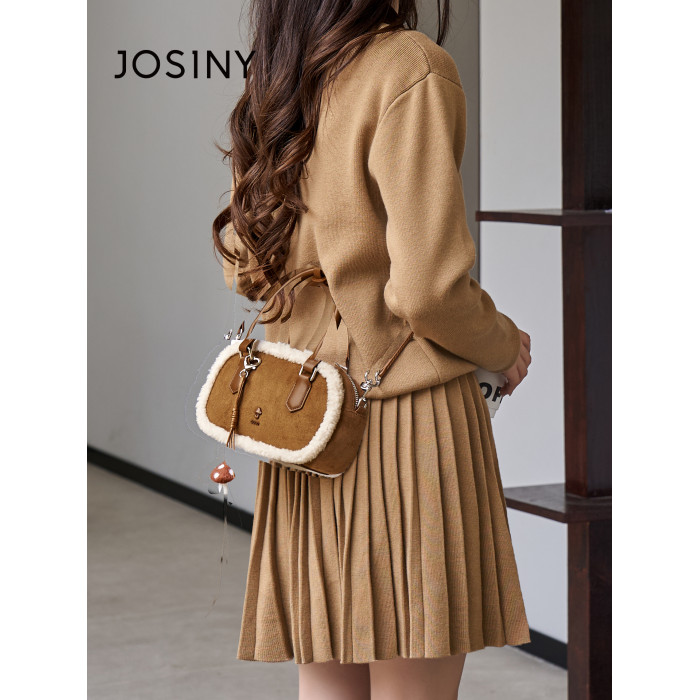 Josiny/卓詩尼2025年冬新款單肩斜後後背包女款高級感絨面輕奢蘑菇包