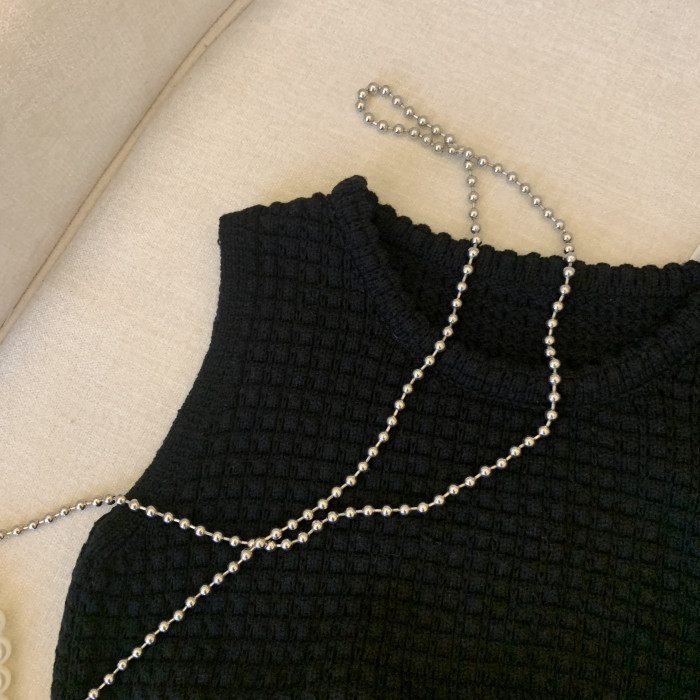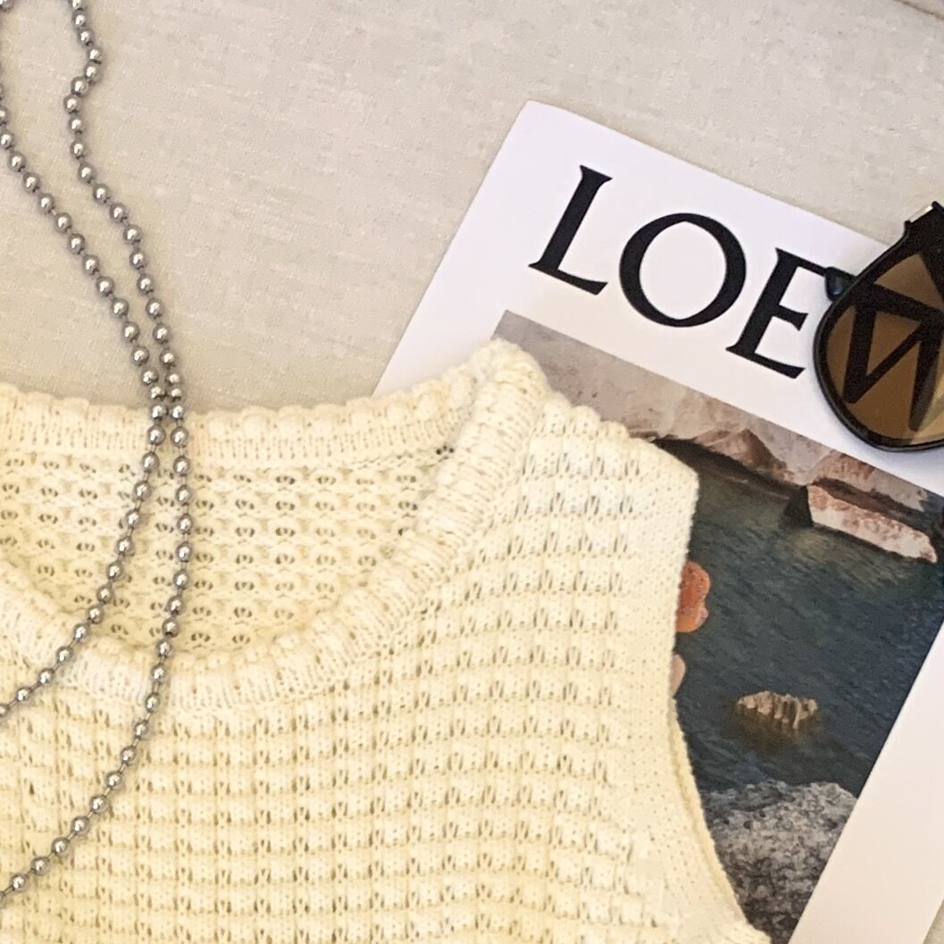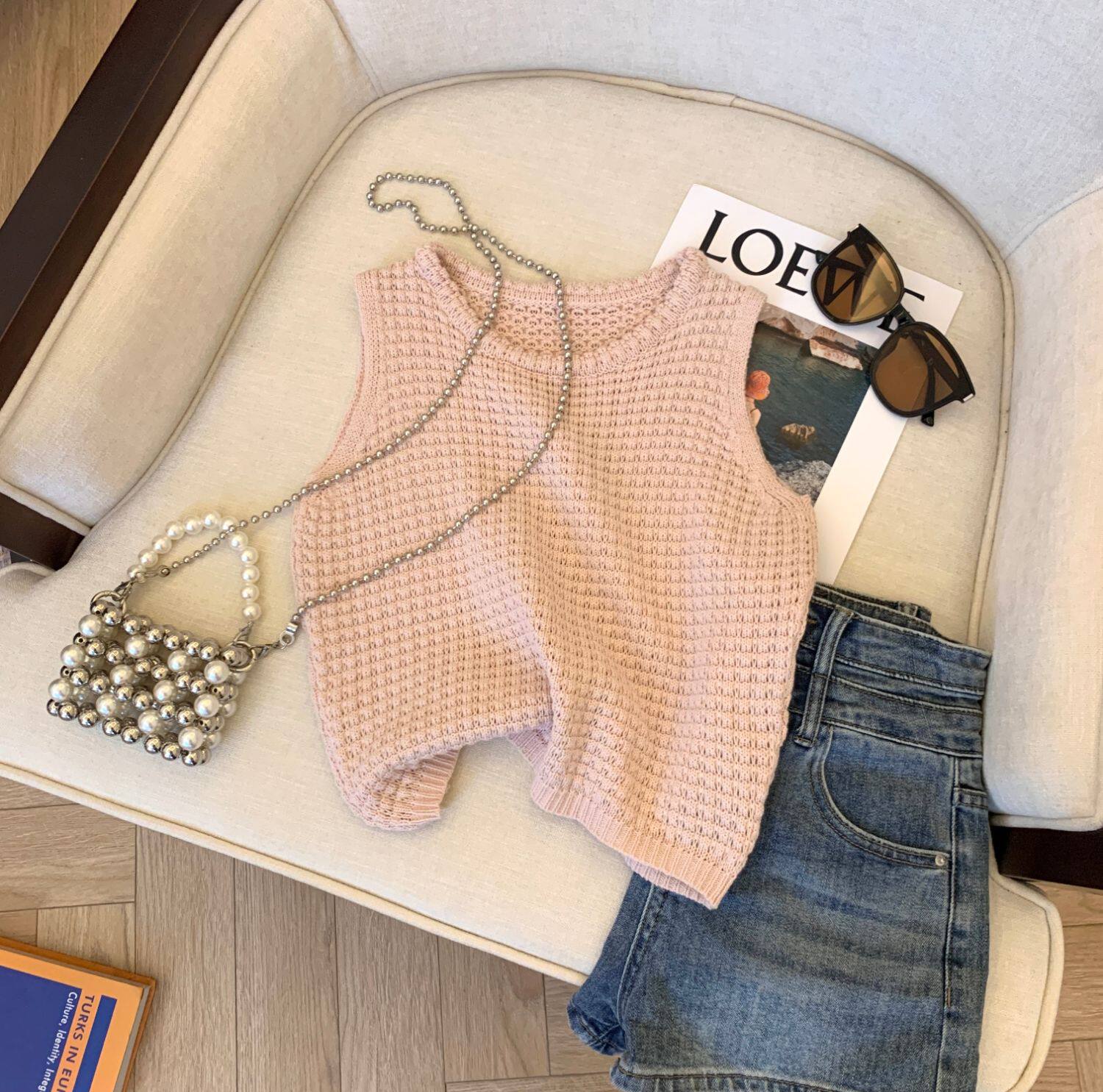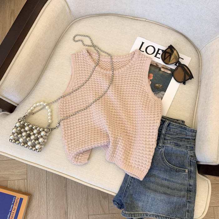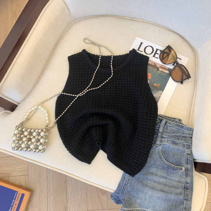 專櫃撤廻剪標華夫格圓領針織背心女夏季新款高級感別致無袖短上衣