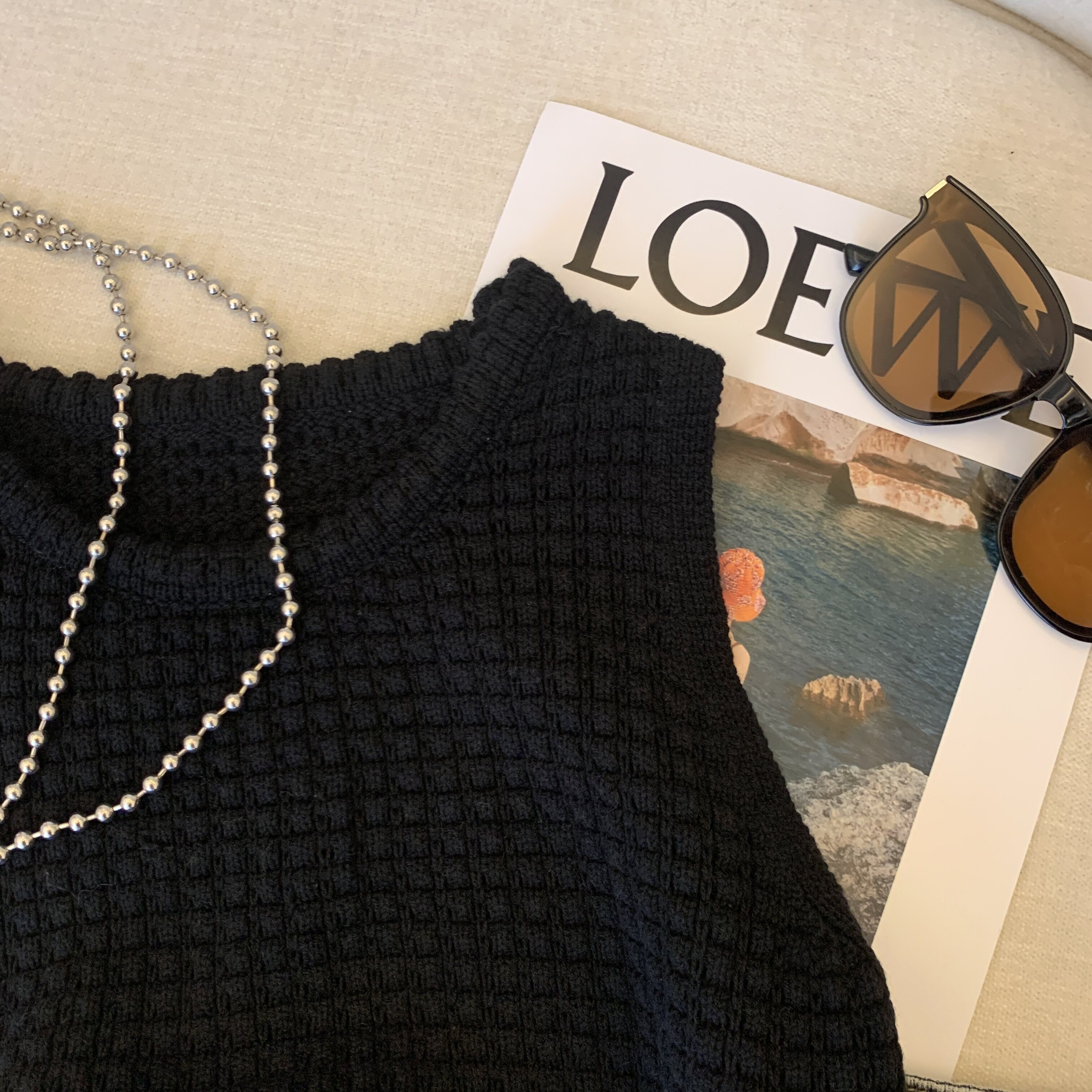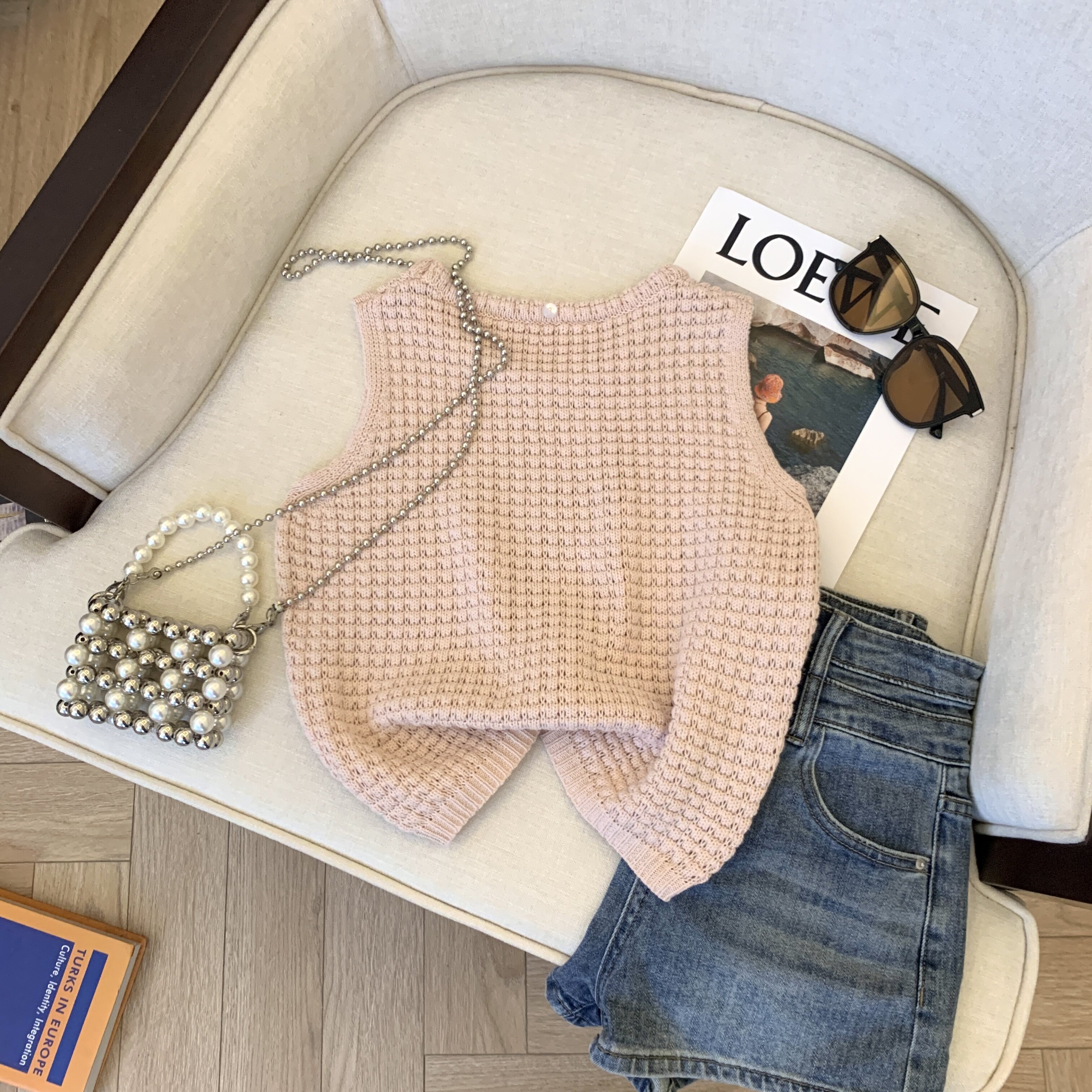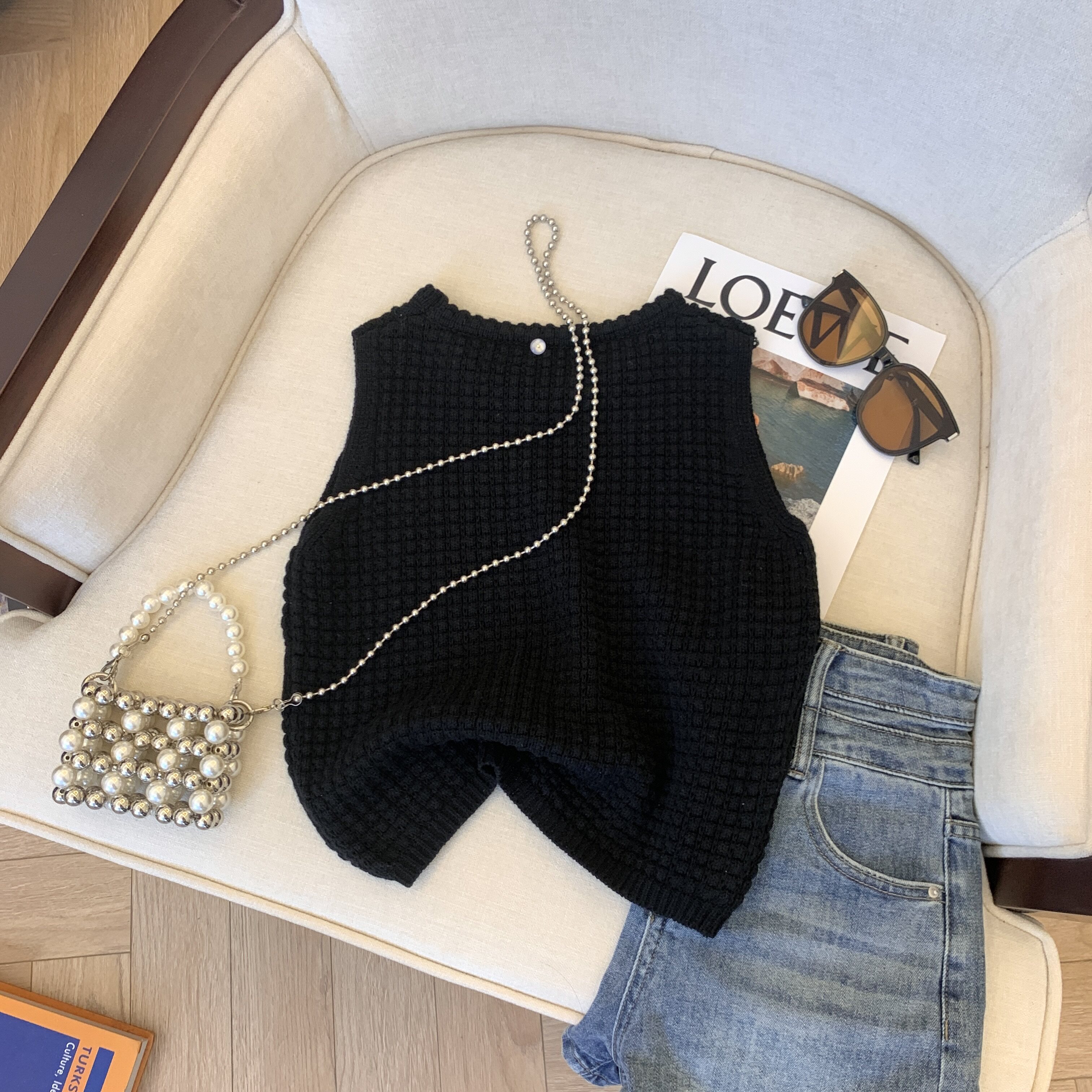 專櫃撤廻剪標華夫格圓領針織背心女夏季新款高級感別致無袖短上衣