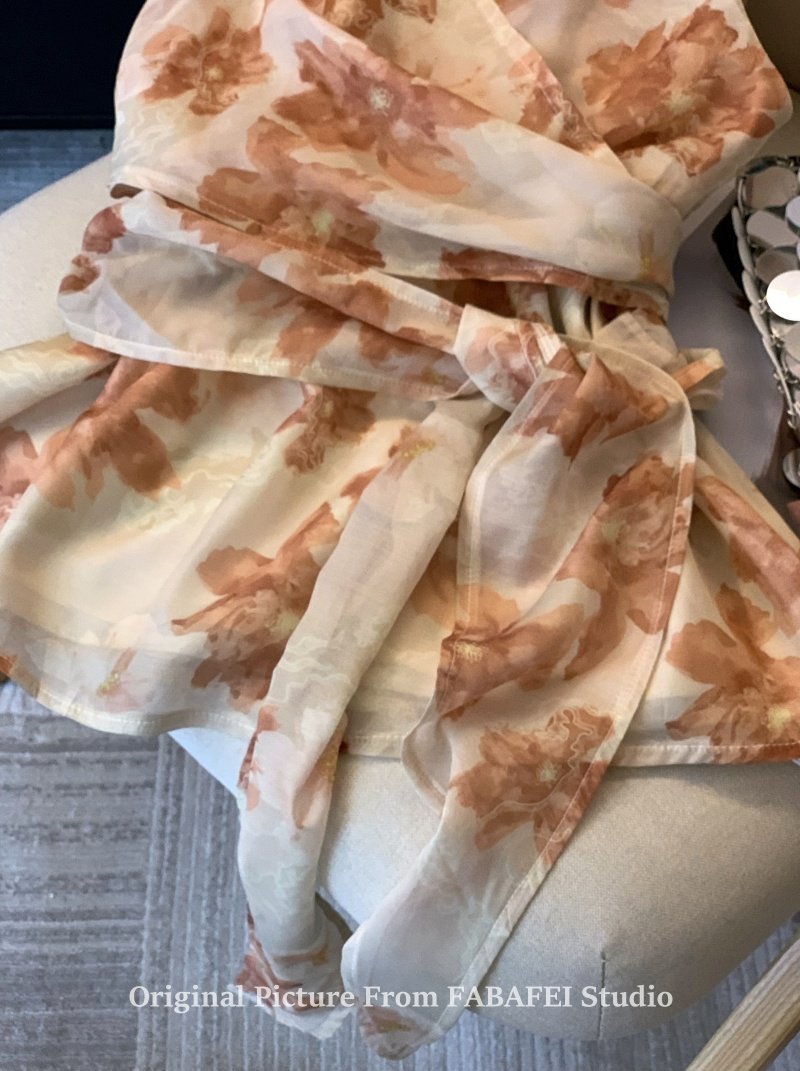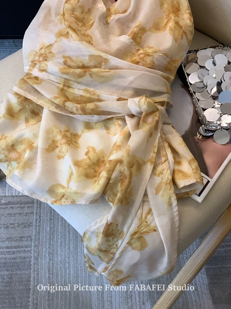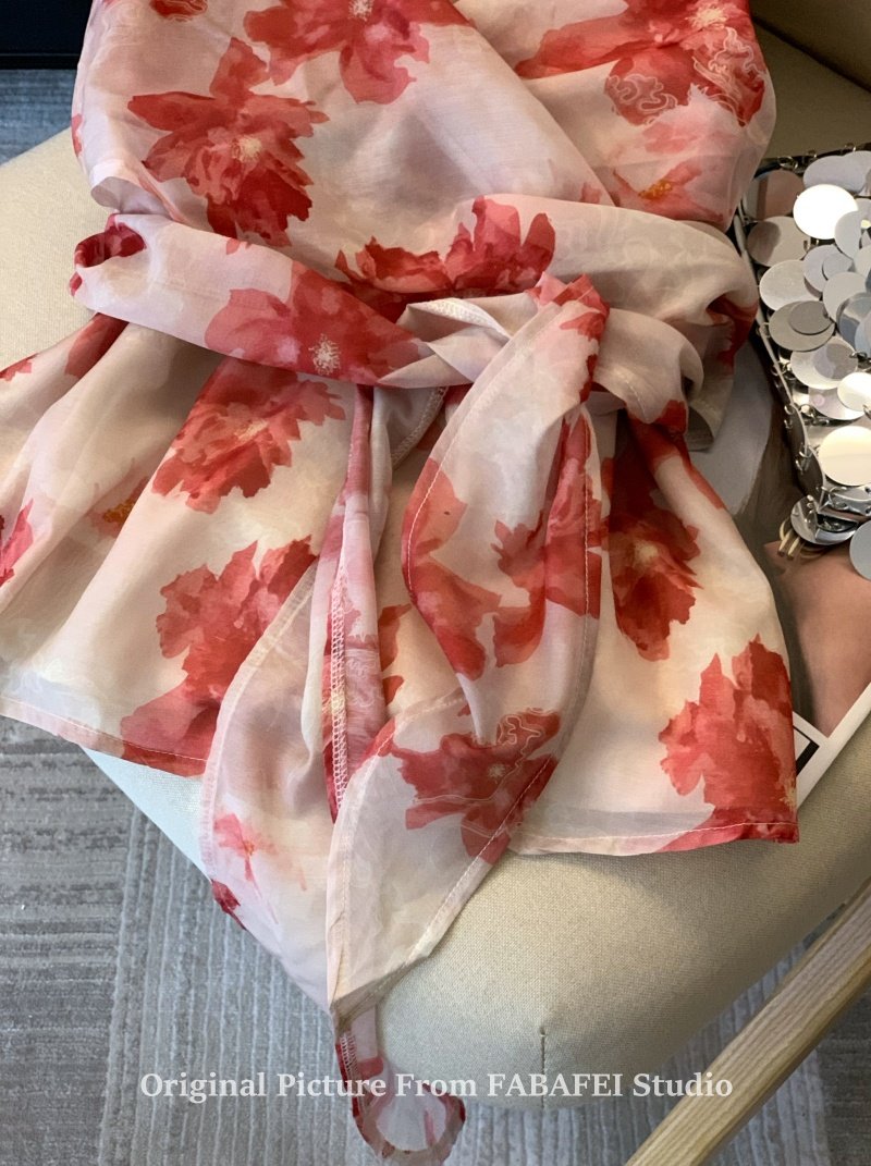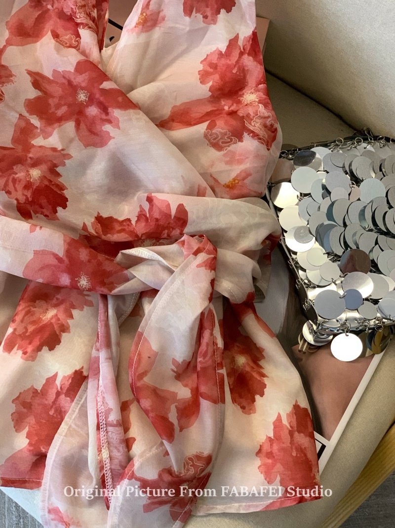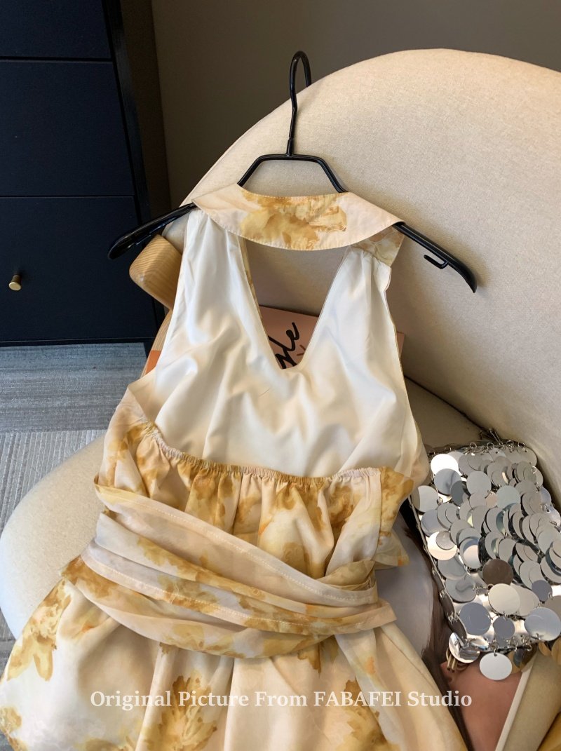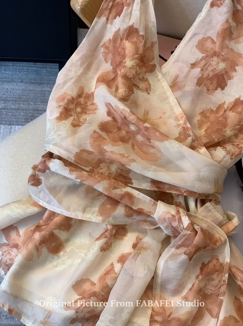 自畱爆款推薦~海邊度假碎花v領掛脖背心女夏季辣妹露背雪紡小上衣