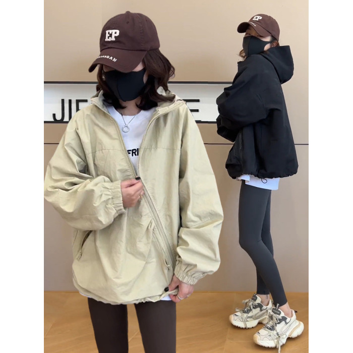 早秋款爆款連帽沖鋒衣服外套女春秋裝2025新款初秋天休閒寬鬆夾克