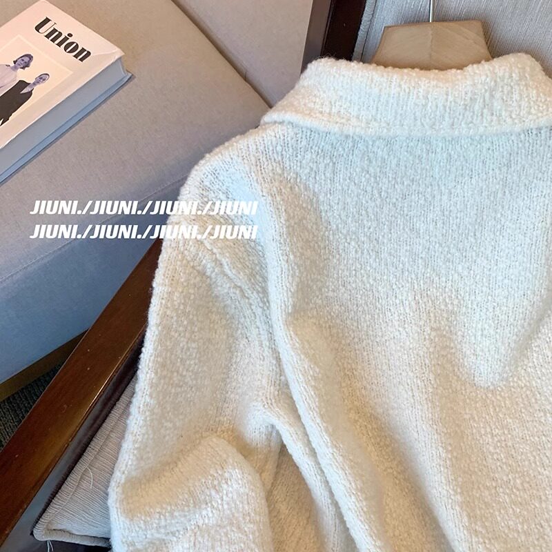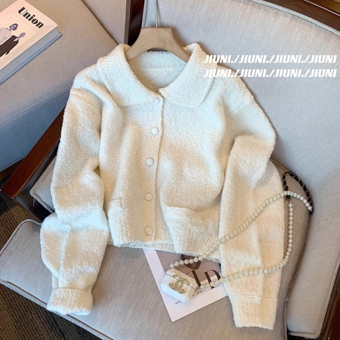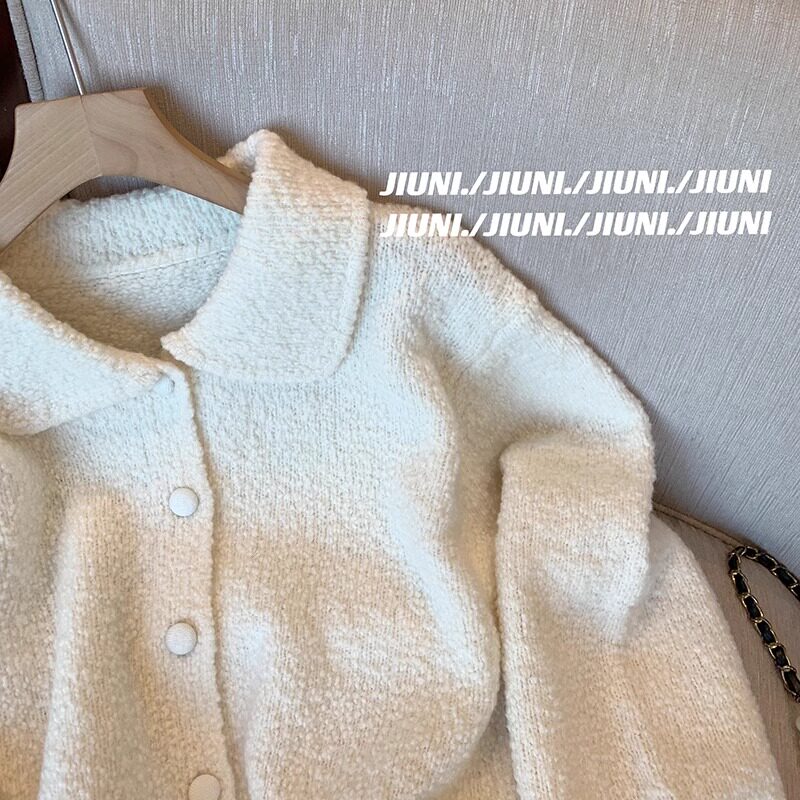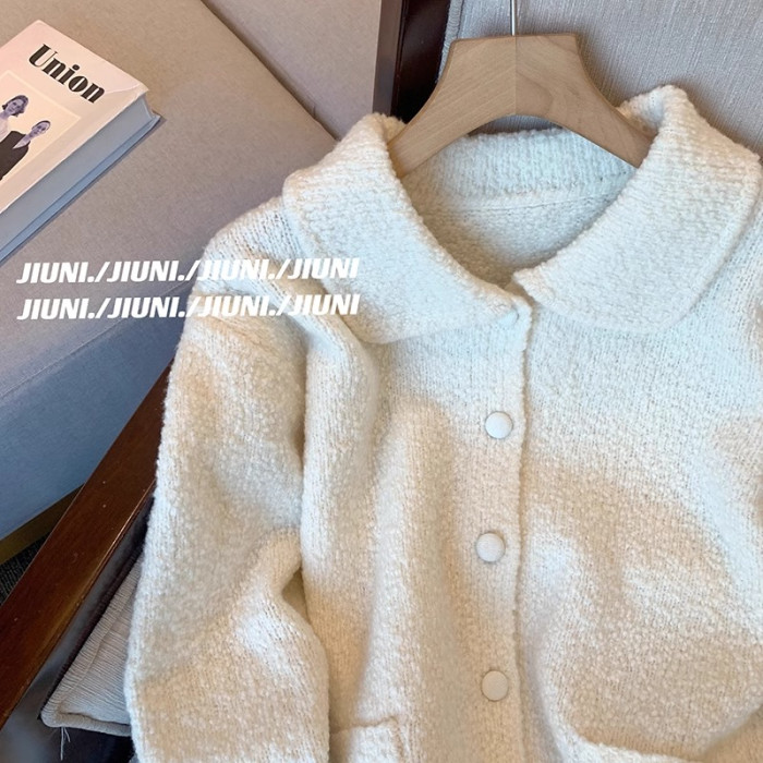 專櫃撤廻剪標單排釦娃娃領毛衣女2025新款韓版溫柔風短款針織外套