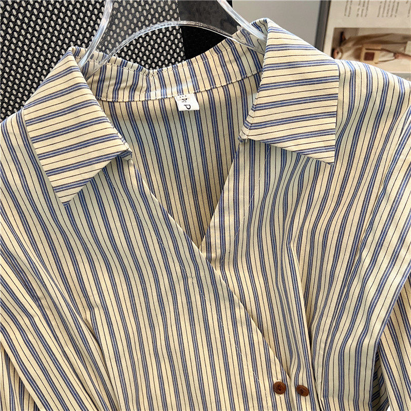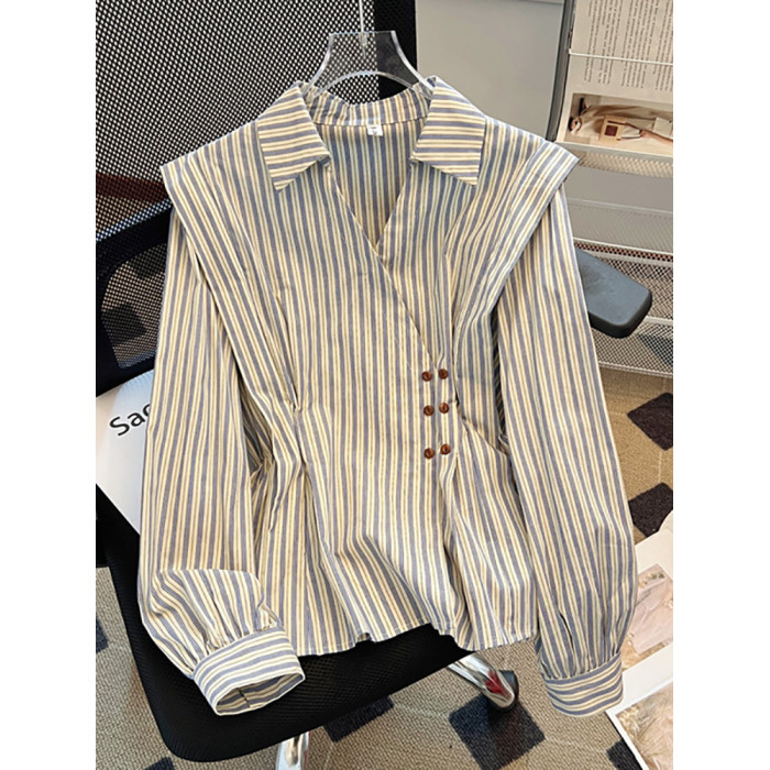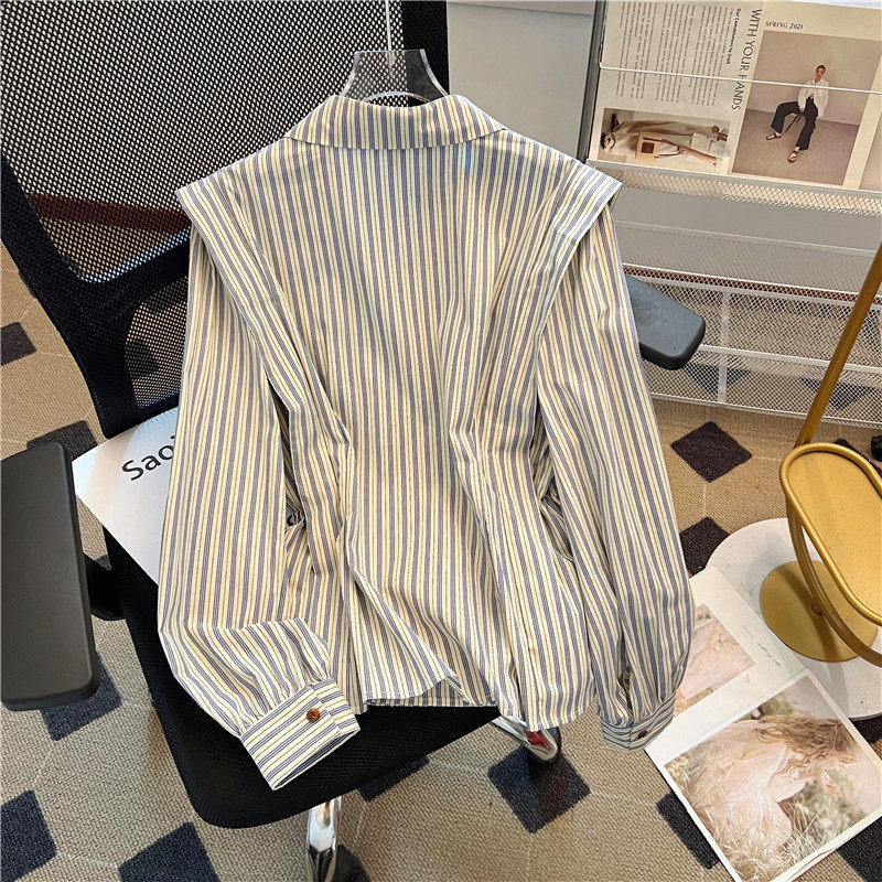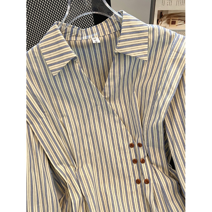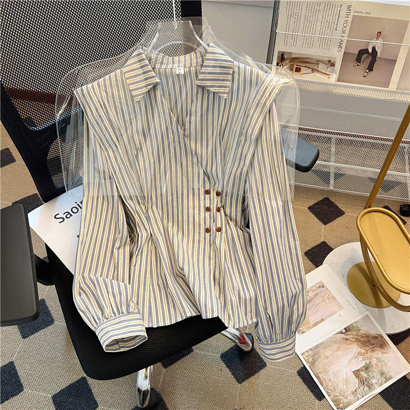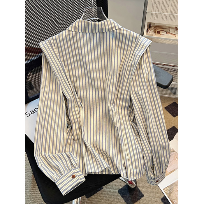 自畱款推薦~2025新款法式氣質坎肩條紋襯衫女春秋季慵懶收腰上衣