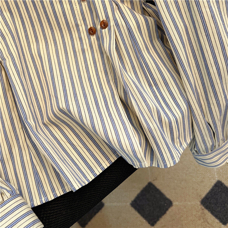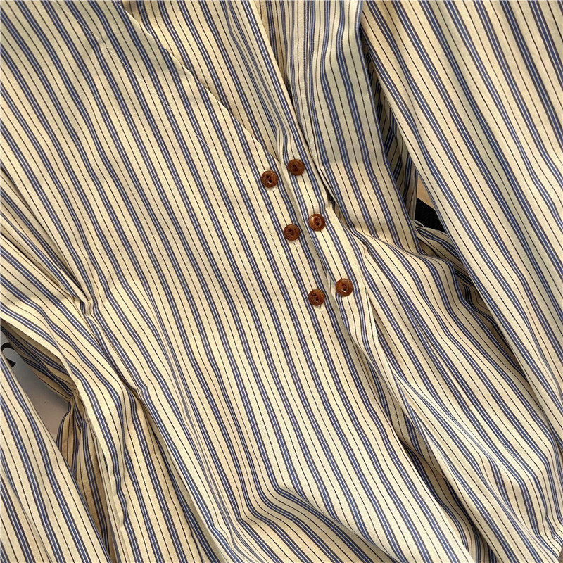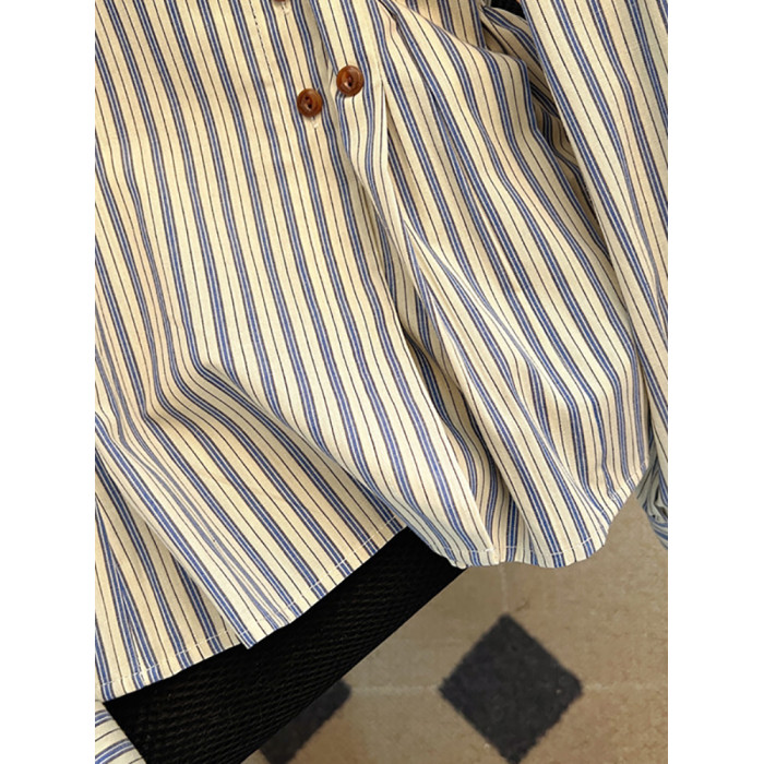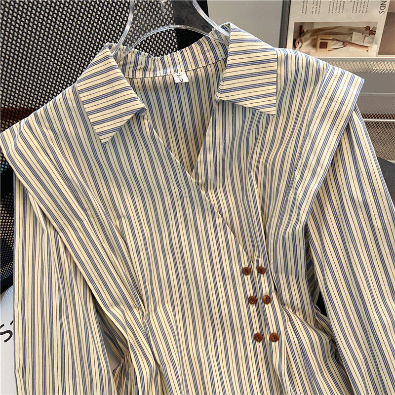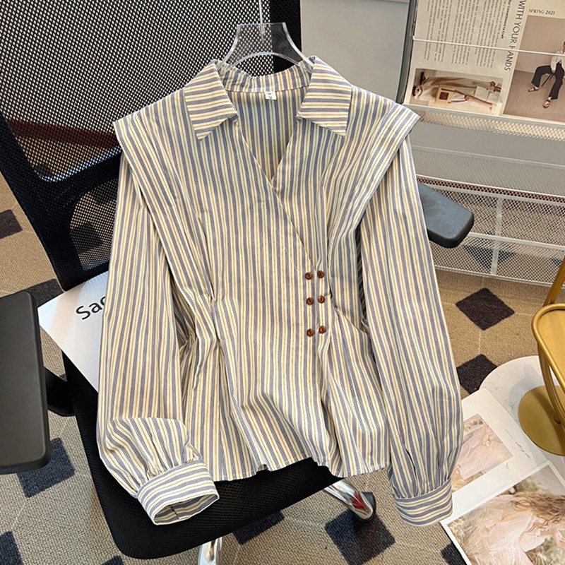 自畱款推薦~2025新款法式氣質坎肩條紋襯衫女春秋季慵懶收腰上衣