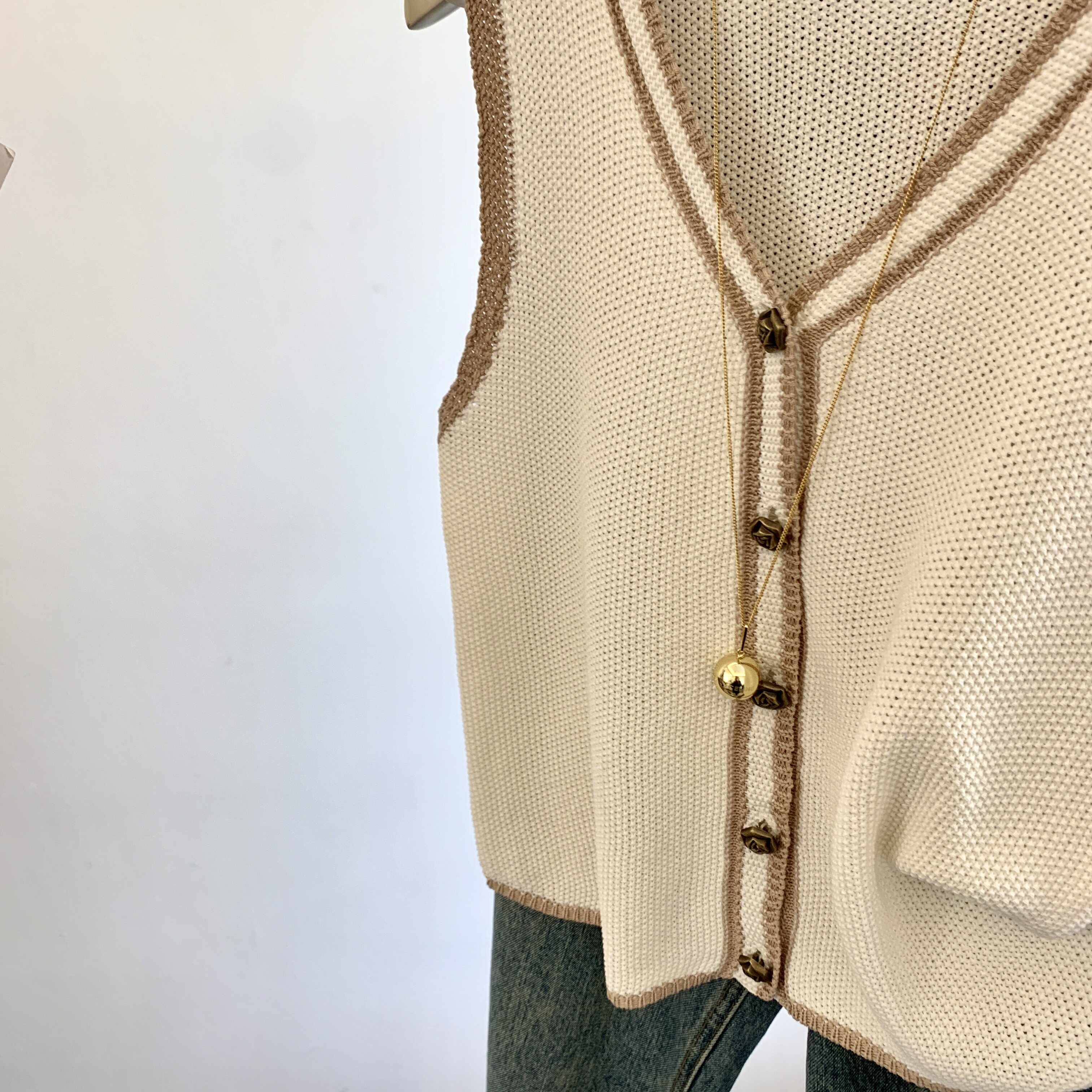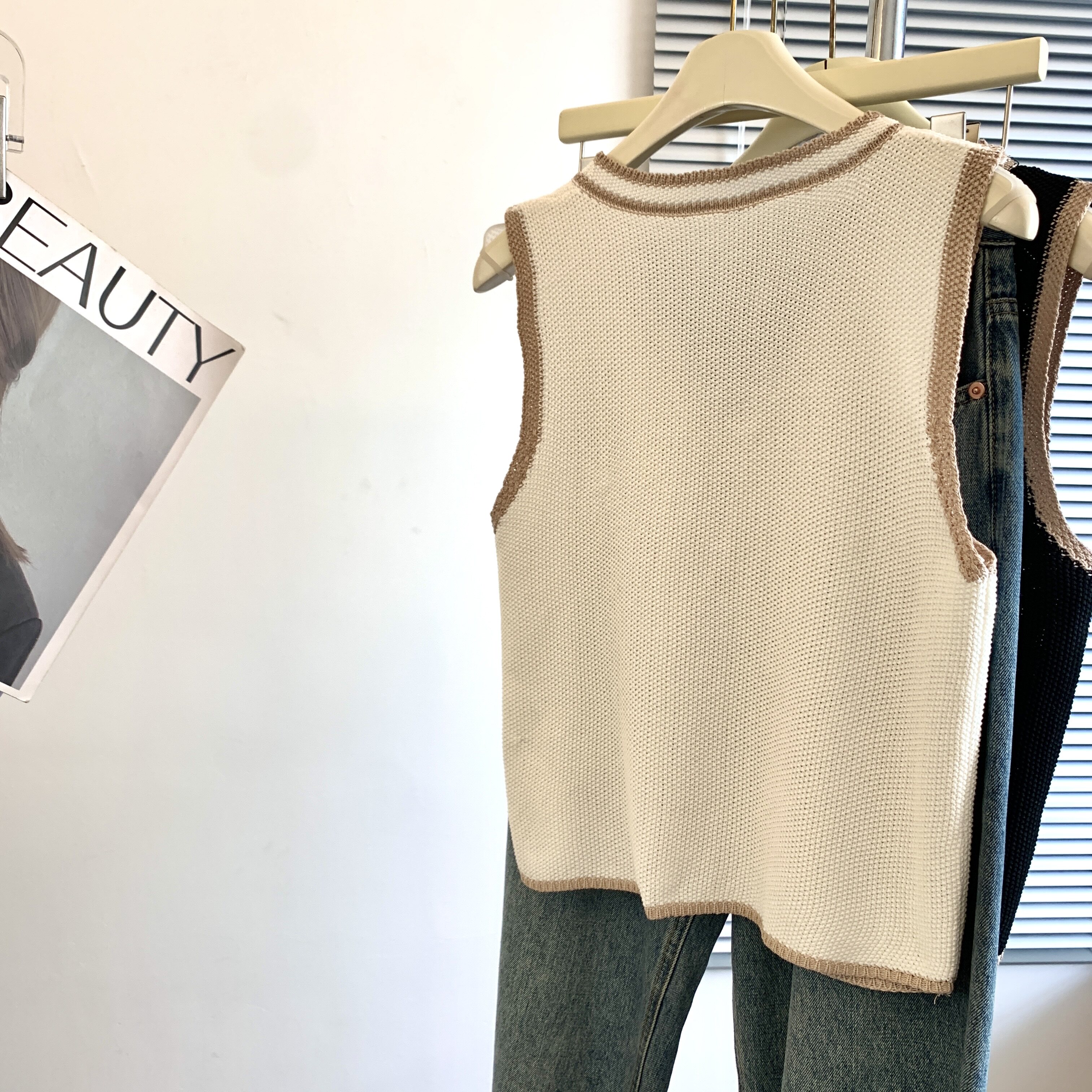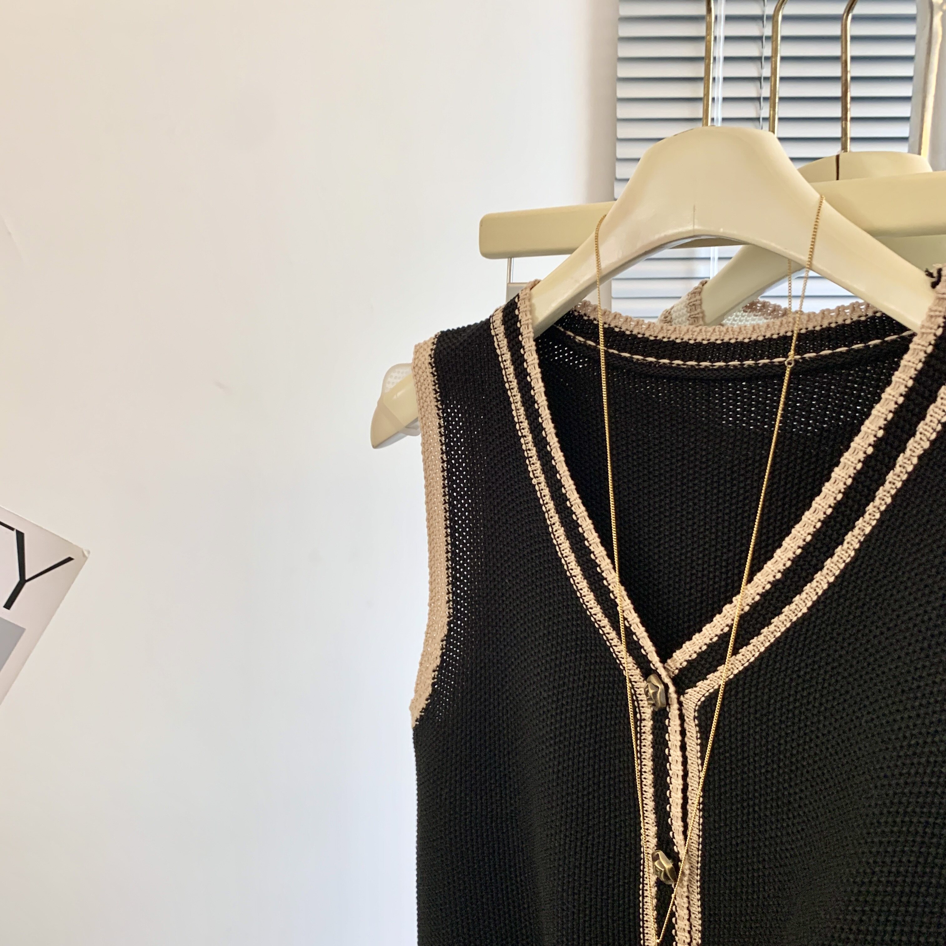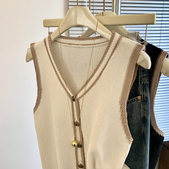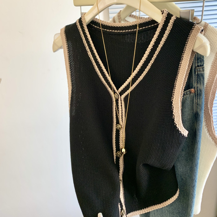 專櫃撤廻剪標韓系撞色V領針織馬甲女夏季新款高級感百搭無袖上衣