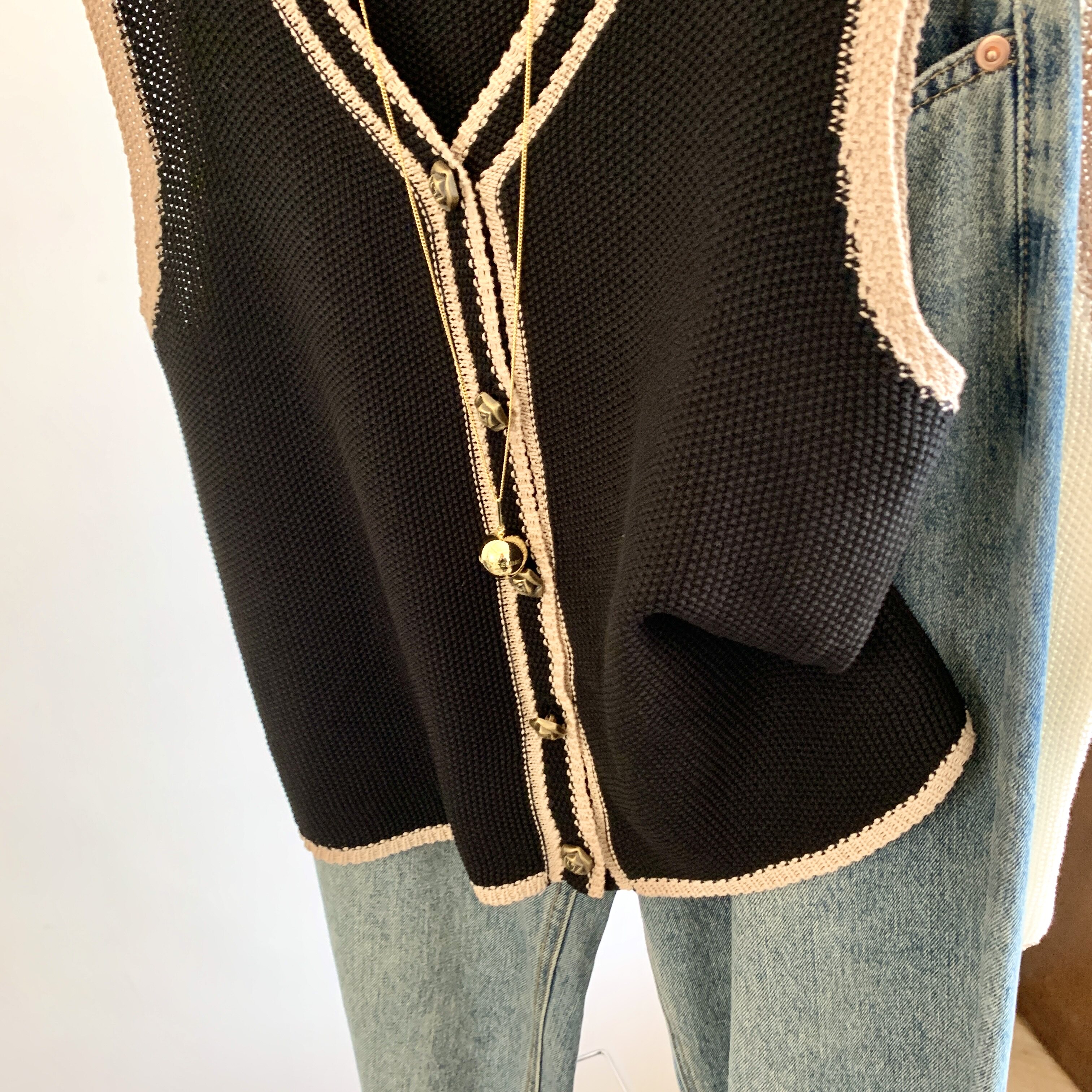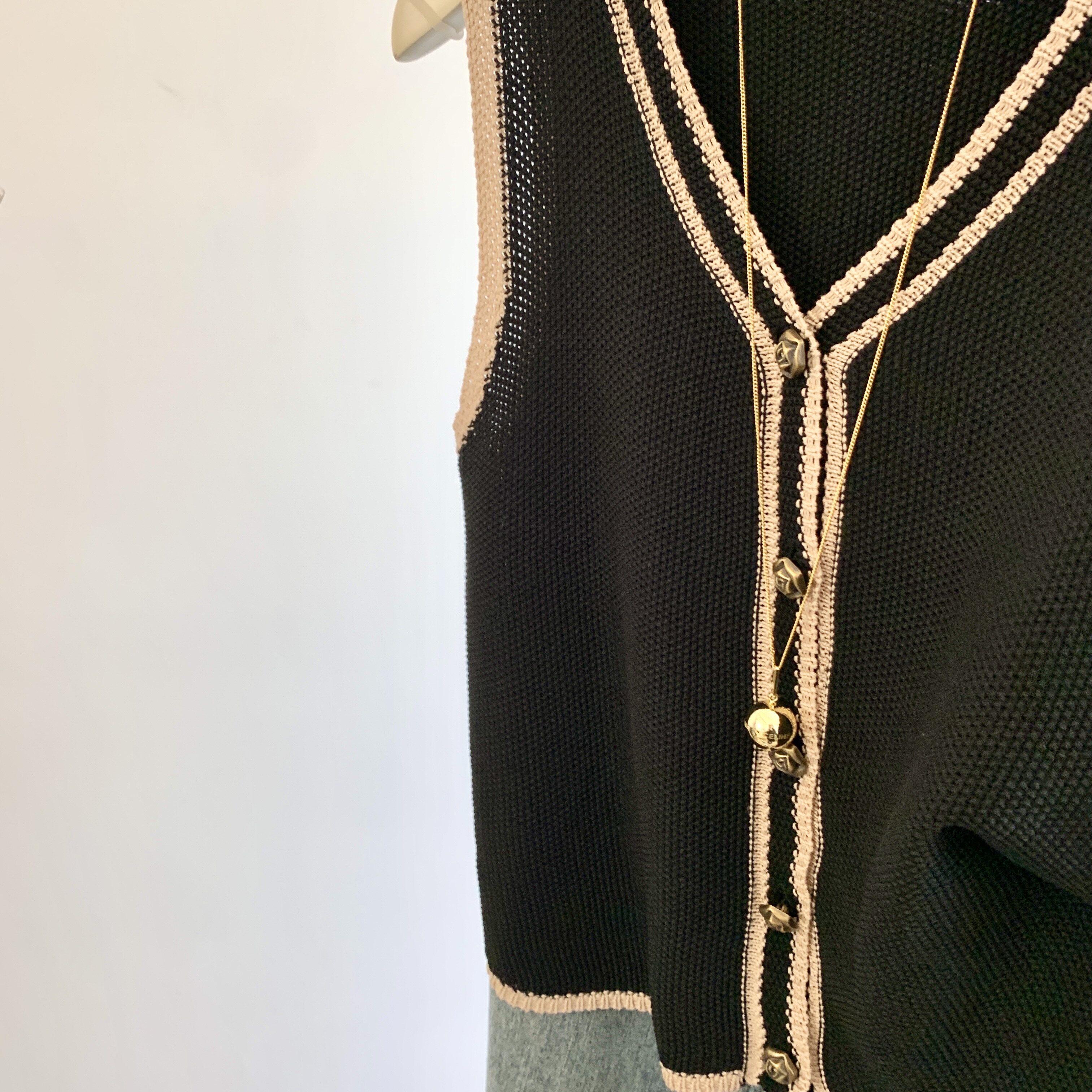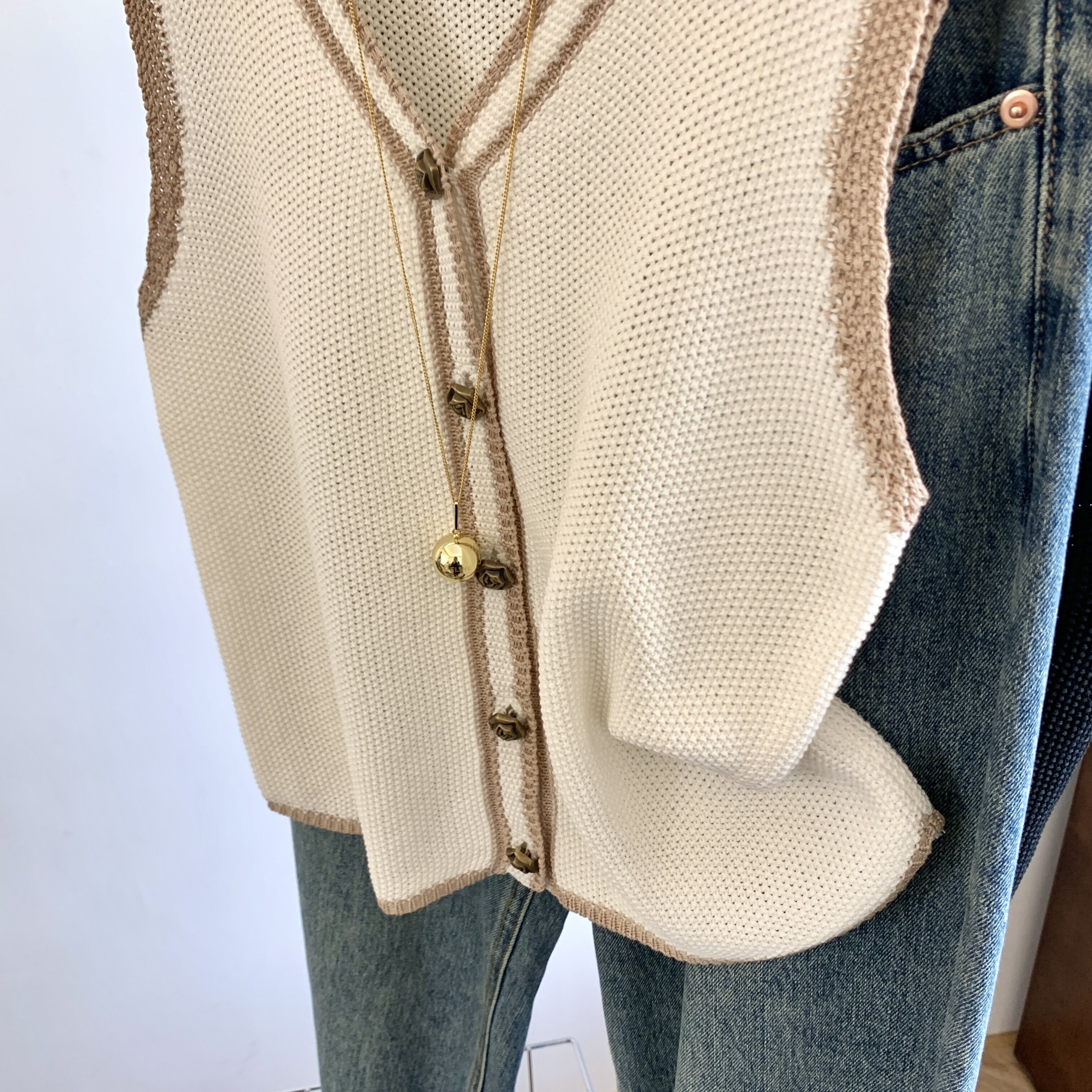 專櫃撤廻剪標韓系撞色V領針織馬甲女夏季新款高級感百搭無袖上衣