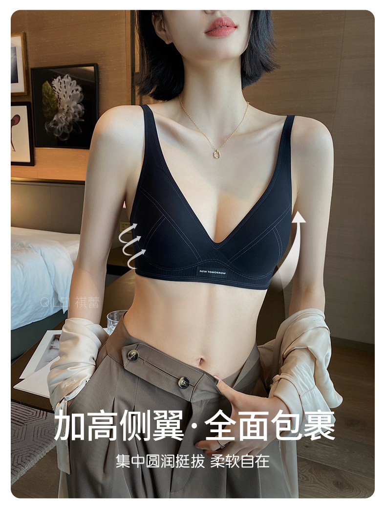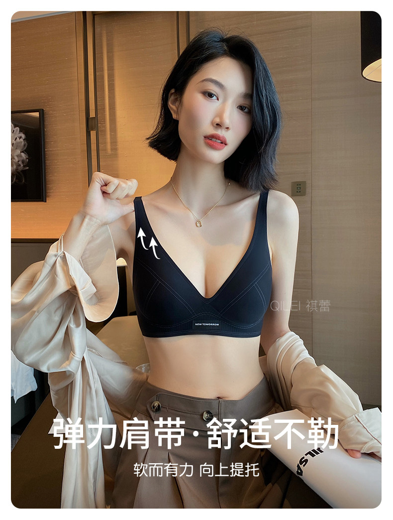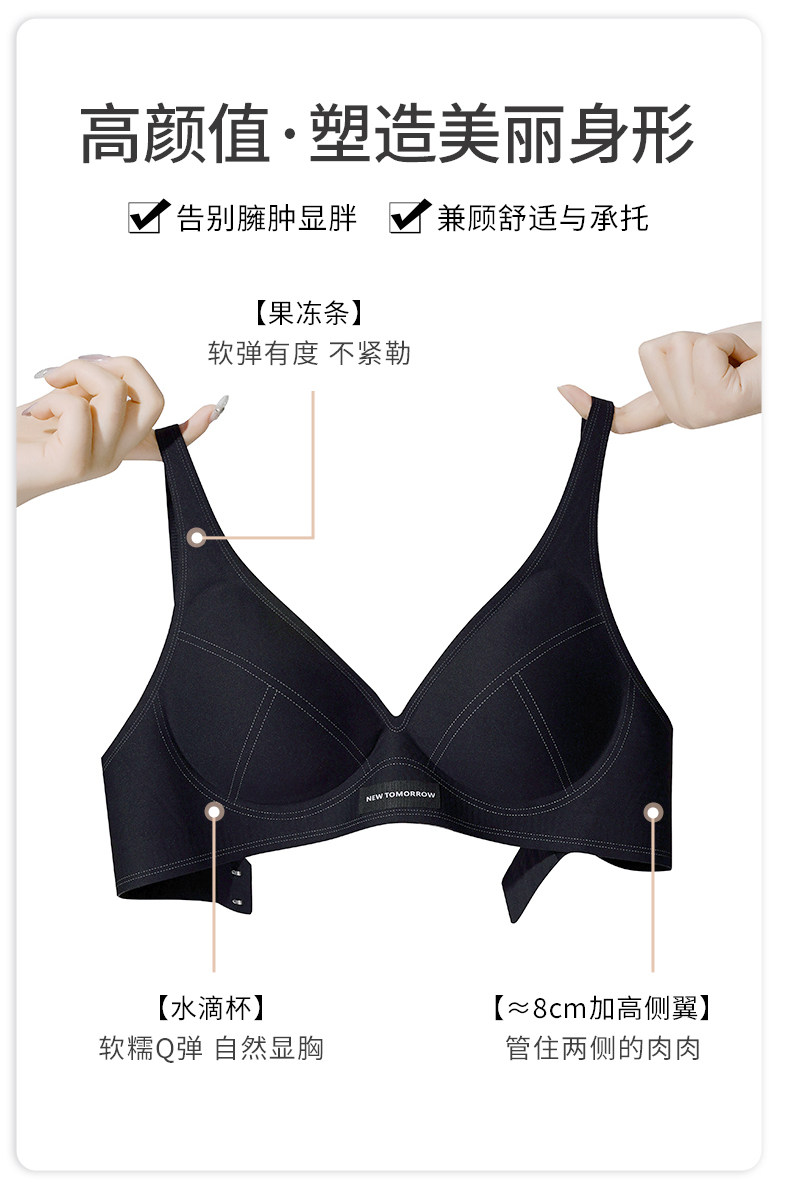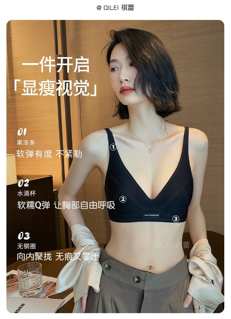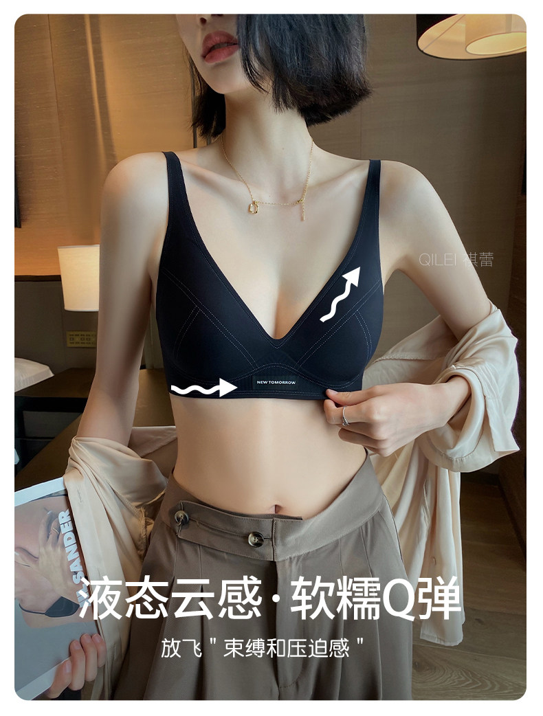 軟支撐內衣女聚攏小胸無鋼圈收副乳防下垂薄款舒適果凍條無痕文胸