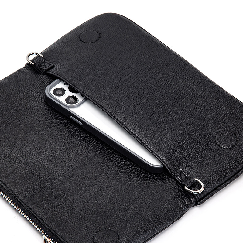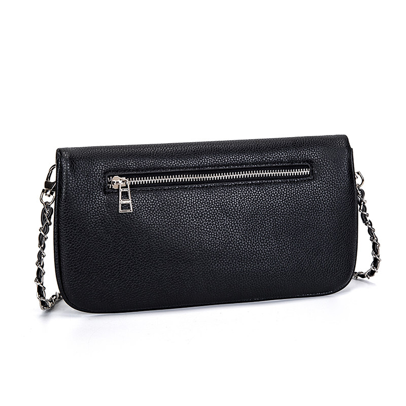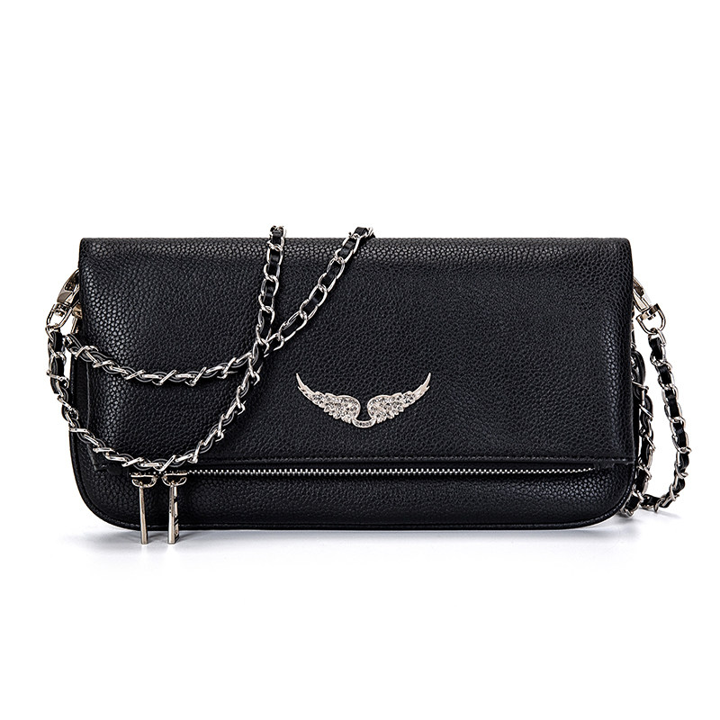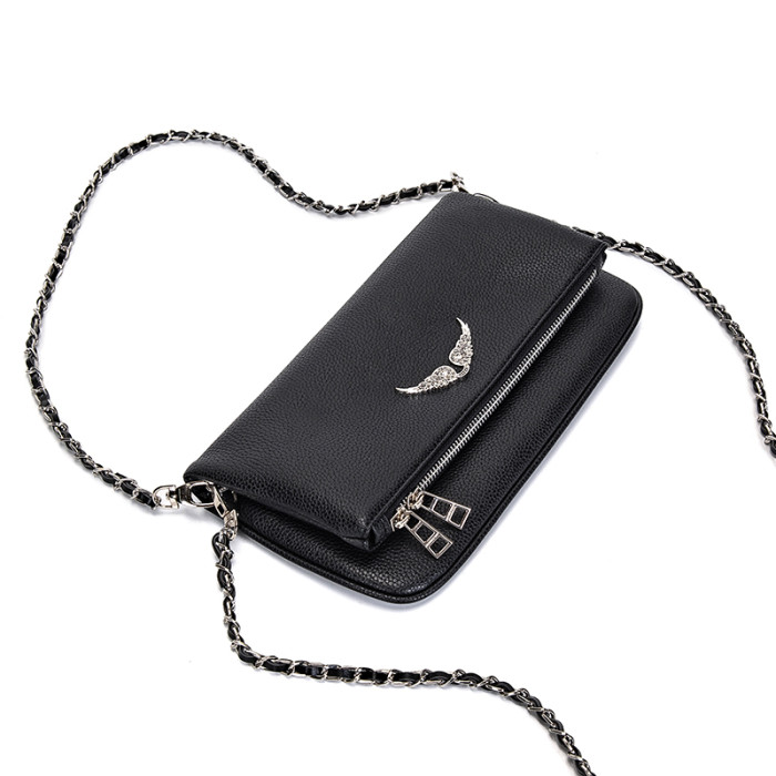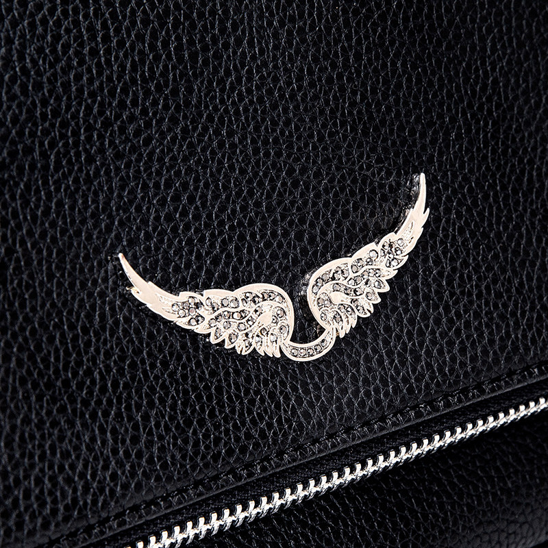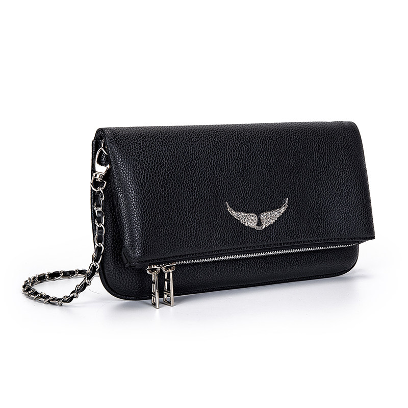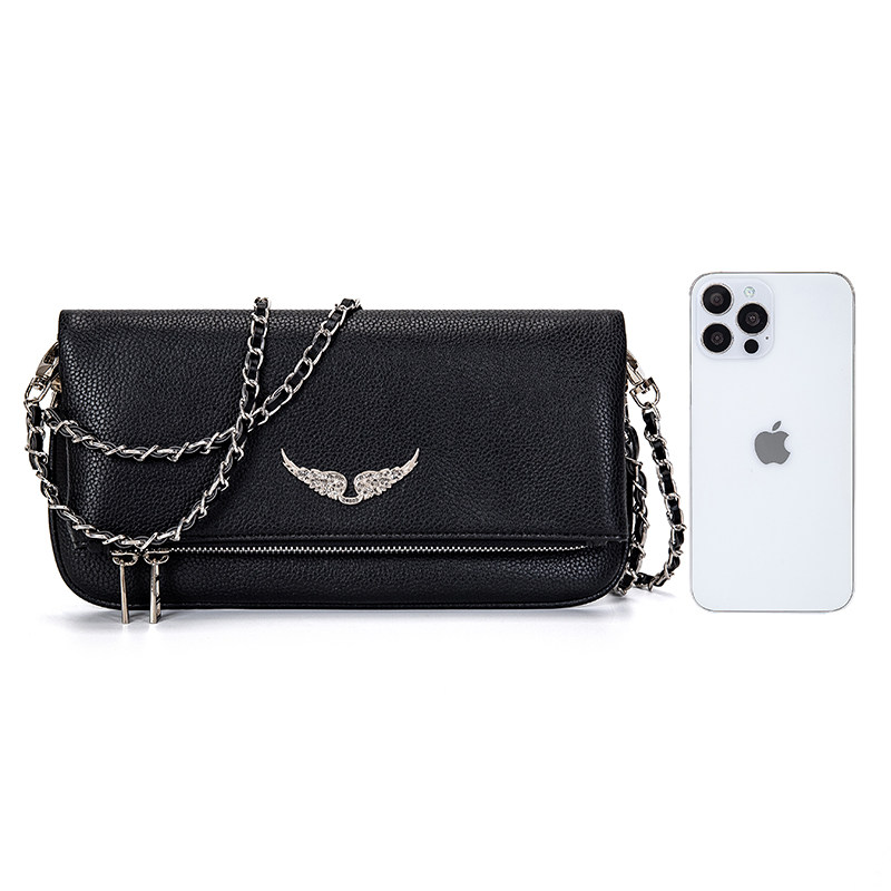 ZV 法式設計 燙鑽 百搭 黑色牛皮雙層單肩包 斜後後背包