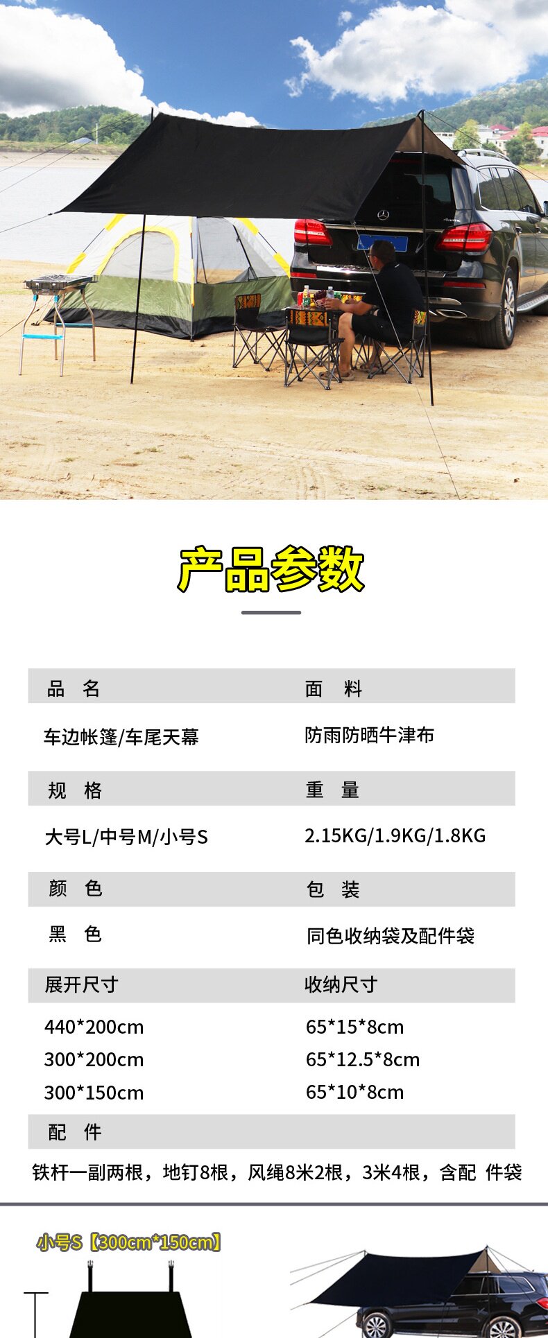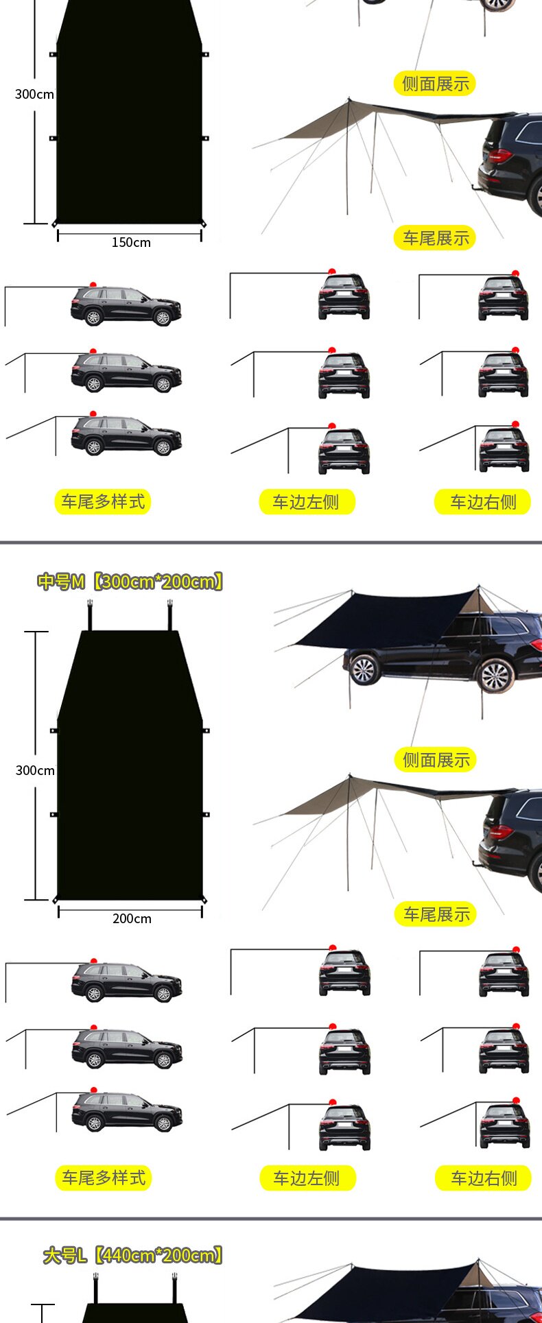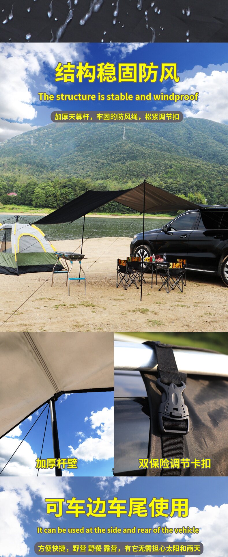 車邊天幕遊旅行戶外帳篷側帳遮陽棚露營野餐車尾防曬防雨車用