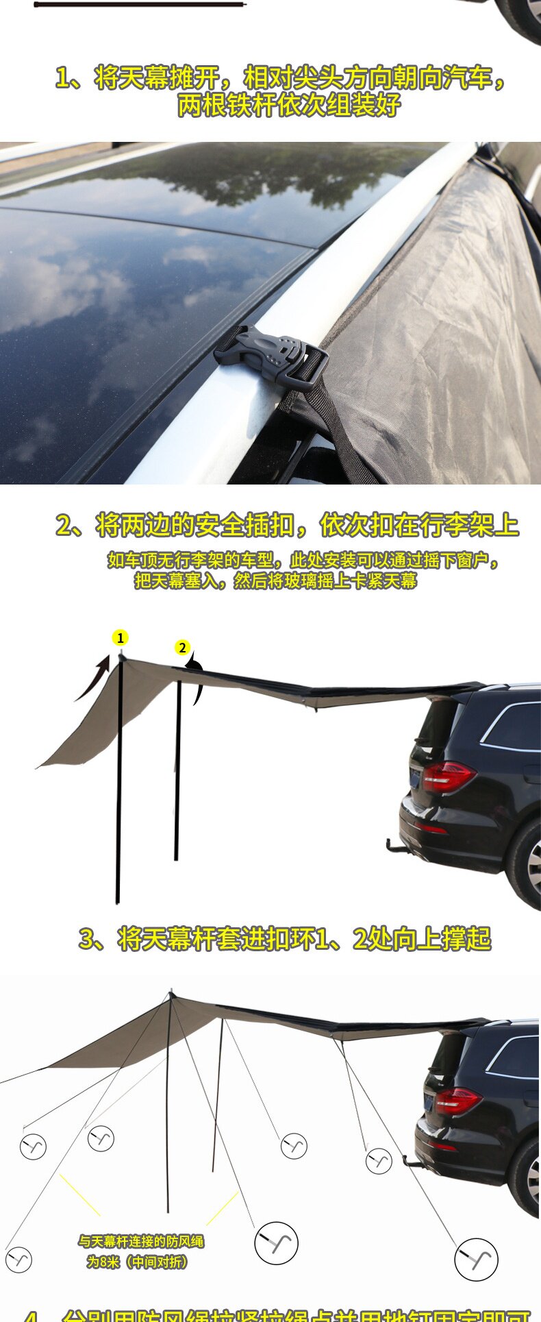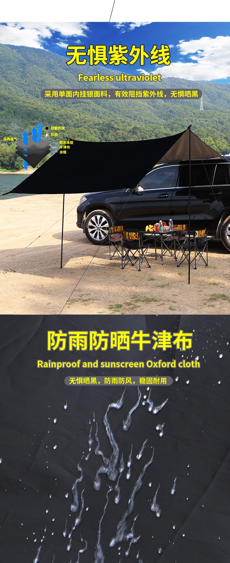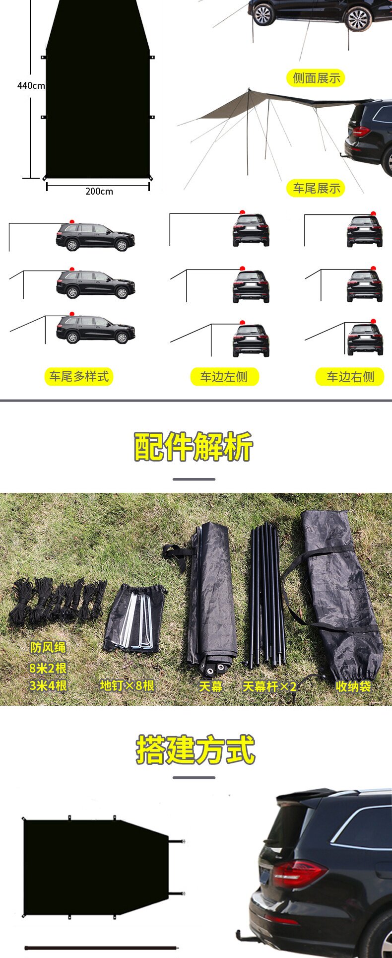 車邊天幕遊旅行戶外帳篷側帳遮陽棚露營野餐車尾防曬防雨車用