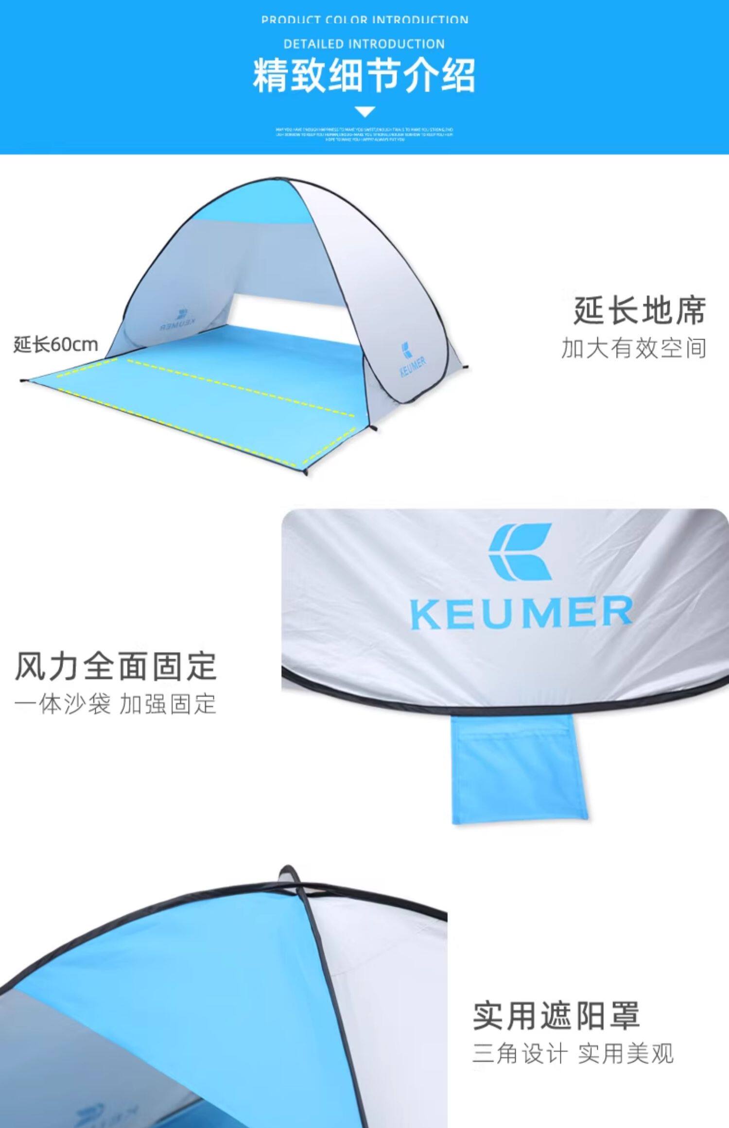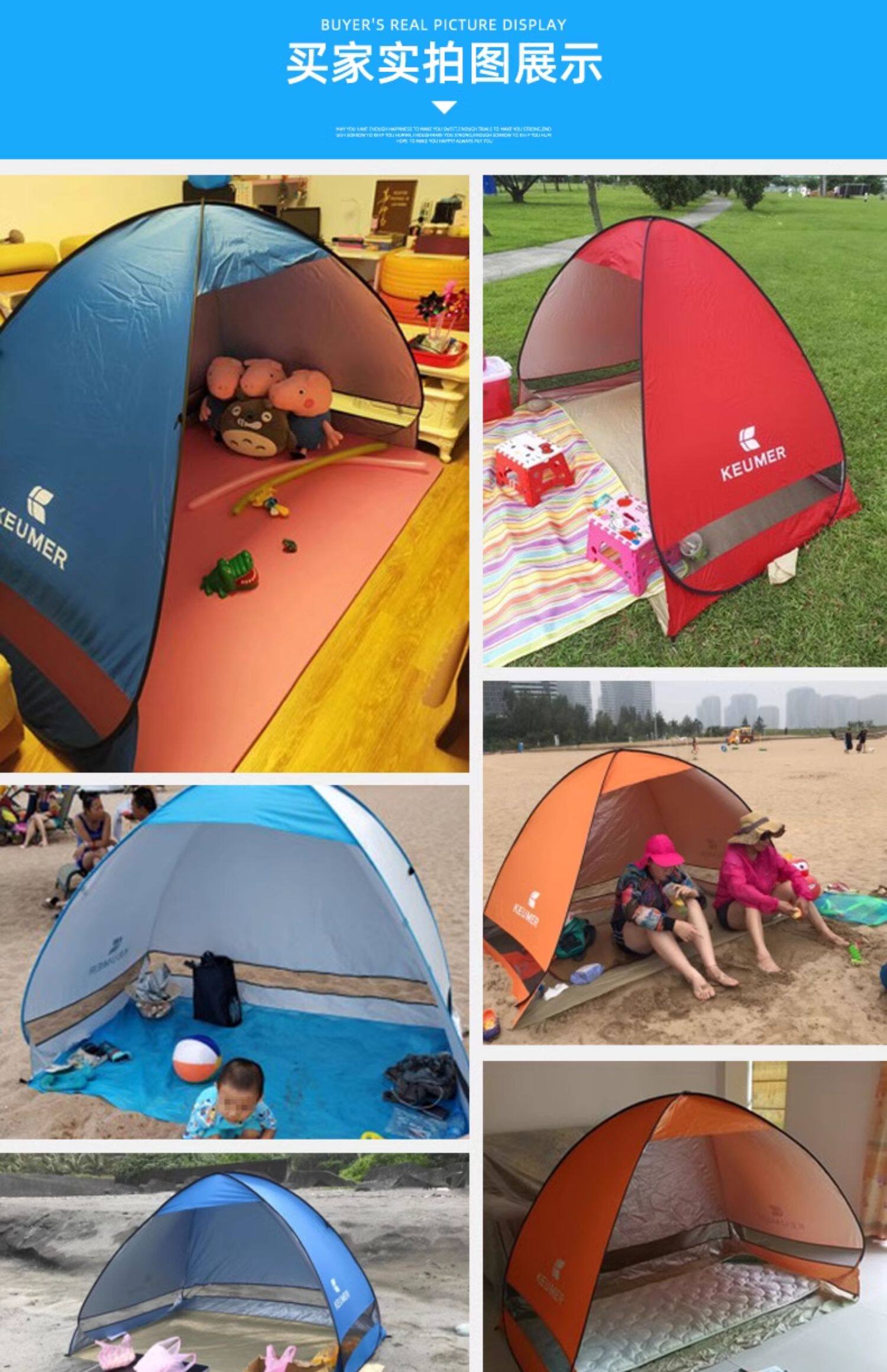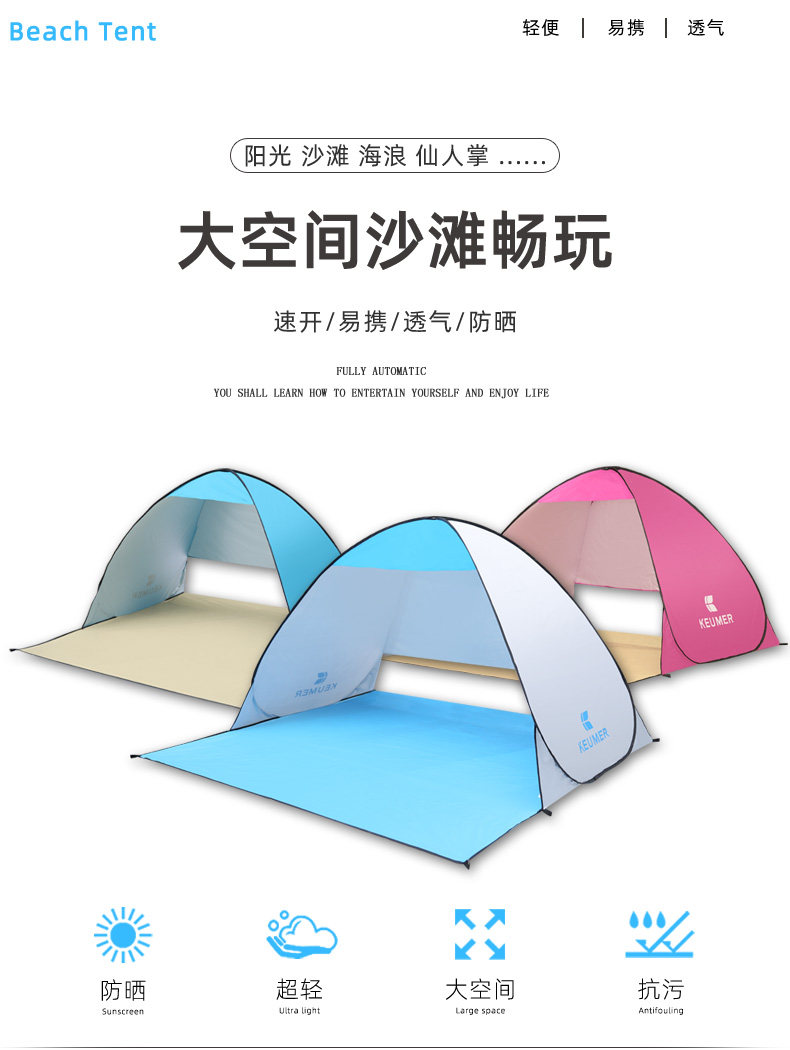 超輕免搭帳篷自動彈開速開沙灘戶外小遮陽棚單人海邊防曬簡易可攜式