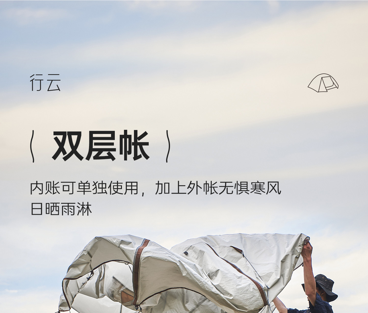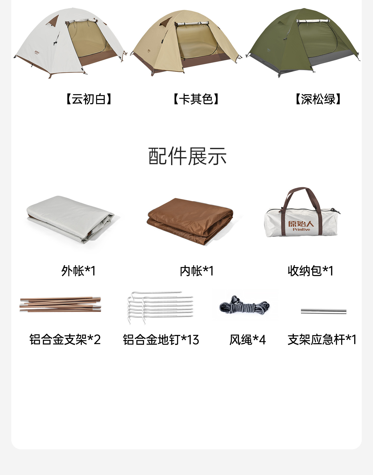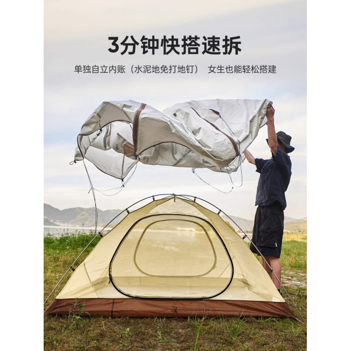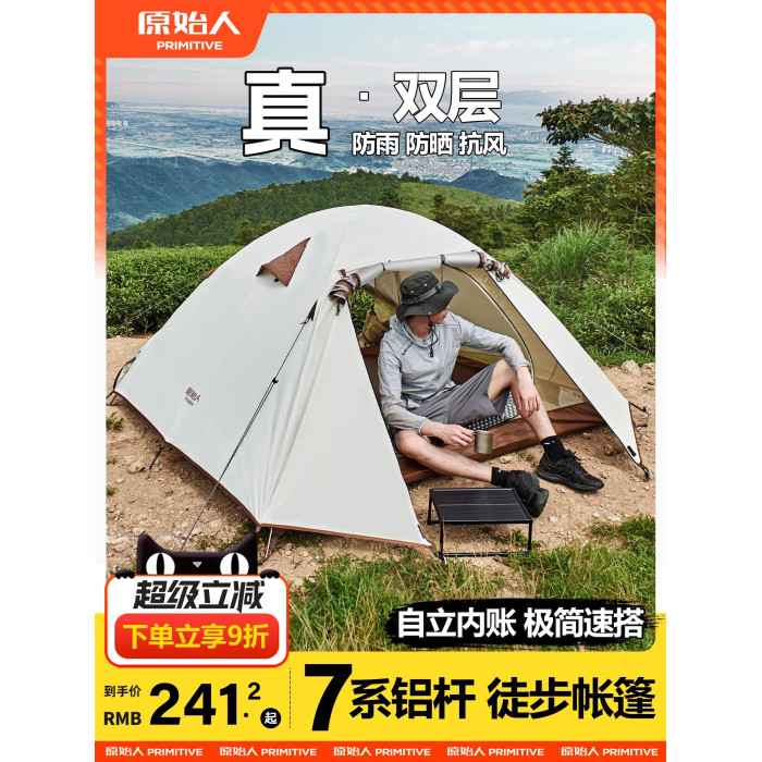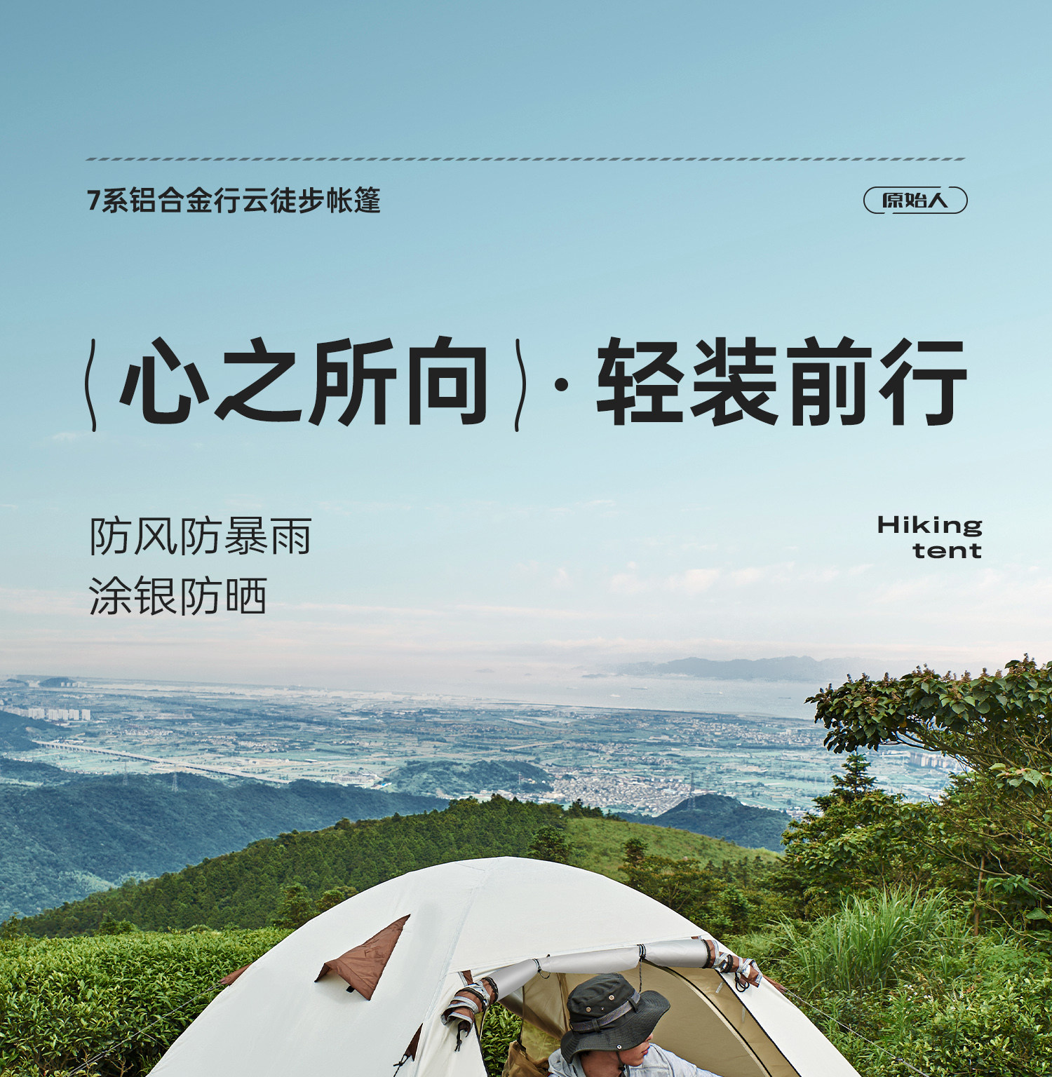 原始人帳篷戶外野營過夜防暴雨單人徒步輕量化可攜式防風鋁桿雙層