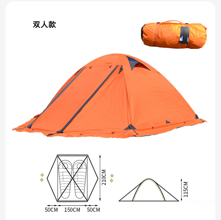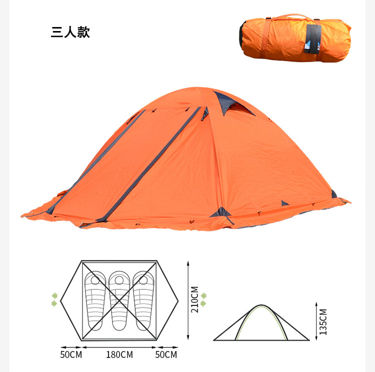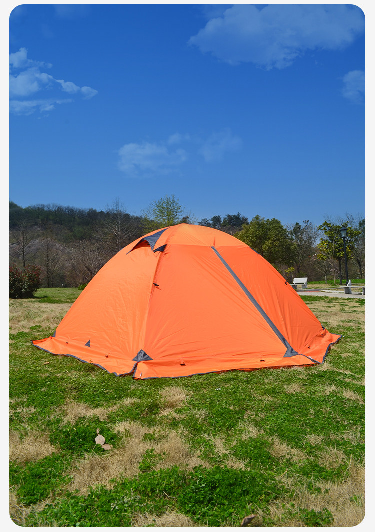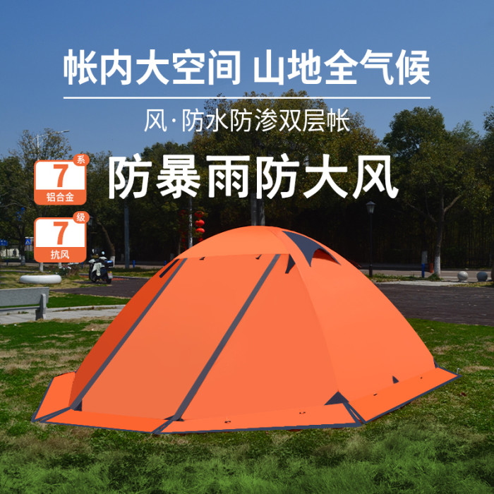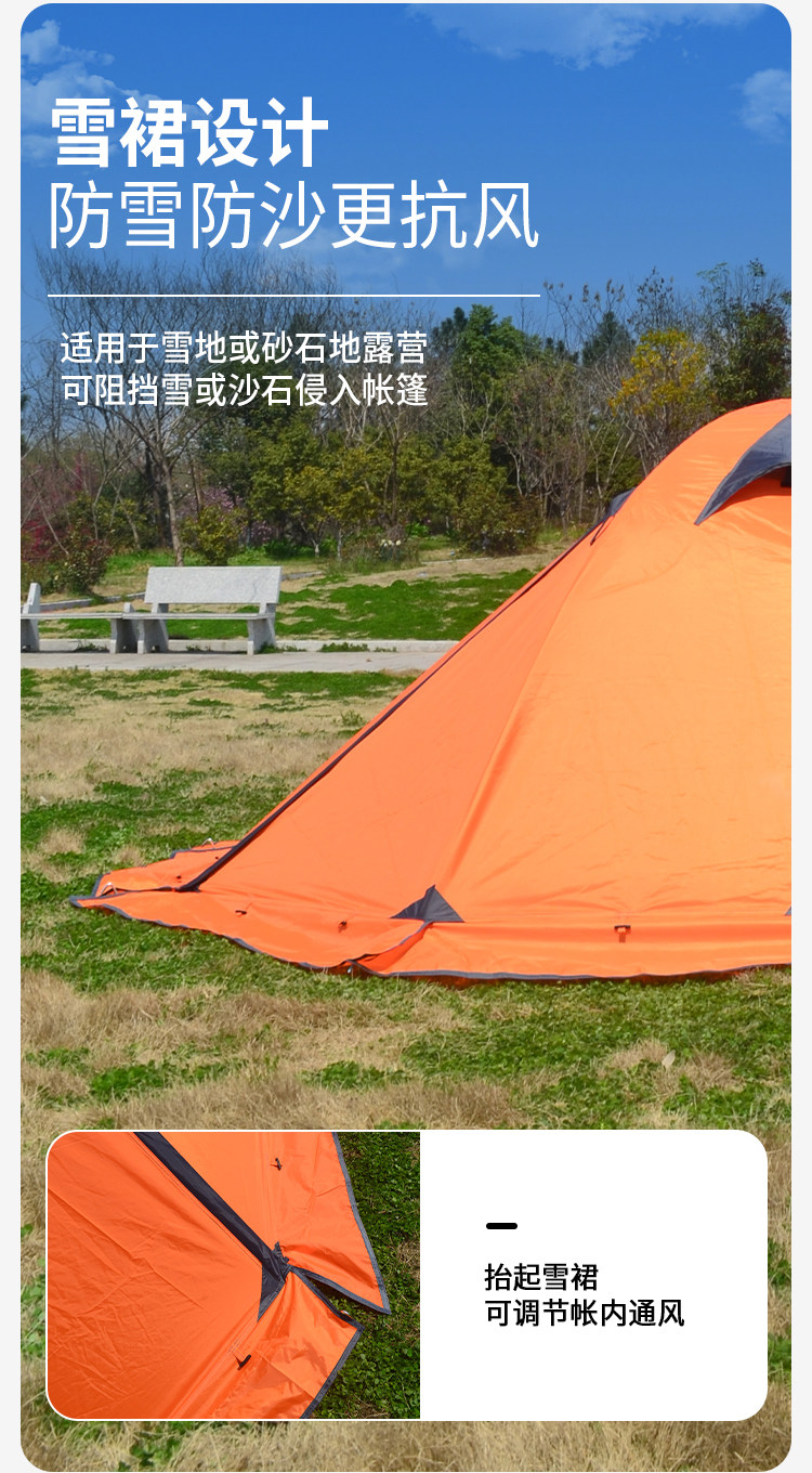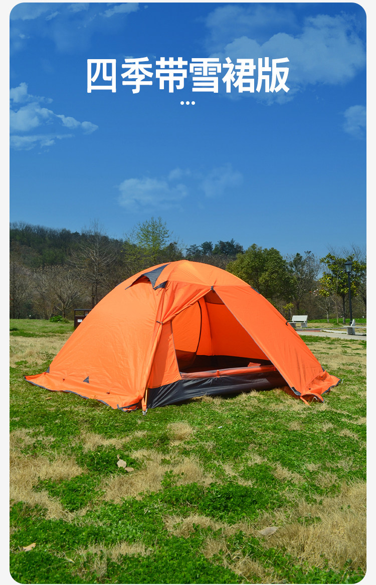 戶外防暴雨帳篷2人3人雙層鋁桿徒步登山露營野營防大風帶雪裙