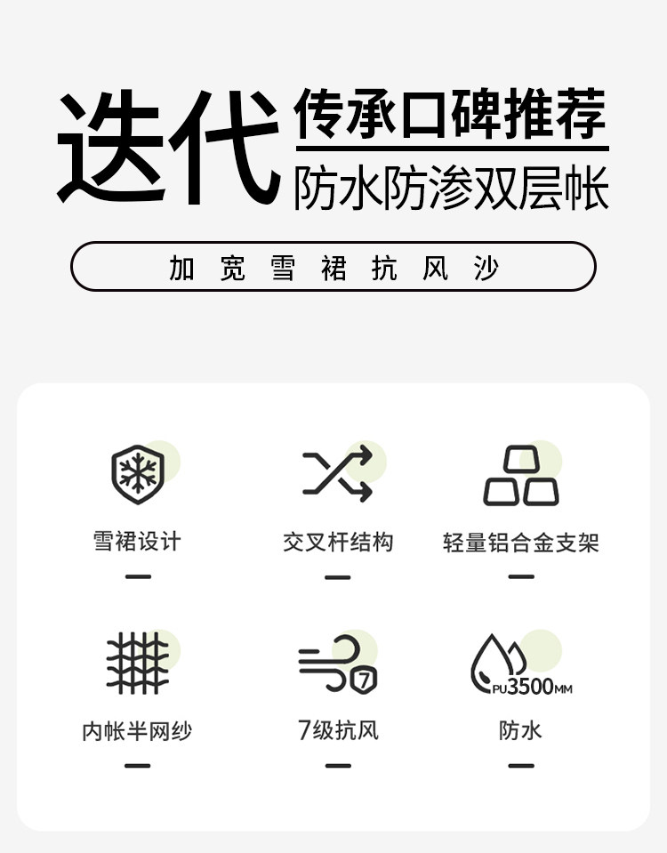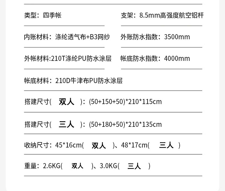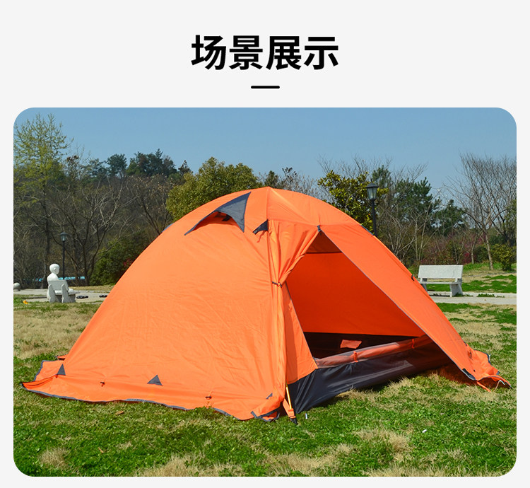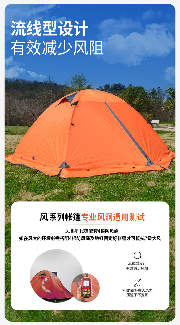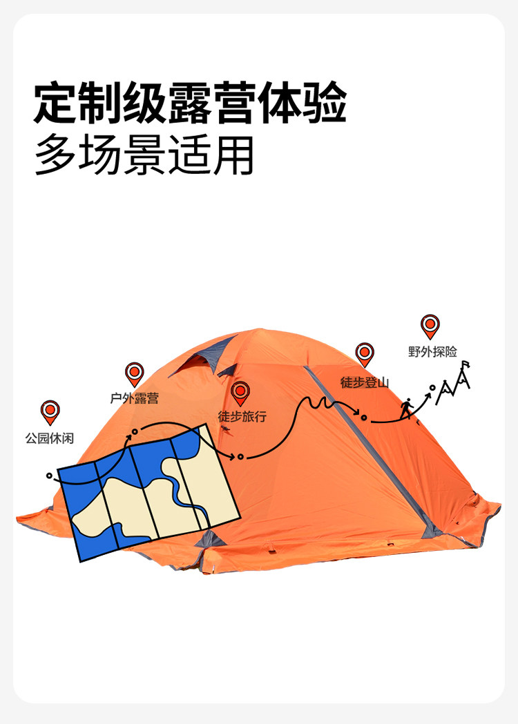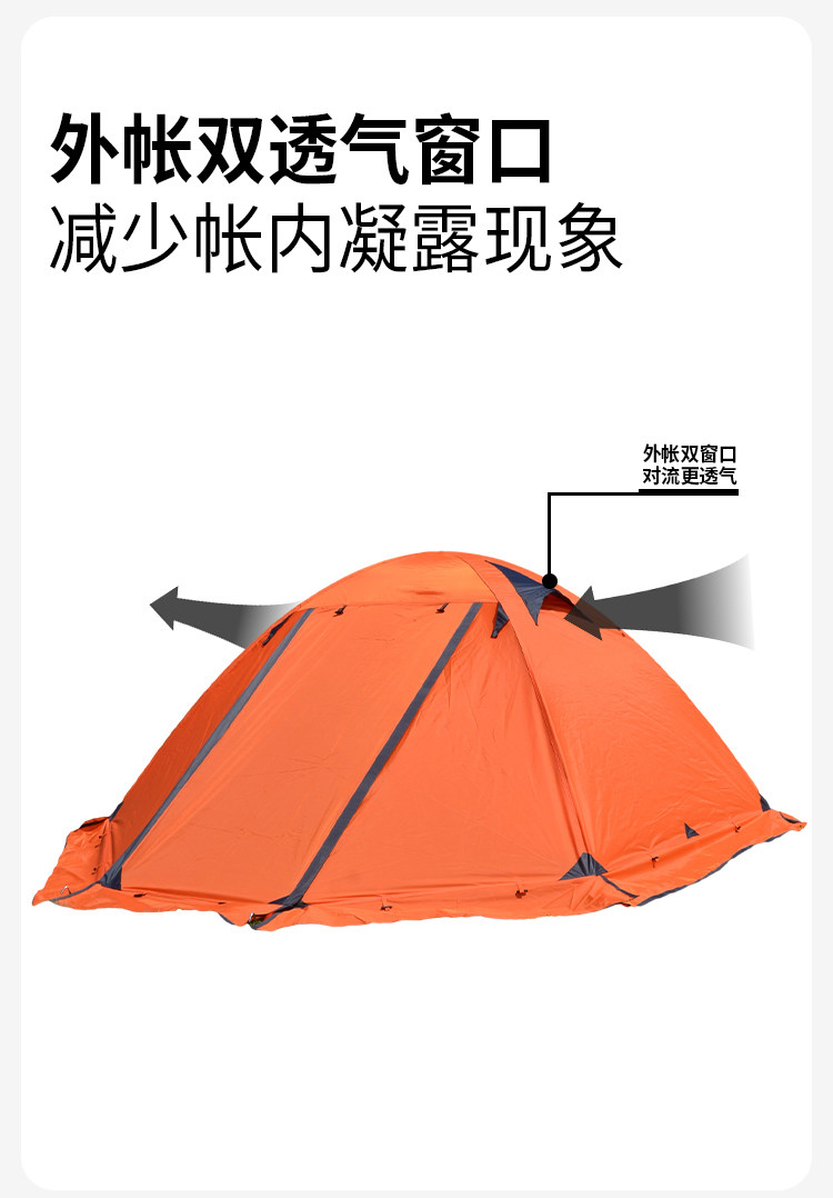 戶外防暴雨帳篷2人3人雙層鋁桿徒步登山露營野營防大風帶雪裙