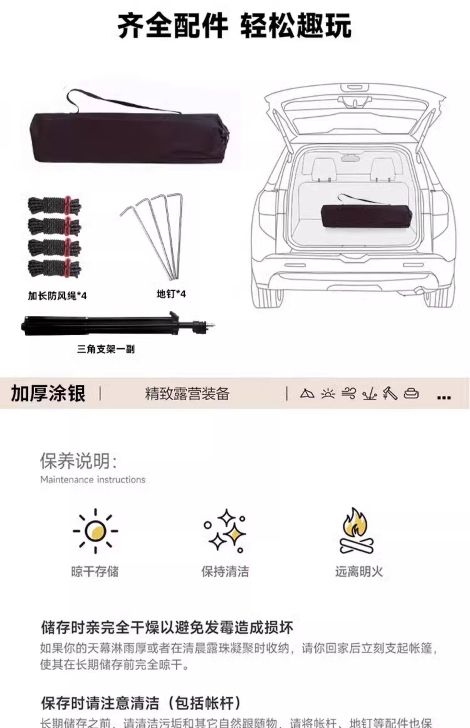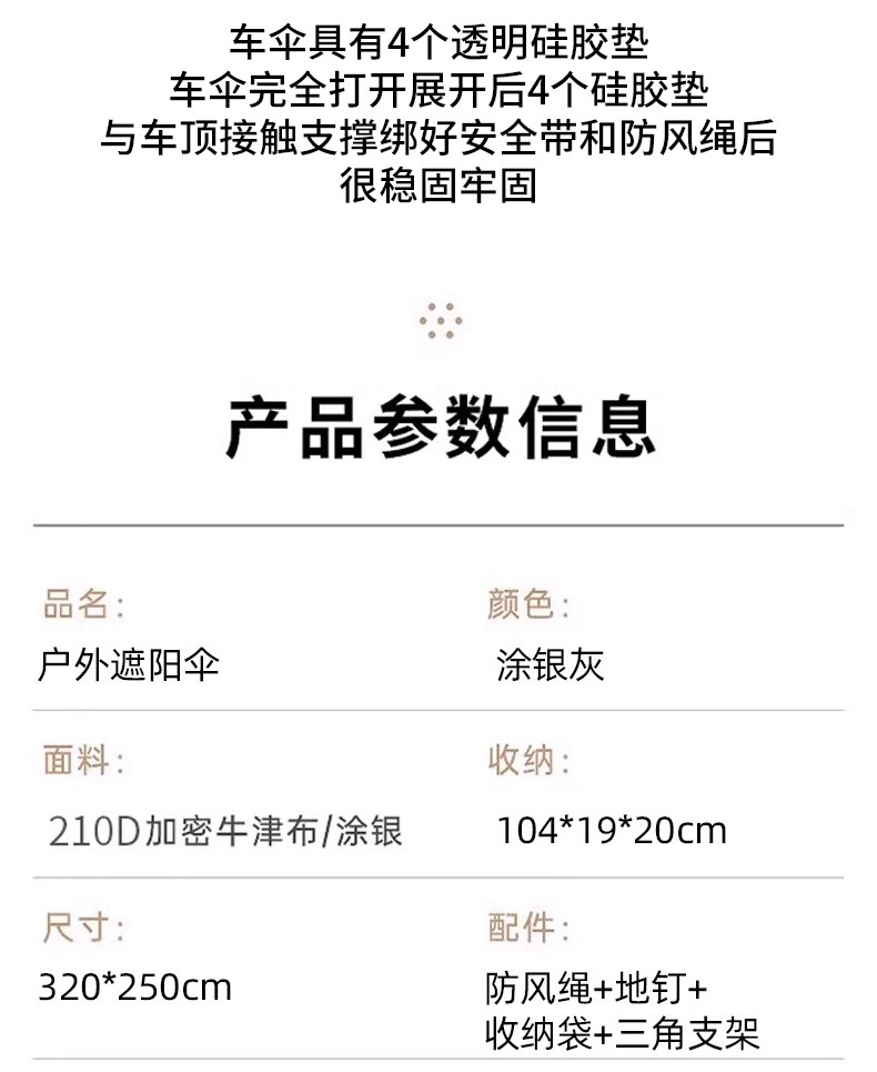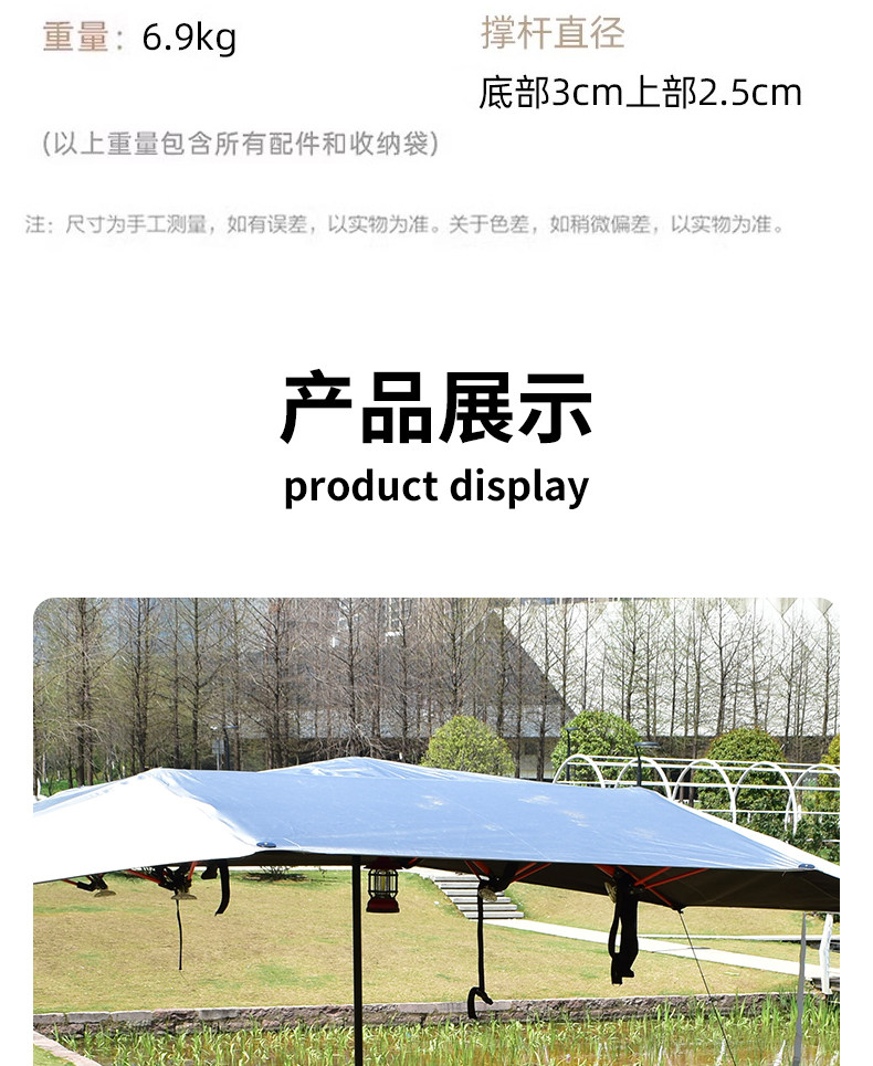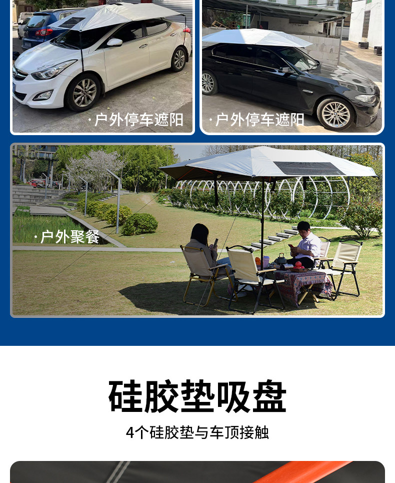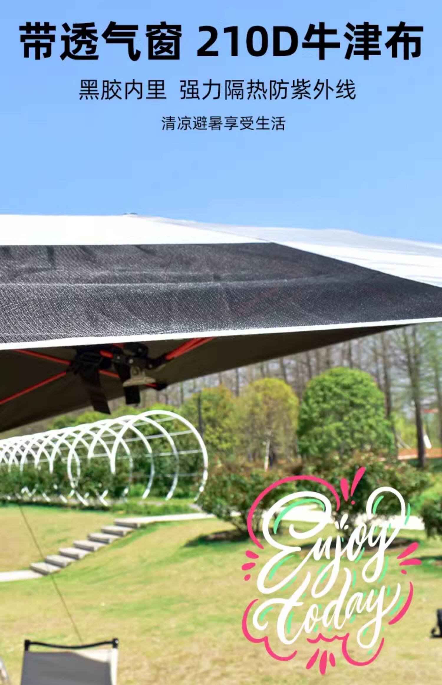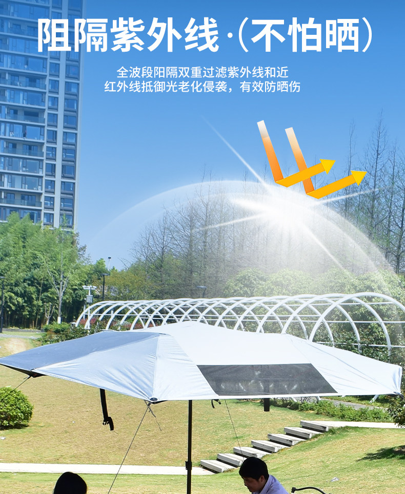 戶外露營黑膠天幕速開免搭建撐桿折曡庭院別墅遮陽傘車頂防曬帳篷