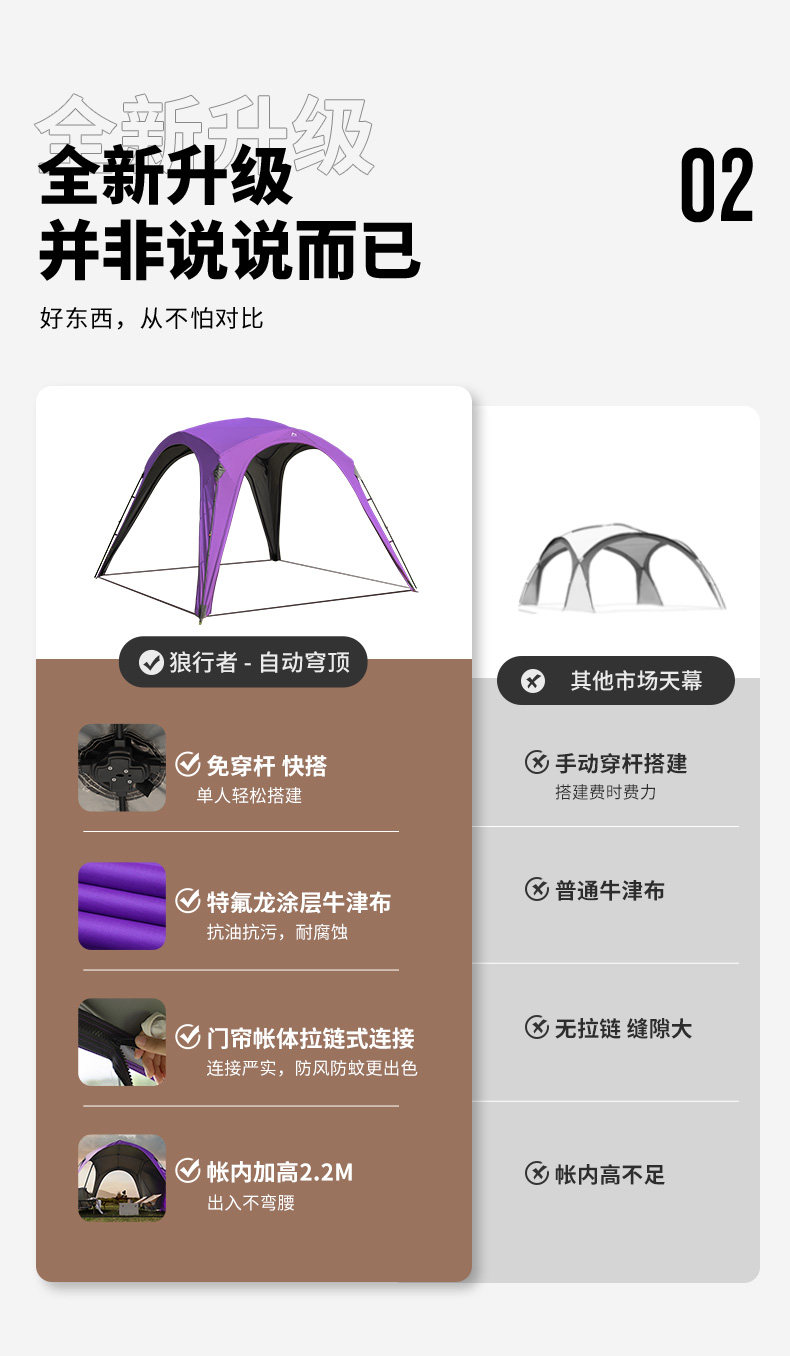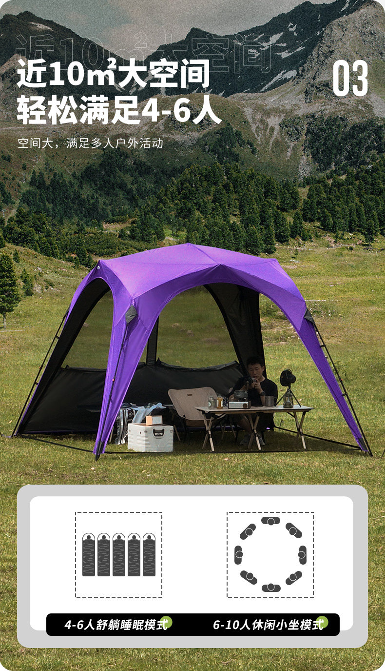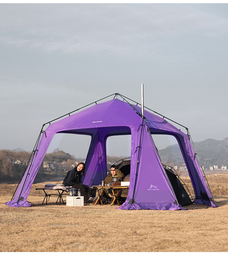 狼行者自動穹頂天幕速開帳篷戶外露營鈦黑膠遮陽棚野營防曬防雨
