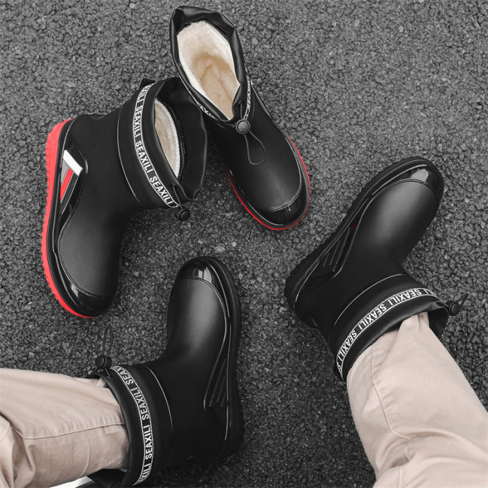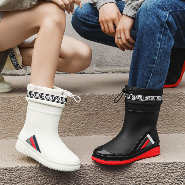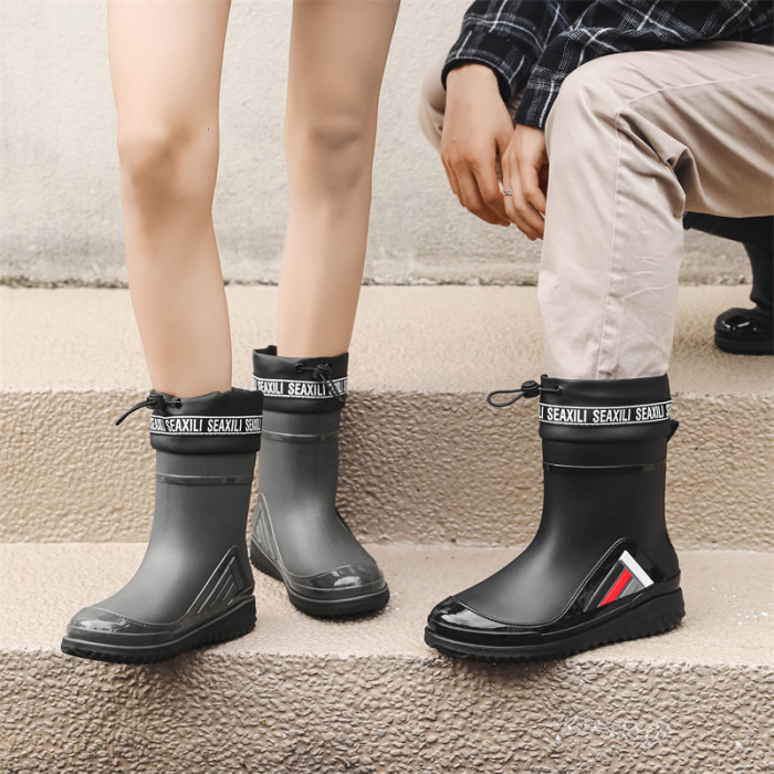 新款男女士中筒水鞋休閒加厚防滑束口保暖雨鞋釣魚廚房洗車男膠鞋