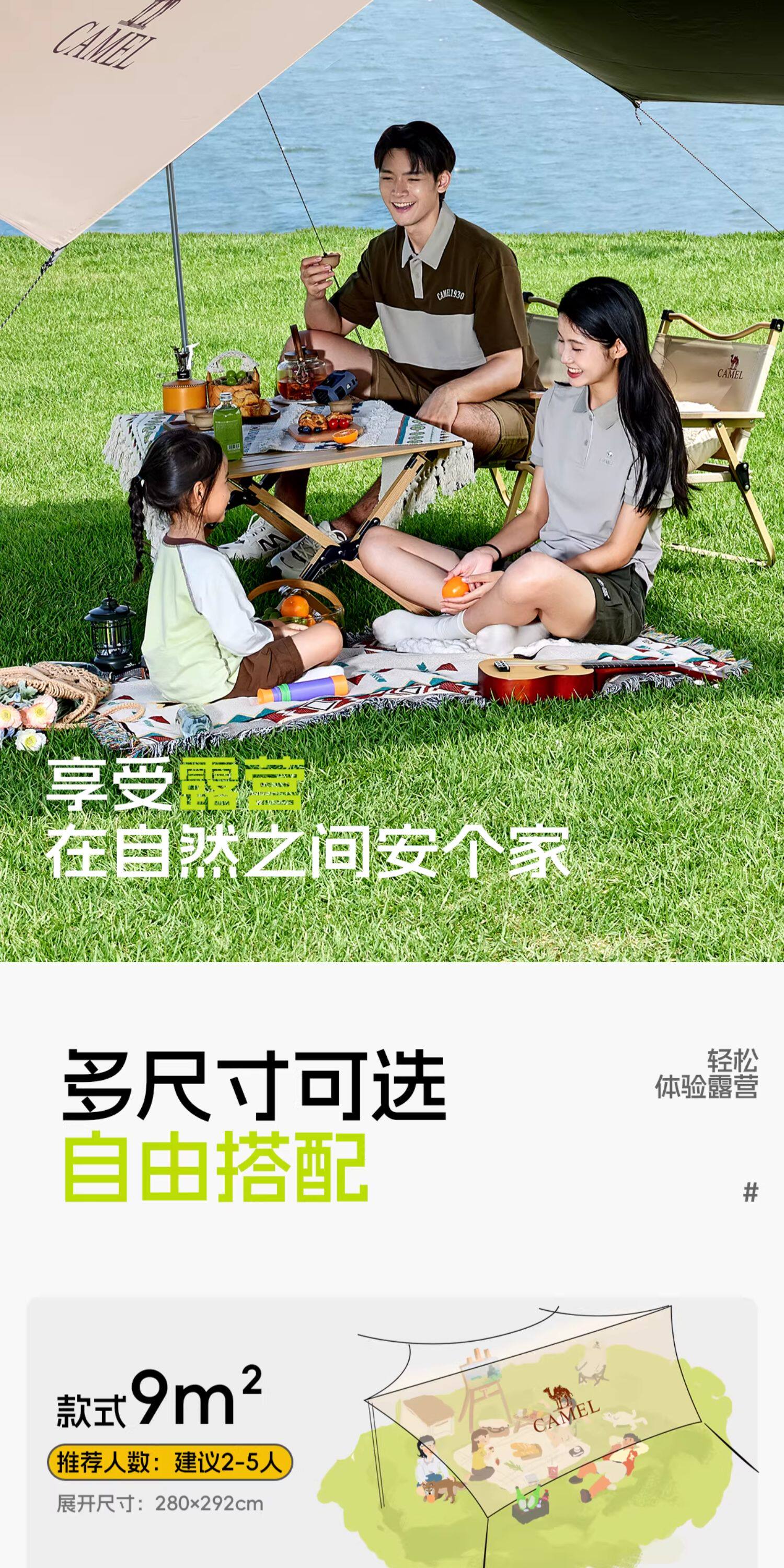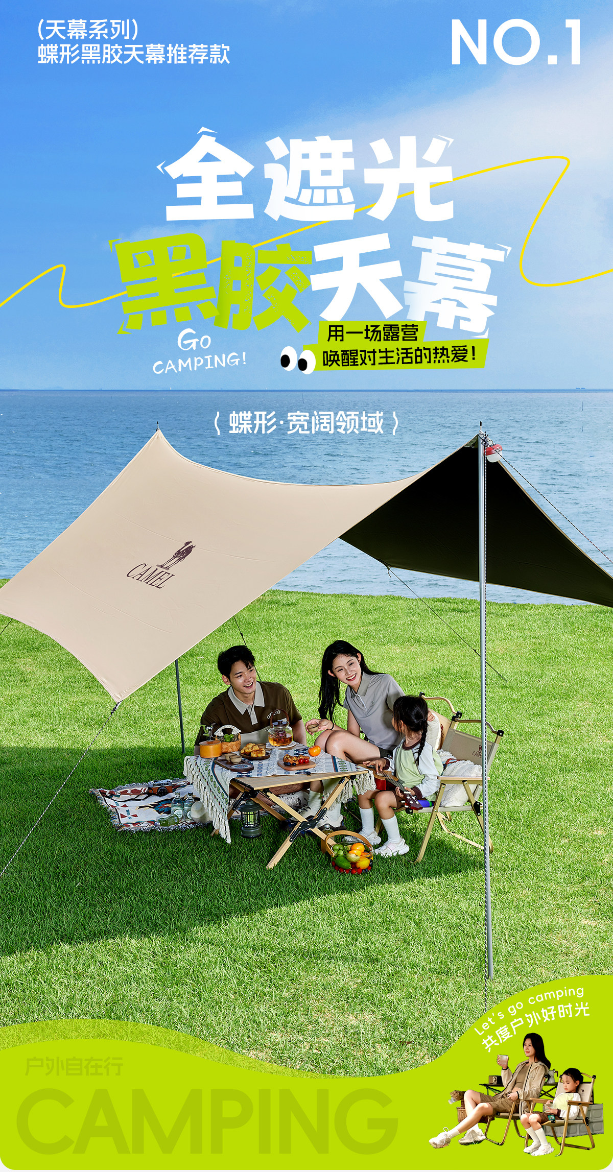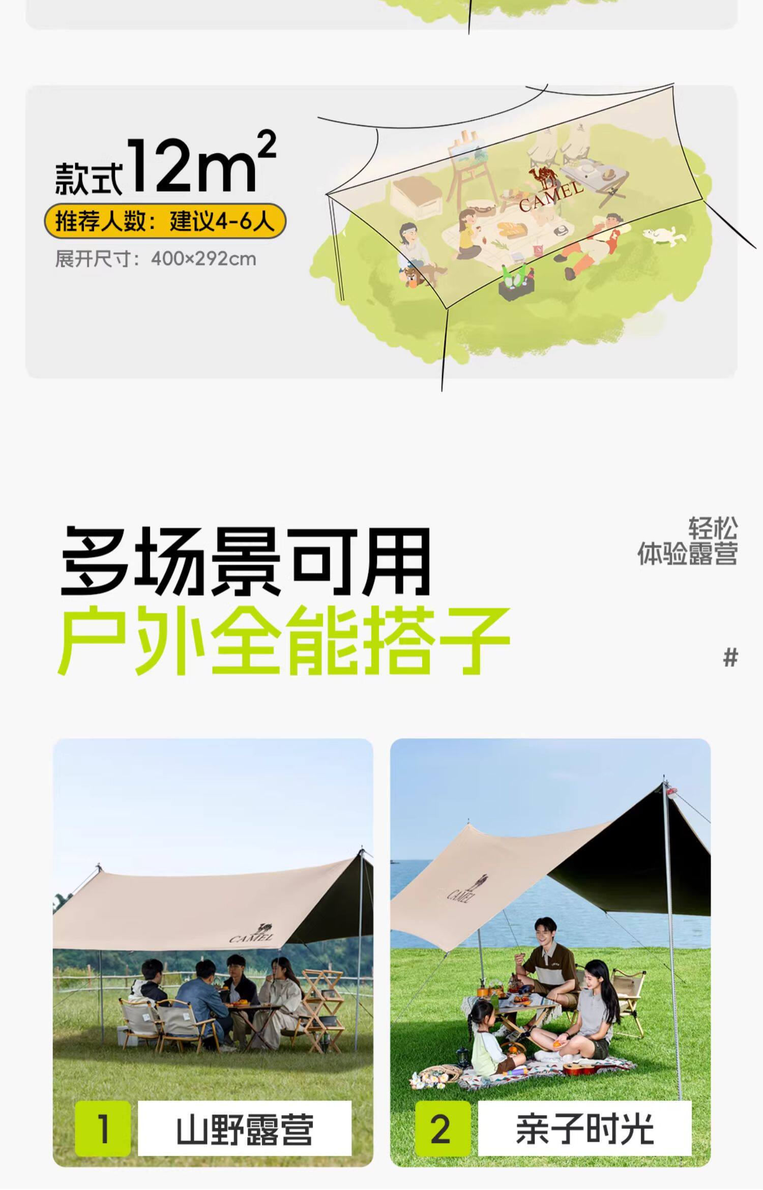 駱駝黑膠天幕帳篷露營遮擋布簡易懶人速搭沙灘遮陽棚2026新款