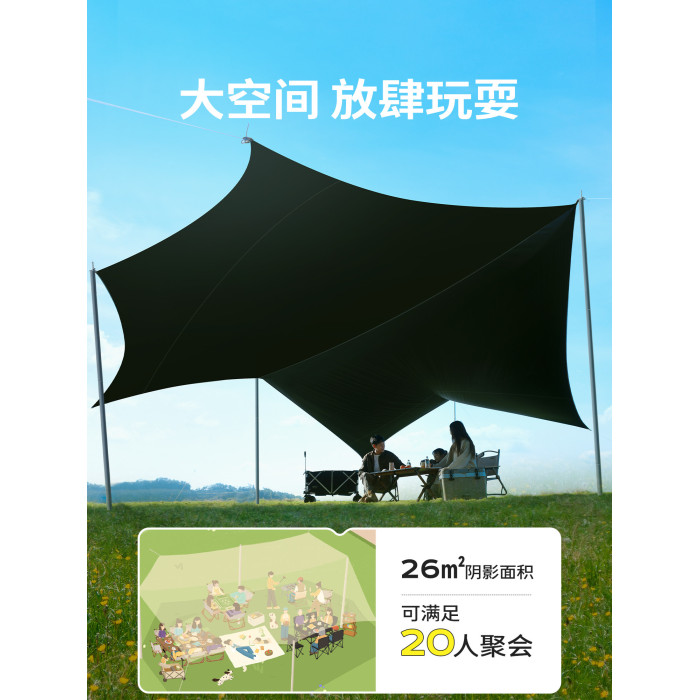 原始人四桿黑膠天幕帳篷戶外大號露營裝備全套野營野餐防曬遮陽棚