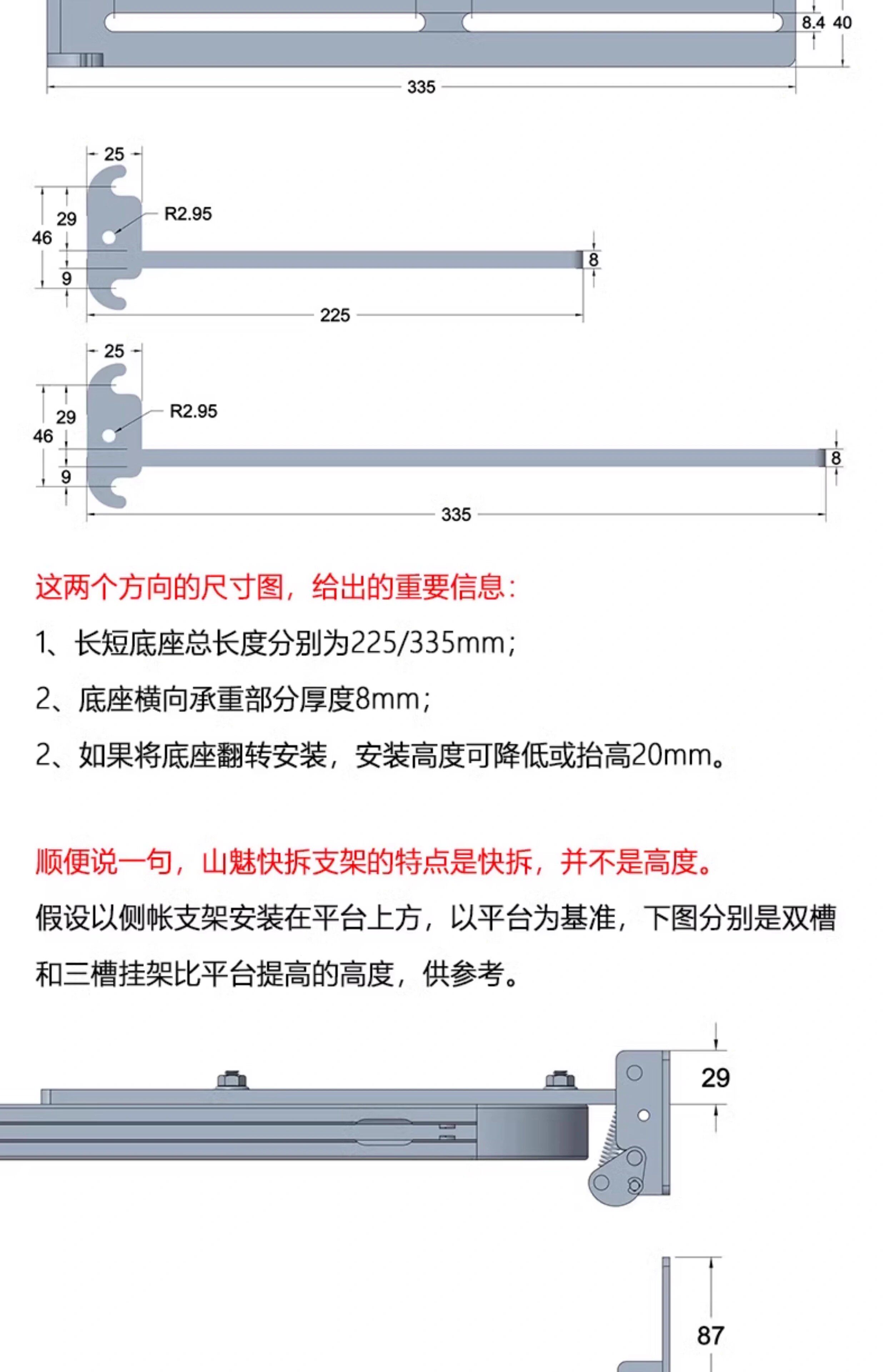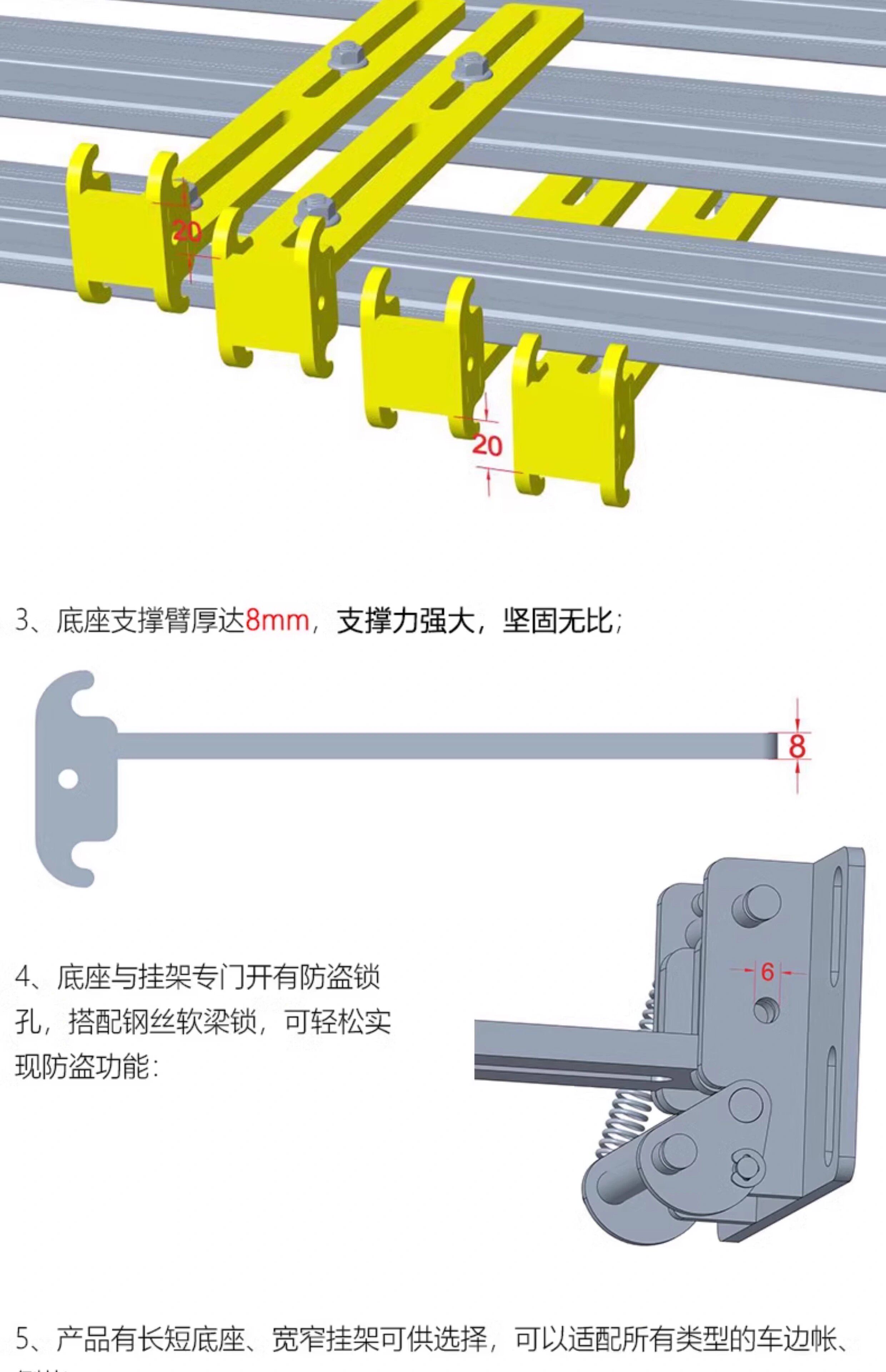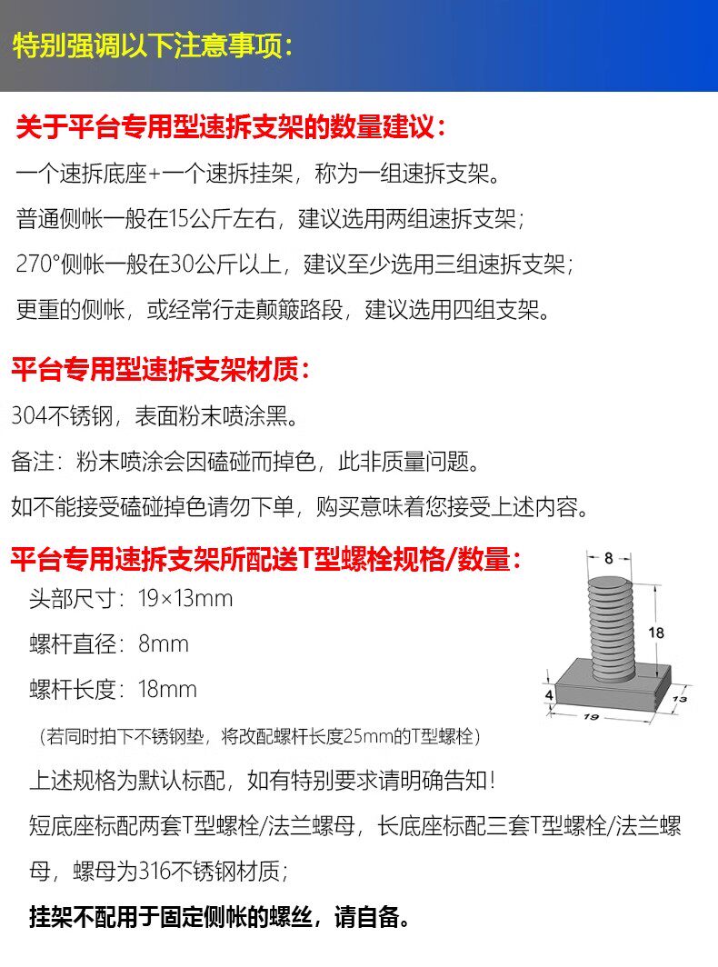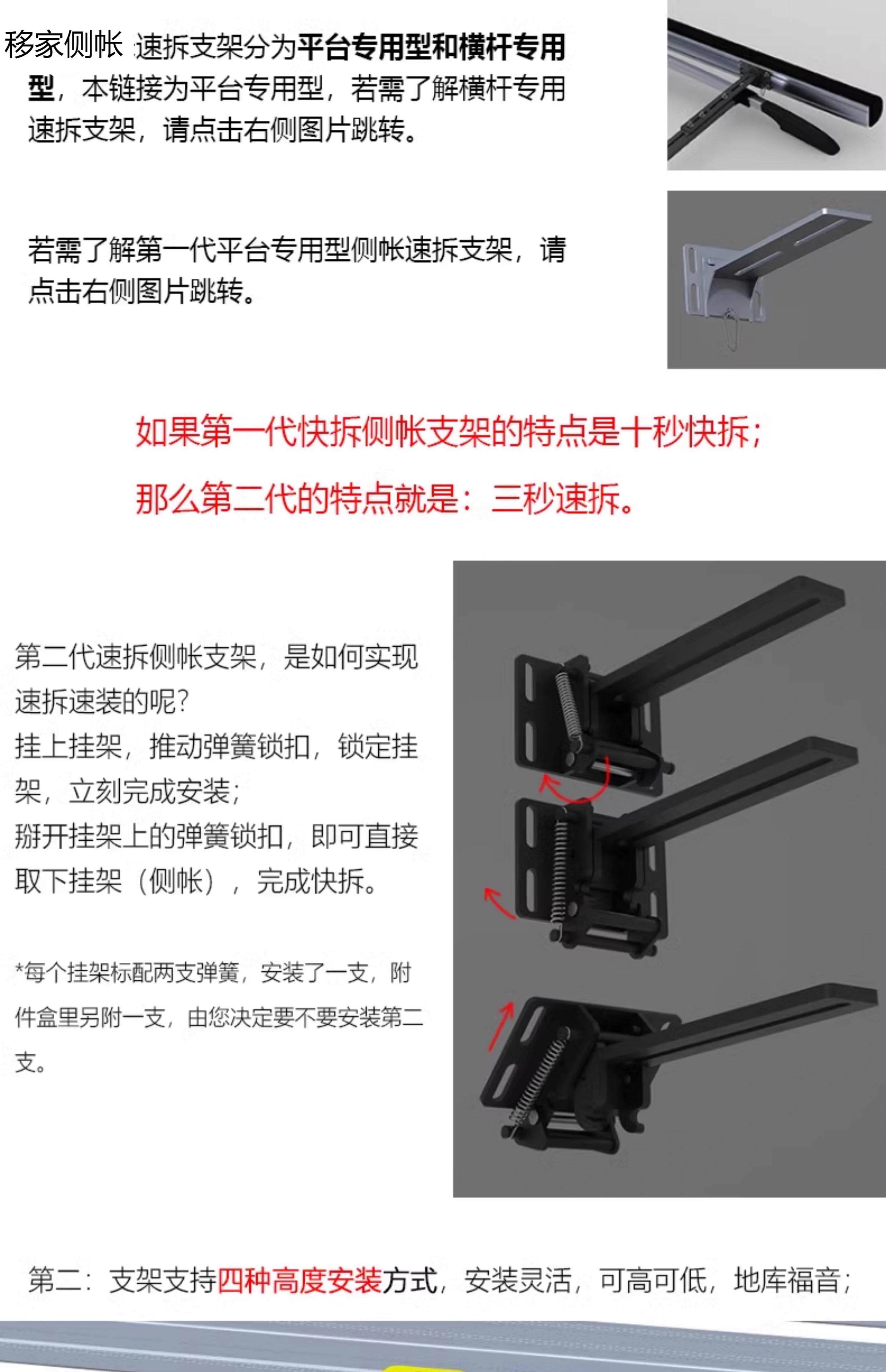 YEAGA移家第二代平台橫杠專用側帳快拆支架通用側邊帳車邊帳支架