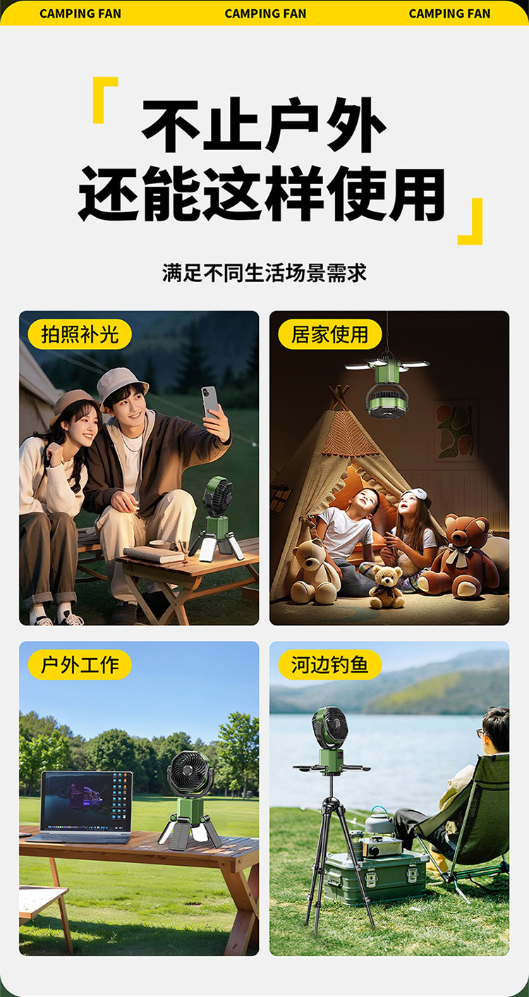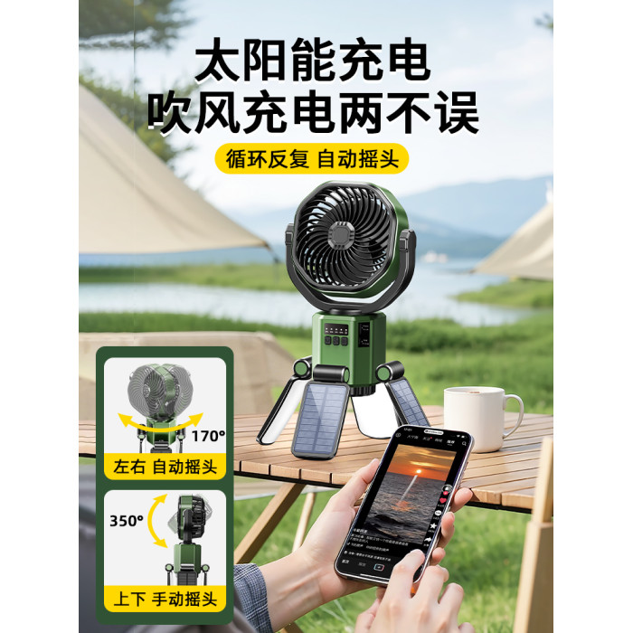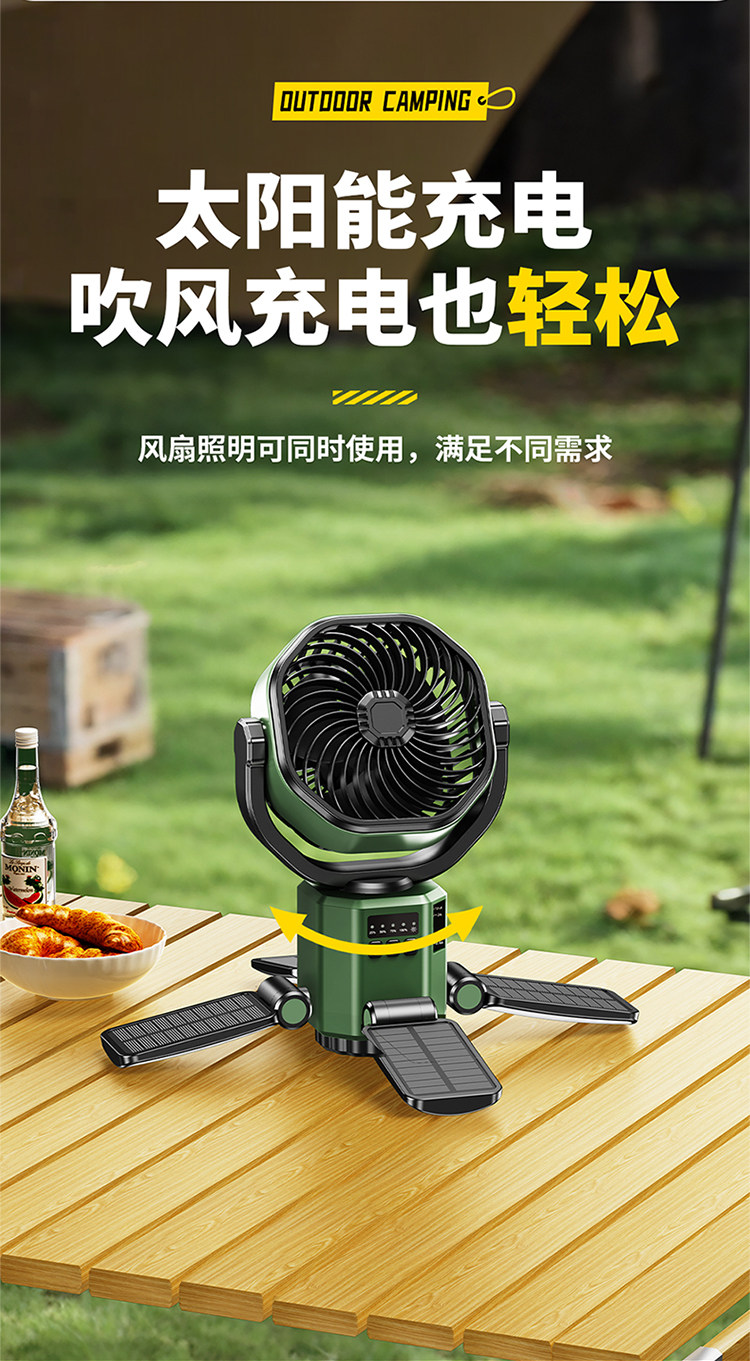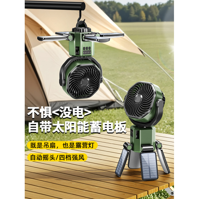 太陽能風扇戶外露營照明燈充電野營吊帳篷專用大風力超長續航新款