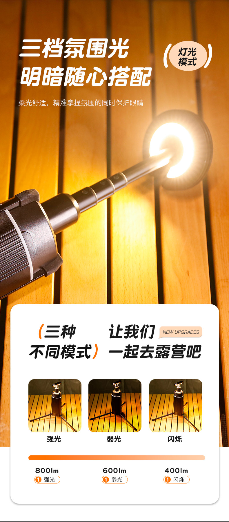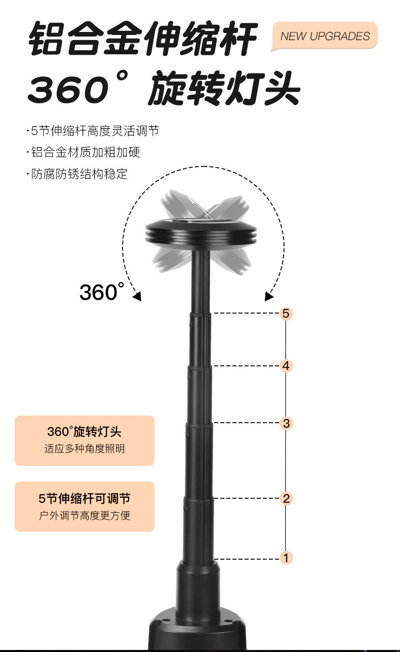 戶外伸縮燈露營燈營地燈三角架燈可攜式伸縮燈全地形長續航高亮度