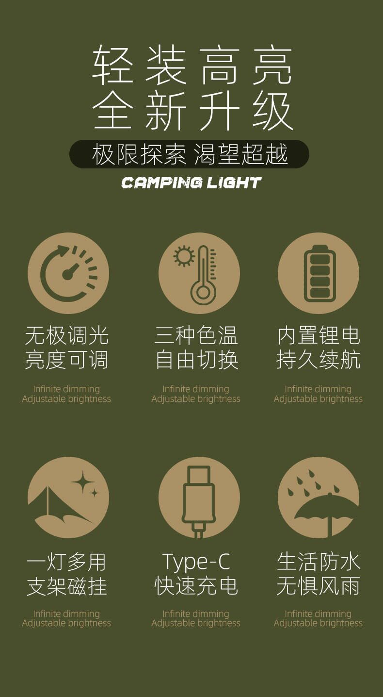 新露營燈長續航帳篷營地家用應急照明磁吸電顯掛釦可攜式工作燈