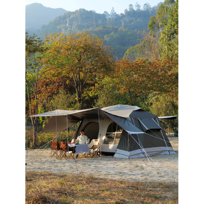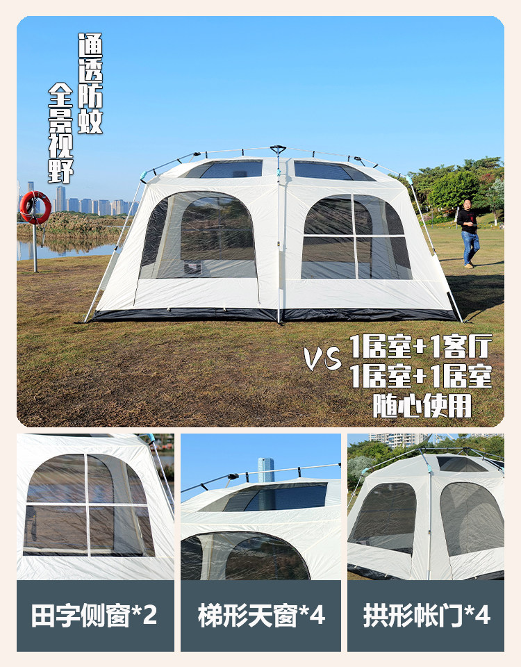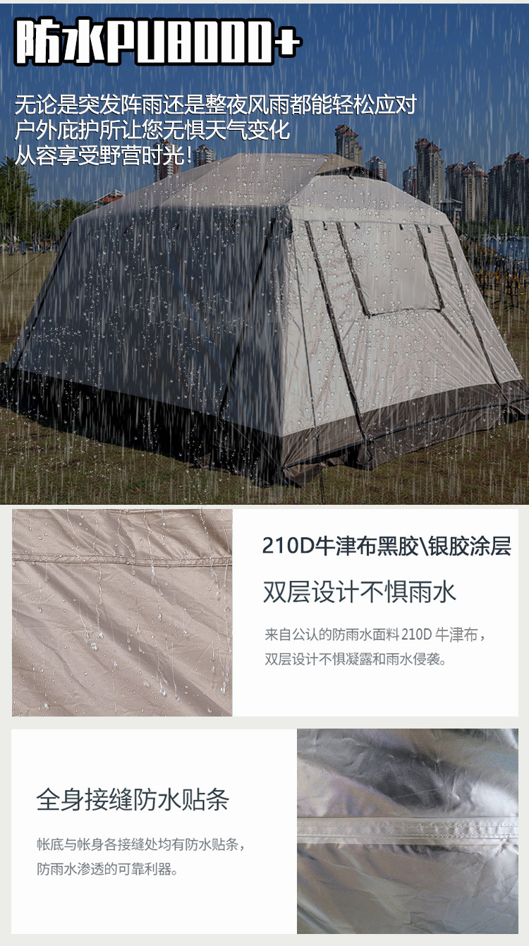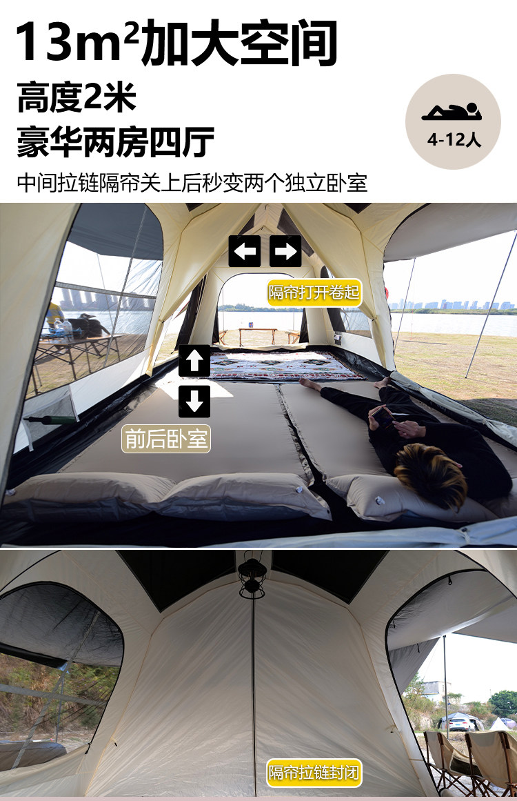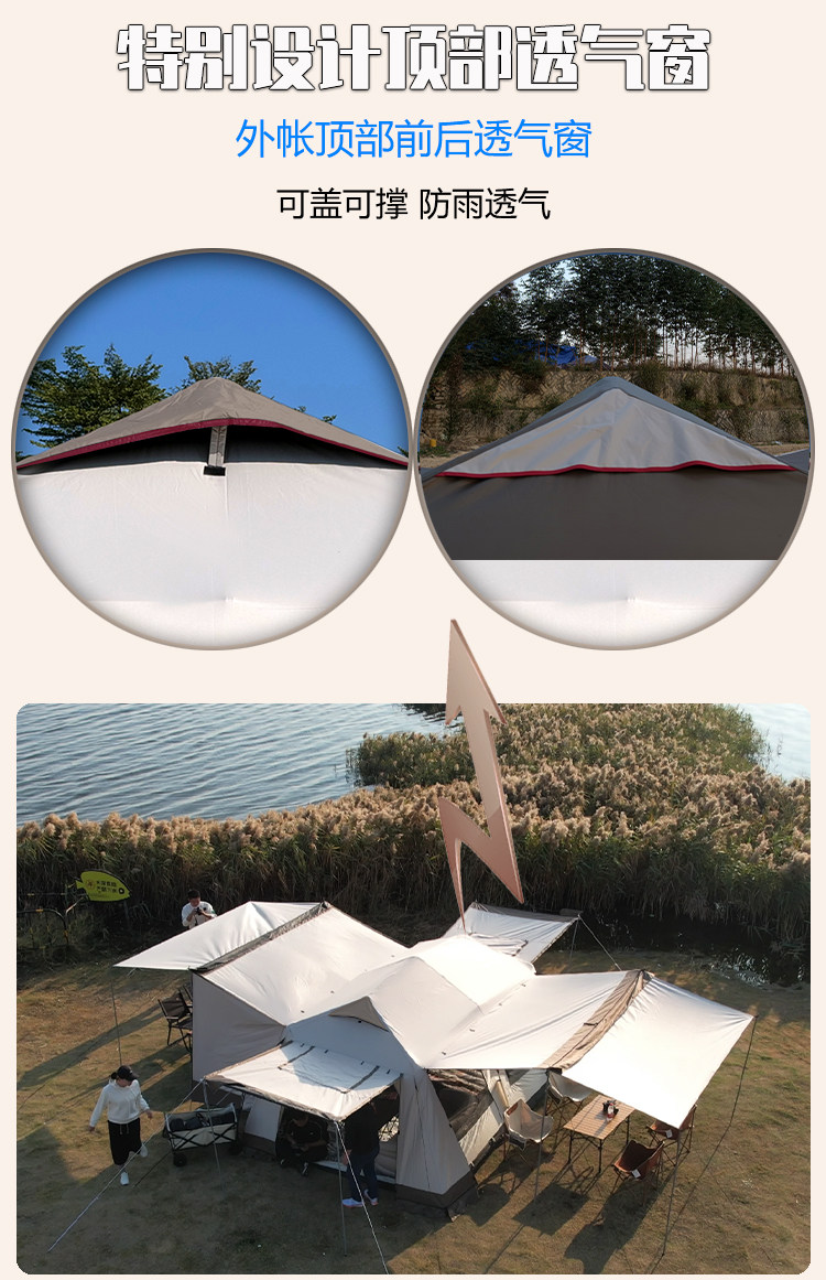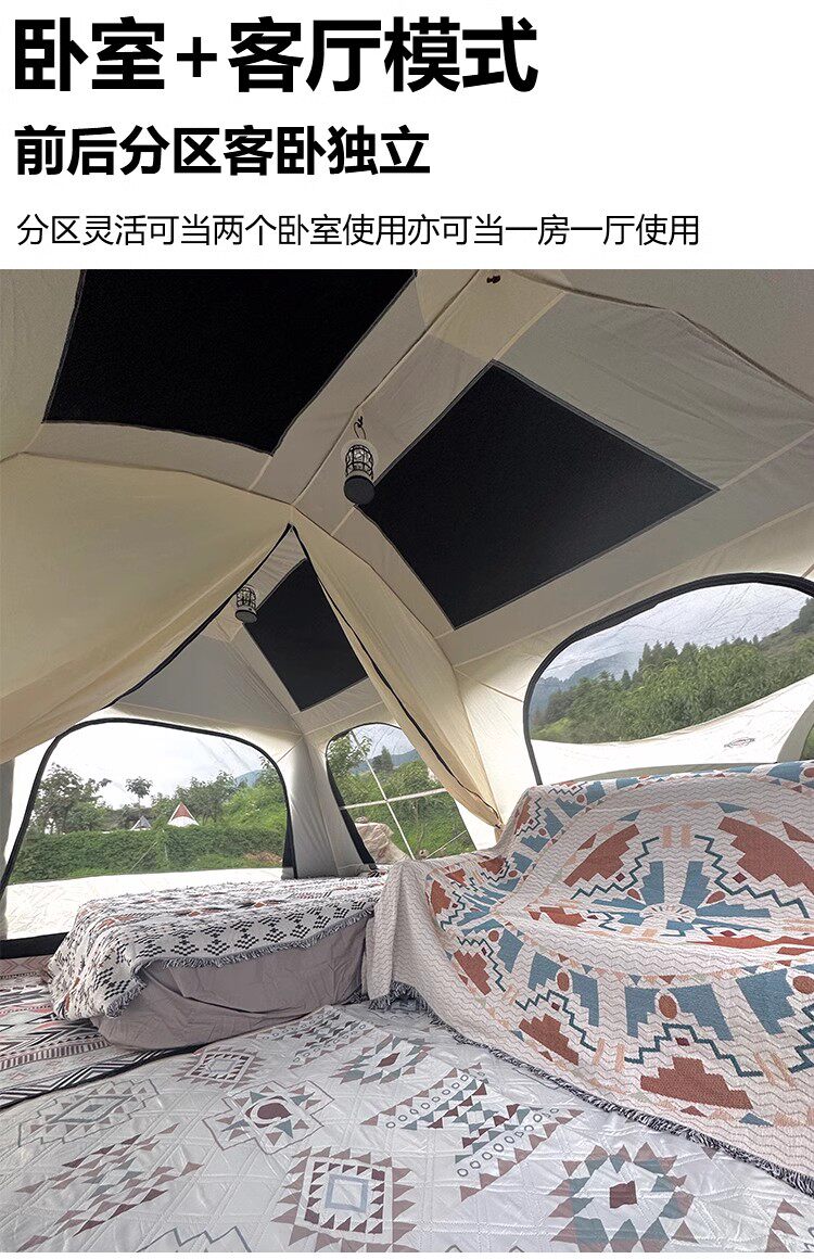 屋脊帳篷天幕二合一戶外全自動兩室一廳雙層野外露營鈦黑膠防雨