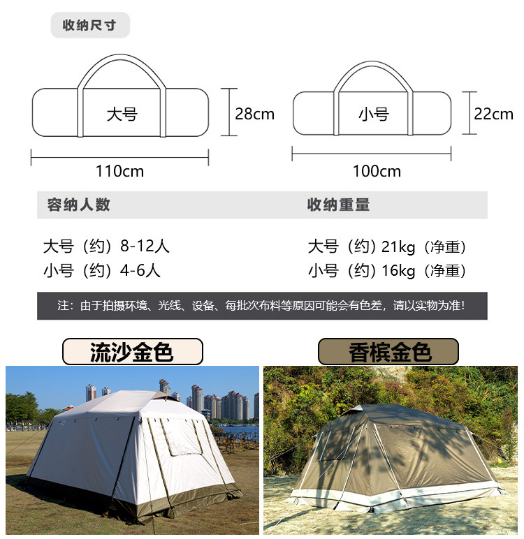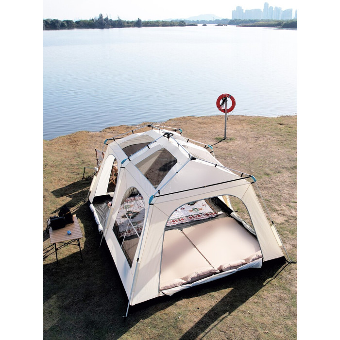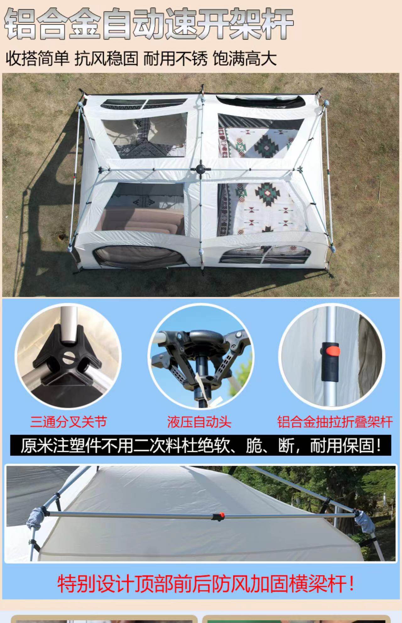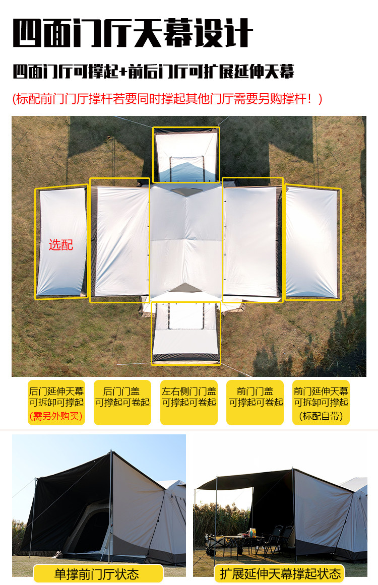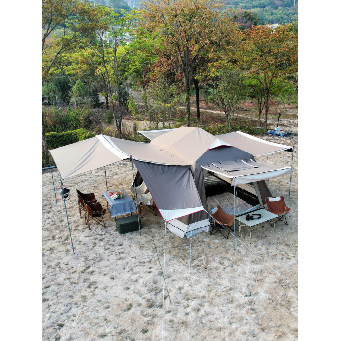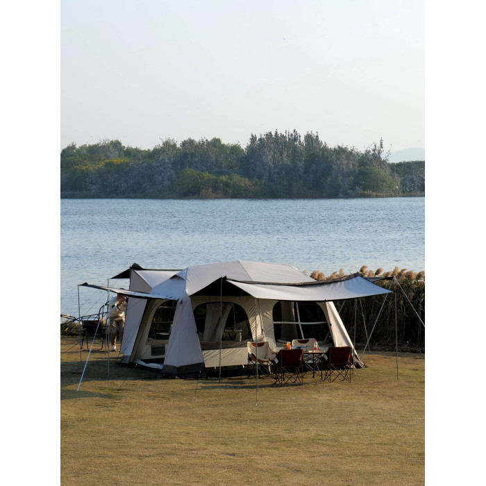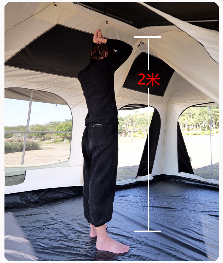 屋脊帳篷天幕二合一戶外全自動兩室一廳雙層野外露營鈦黑膠防雨
