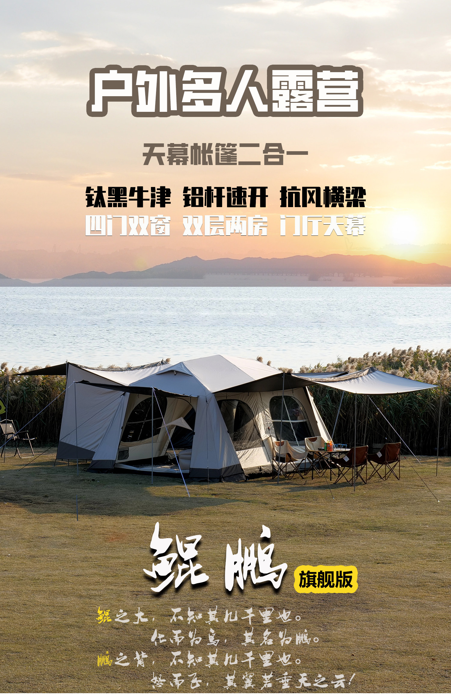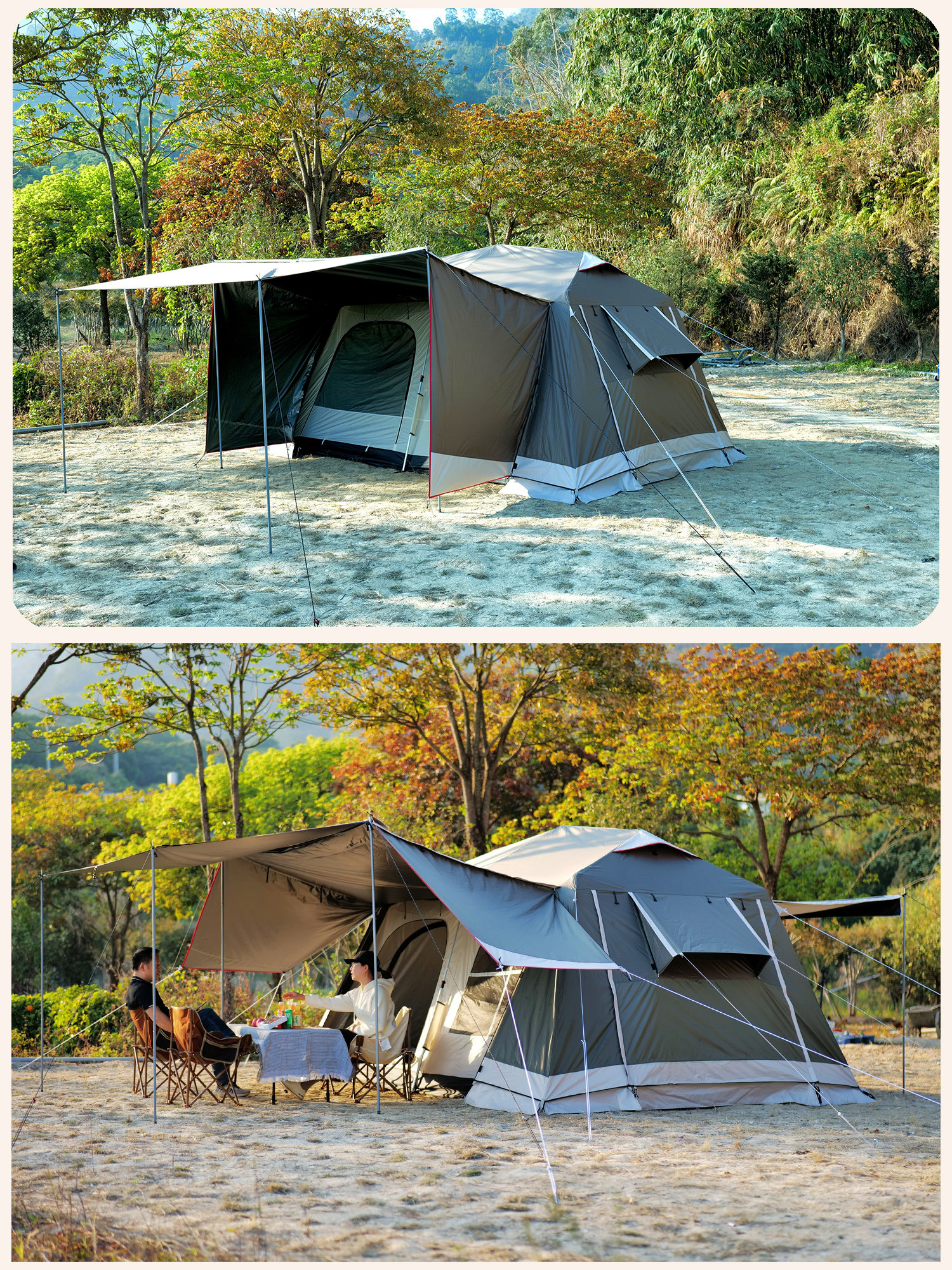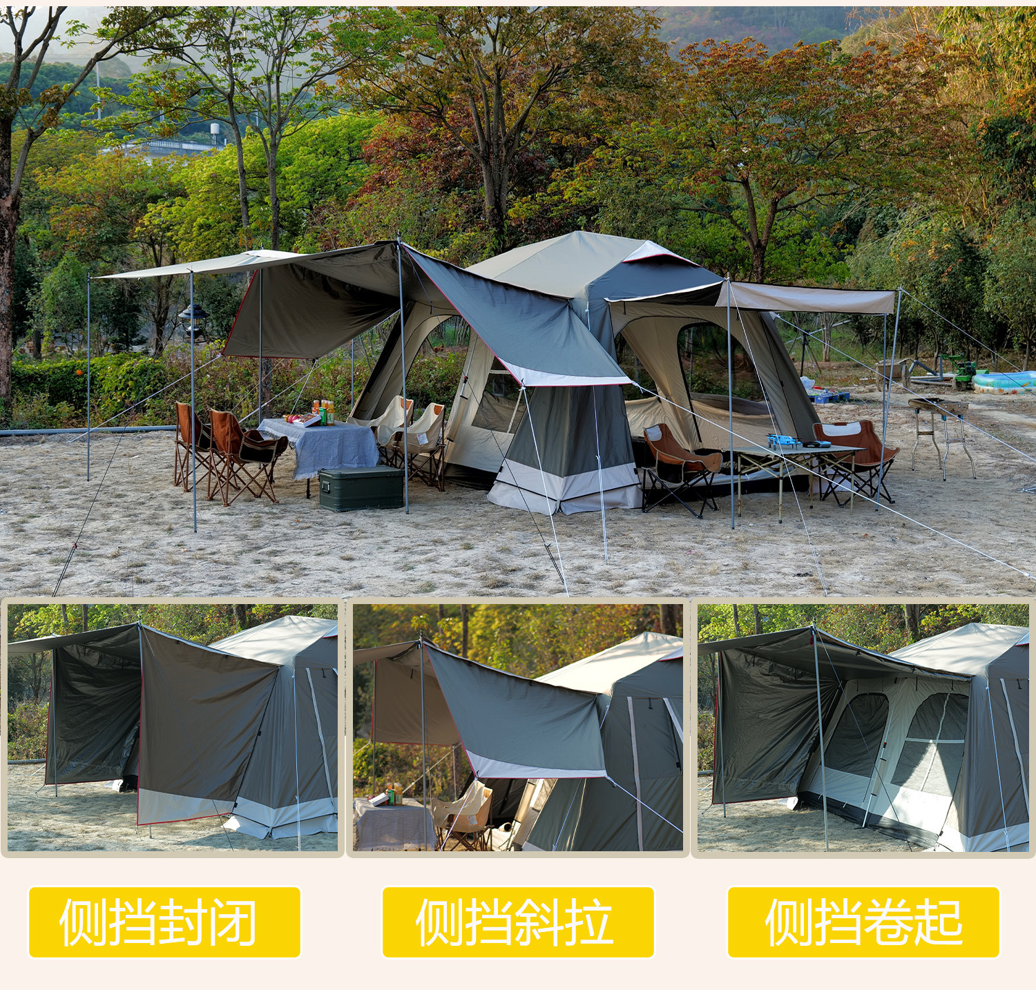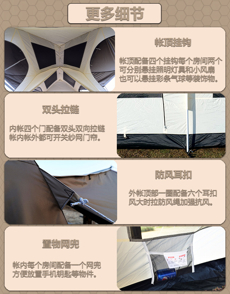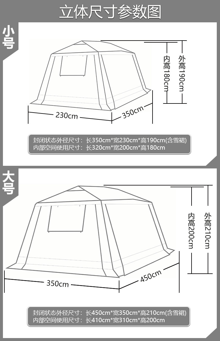 屋脊帳篷天幕二合一戶外全自動兩室一廳雙層野外露營鈦黑膠防雨