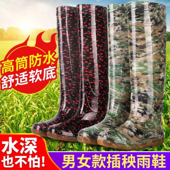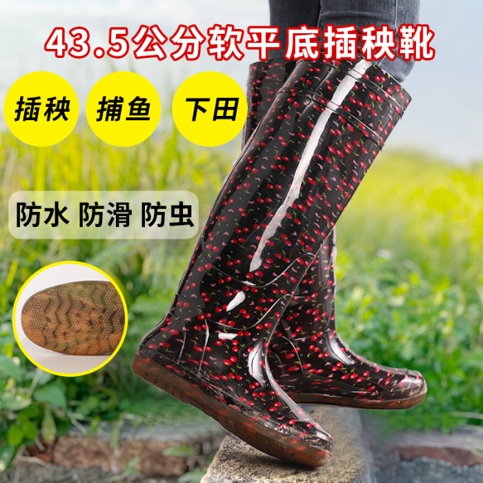 閏力特高筒插秧鞋下田平底雨鞋女軟底過膝防水靴農田捕魚涉水鞋男