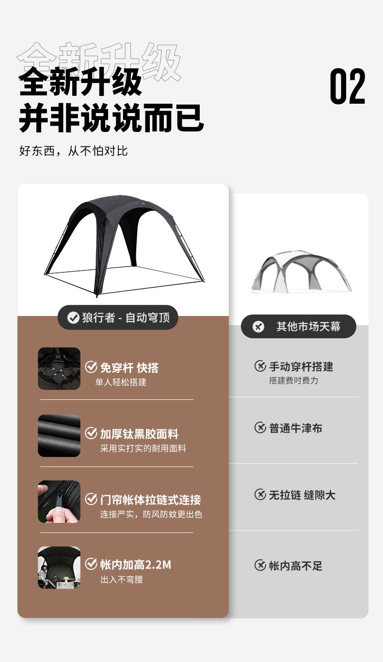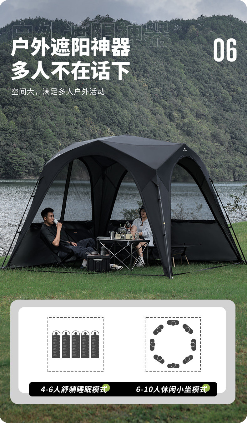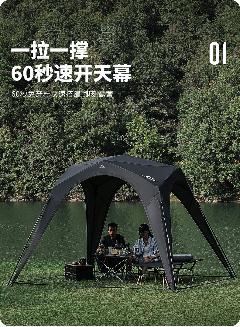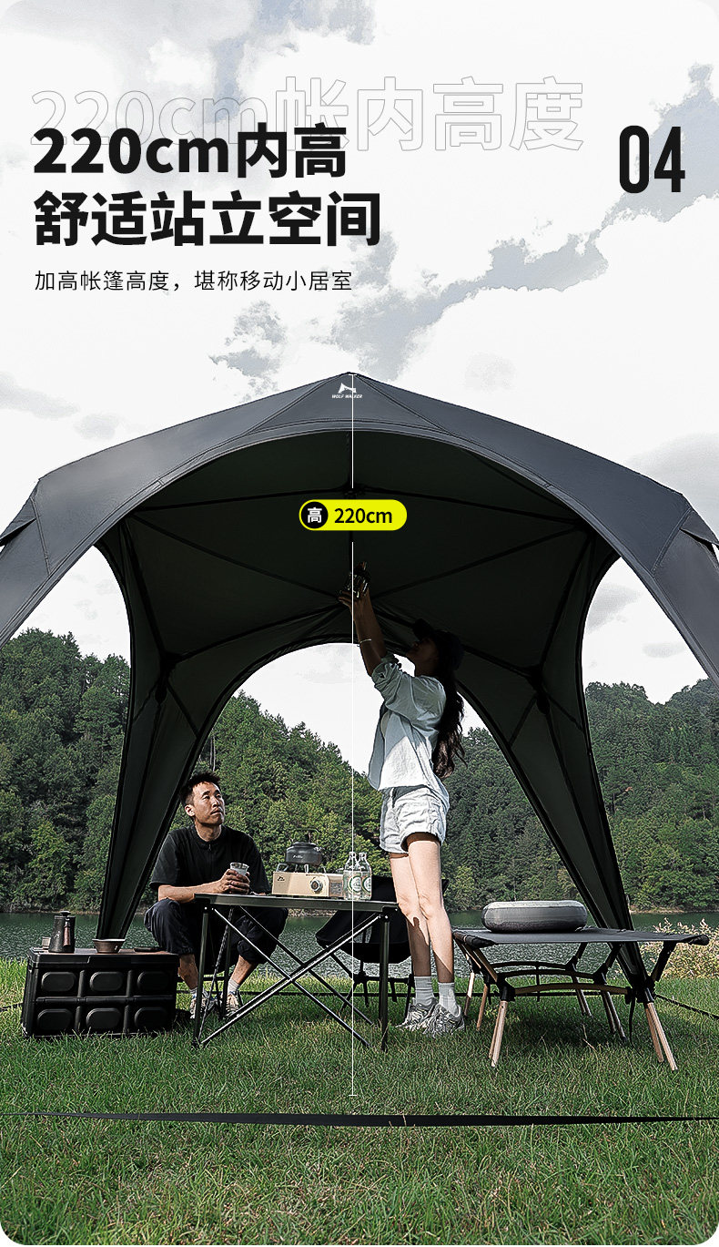 狼行者自動穹頂天幕速開一體式帳篷戶外露營鈦黑膠遮陽棚防曬防雨